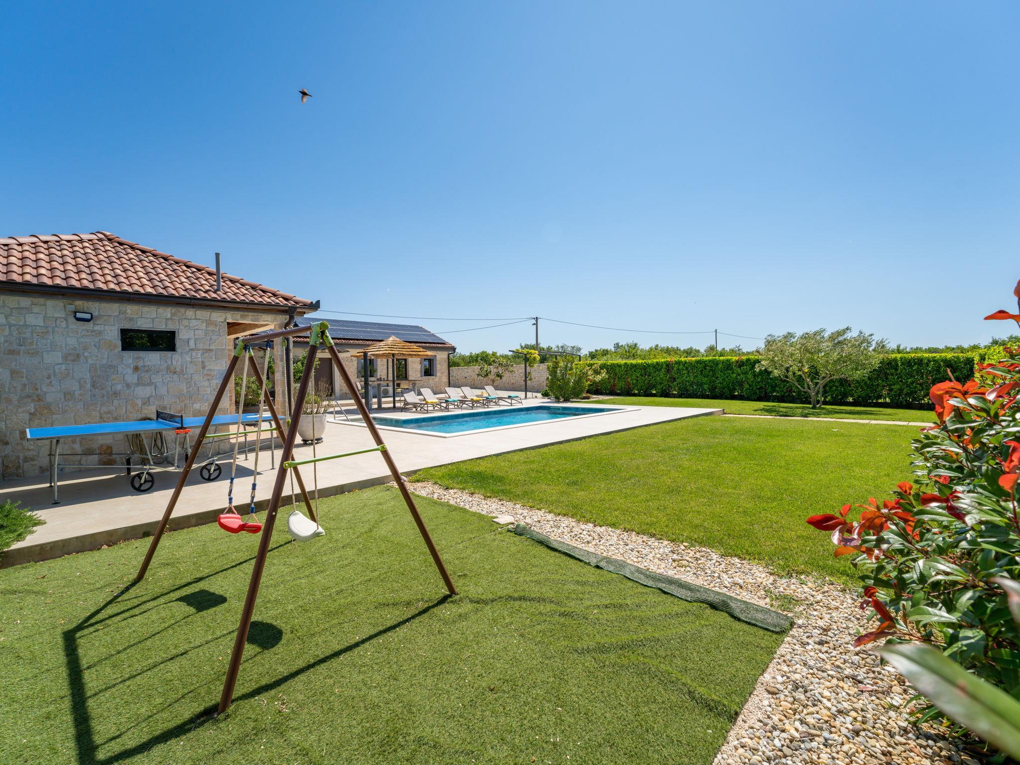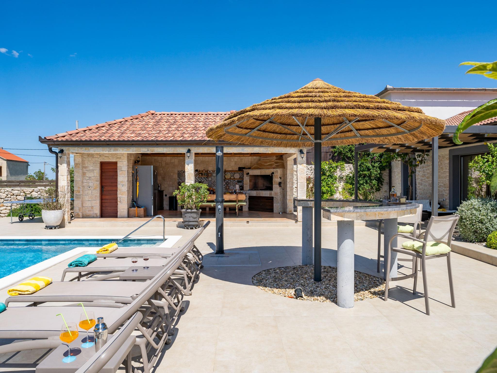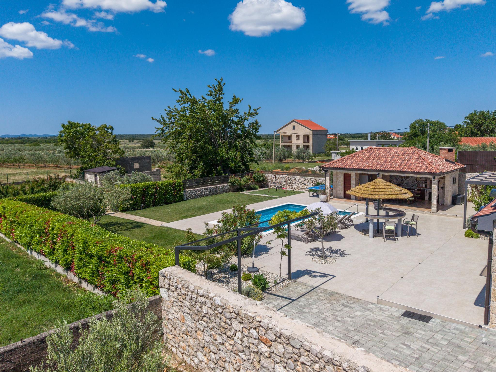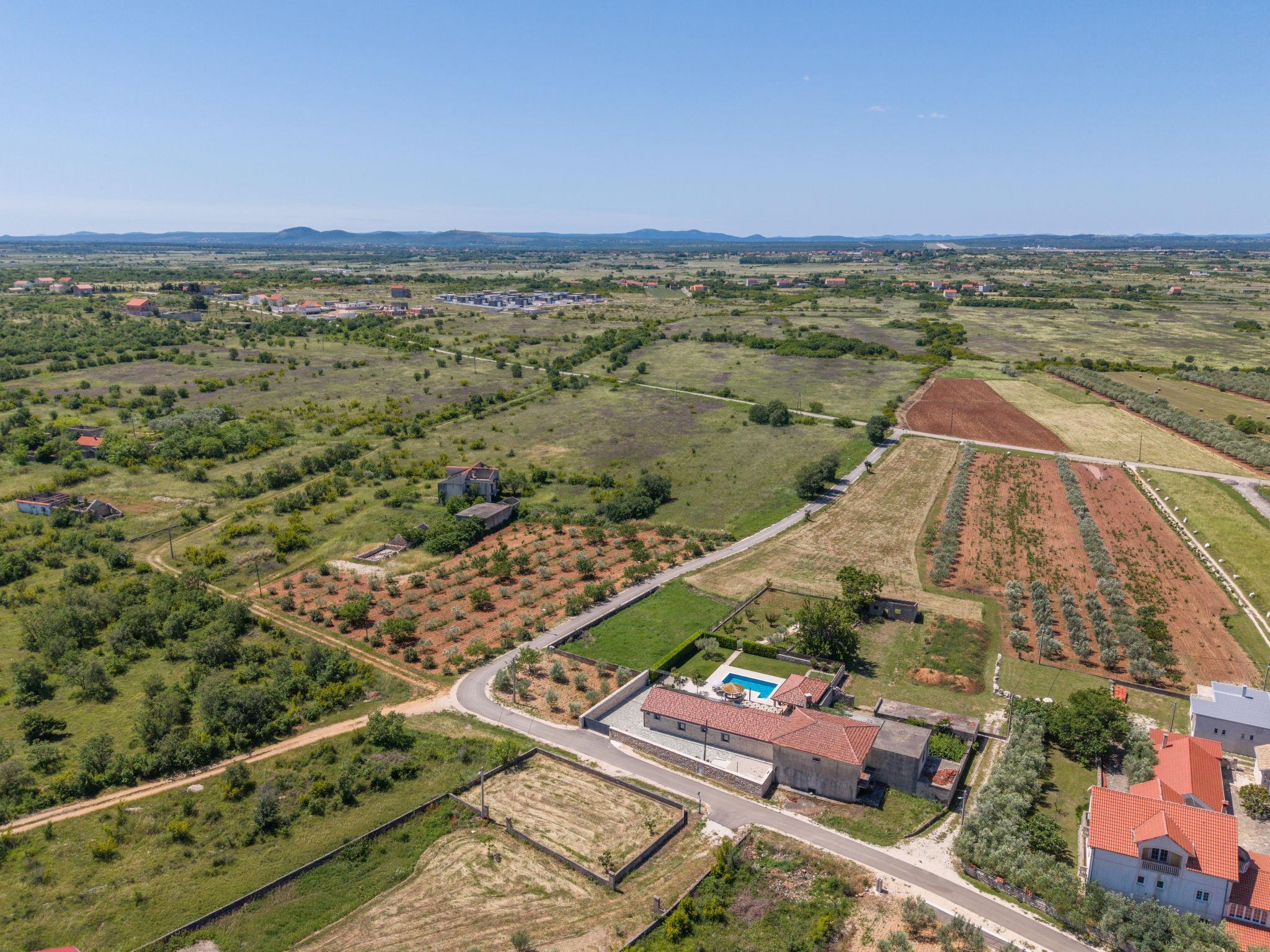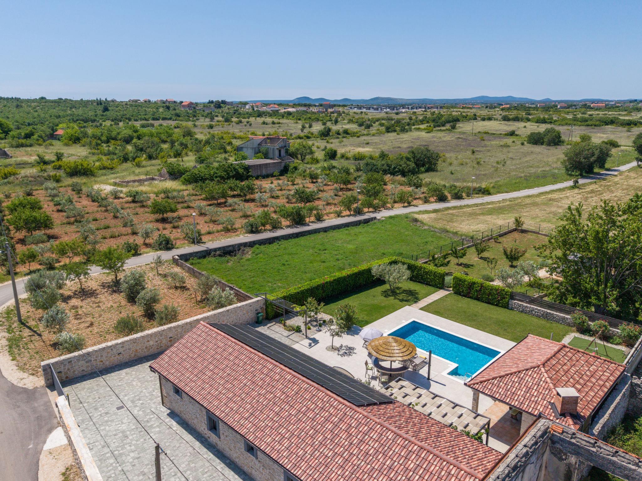 Zemunik Donji 22 km from Zadar: Beautiful single-family house "Villa Tanja". 17 km from the centre of Sukošan, in a sunny position, 17 km from the sea. Private: property 1'500 m2 (fenced), swimming pool (8 x 4 m, depth 140 cm, seasonal availability: 01.May. - 01.Oct.) with internal staircase. Outdoor shower. In the house: internet access, washing machine. Parking (for 2 cars) at the house on the premises. E-charging station. Shop 1 km, restaurant 17 km, bus stop 7.1 km, pebble beach 17 km. Nearby attractions: NP Krka 67 km, NP Paklenica 39 km, Fun park Biograd 32 km. Well-known lakes can easily be reached: Vrana See 33 km. Groups of teenagers on request only. Please note: airfield 12 km from the property.