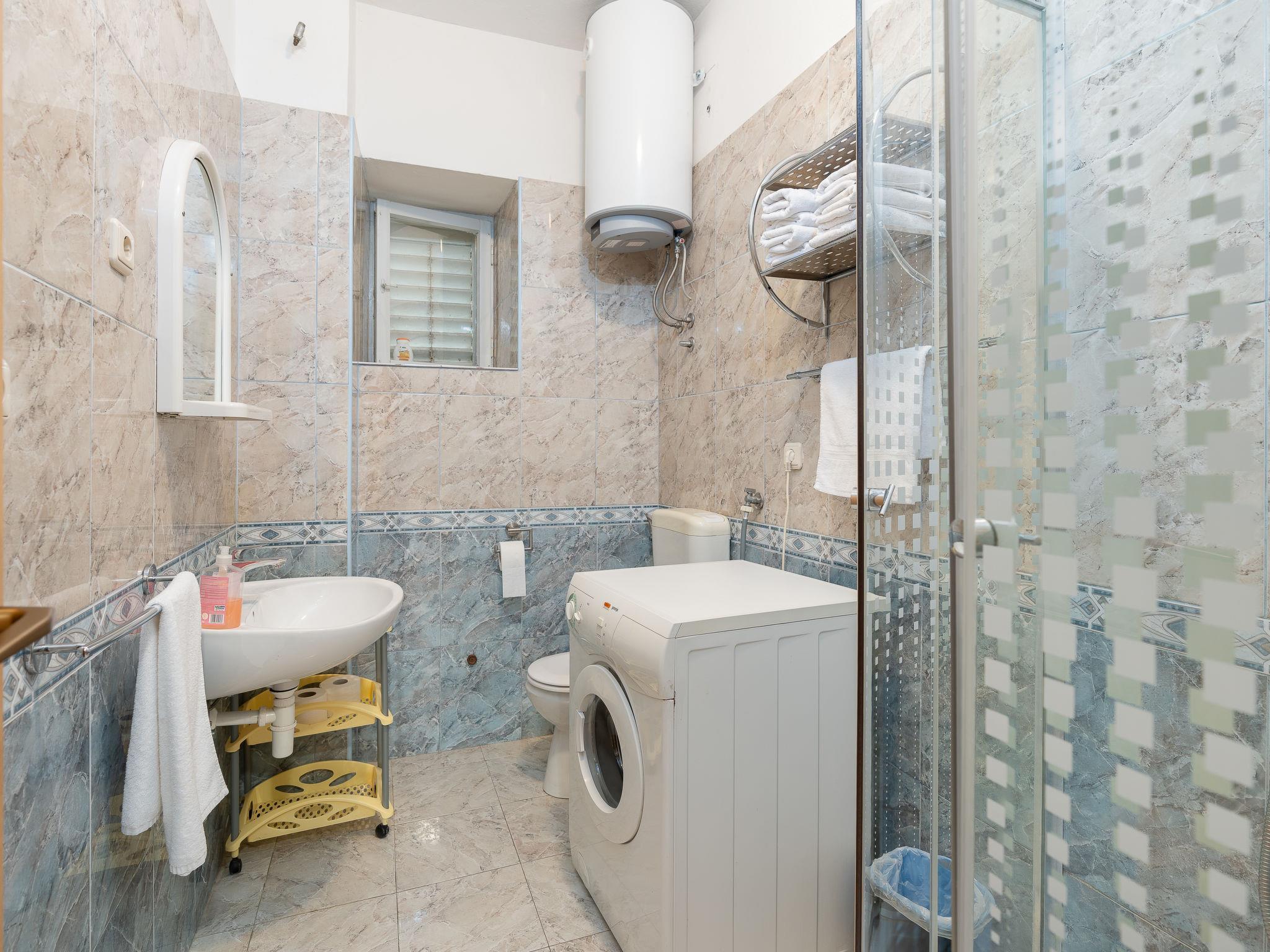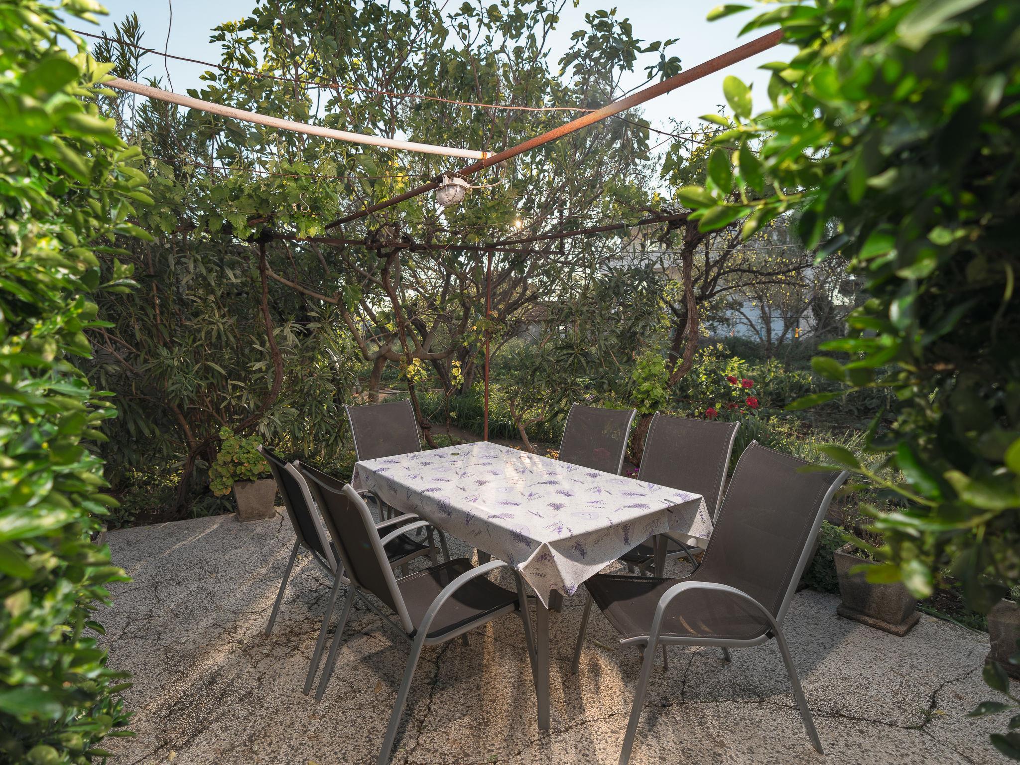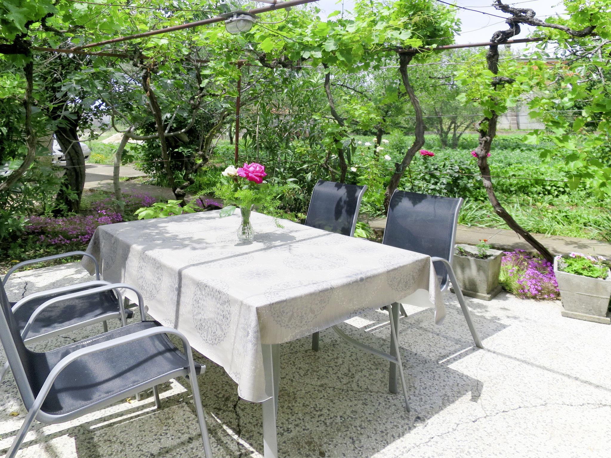 Terraced house "Marijana", 2 storeys. 200 m from the centre of Sukošan, 10 km from the centre of Zadar, 18 km from the centre of Biograd na Moru, 300 m from the sea, 300 m from the beach. Private: property 300 m2, garden with wildlife garden. Outdoor shower, terrace, garden furniture, barbecue. In the house: internet access, washing machine. Roofed, parking (for 2 cars) on the premises. Shop 200 m, bus stop 290 m, pebble beach, rocky beach 300 m. Please note: airfield 12 km from the property.