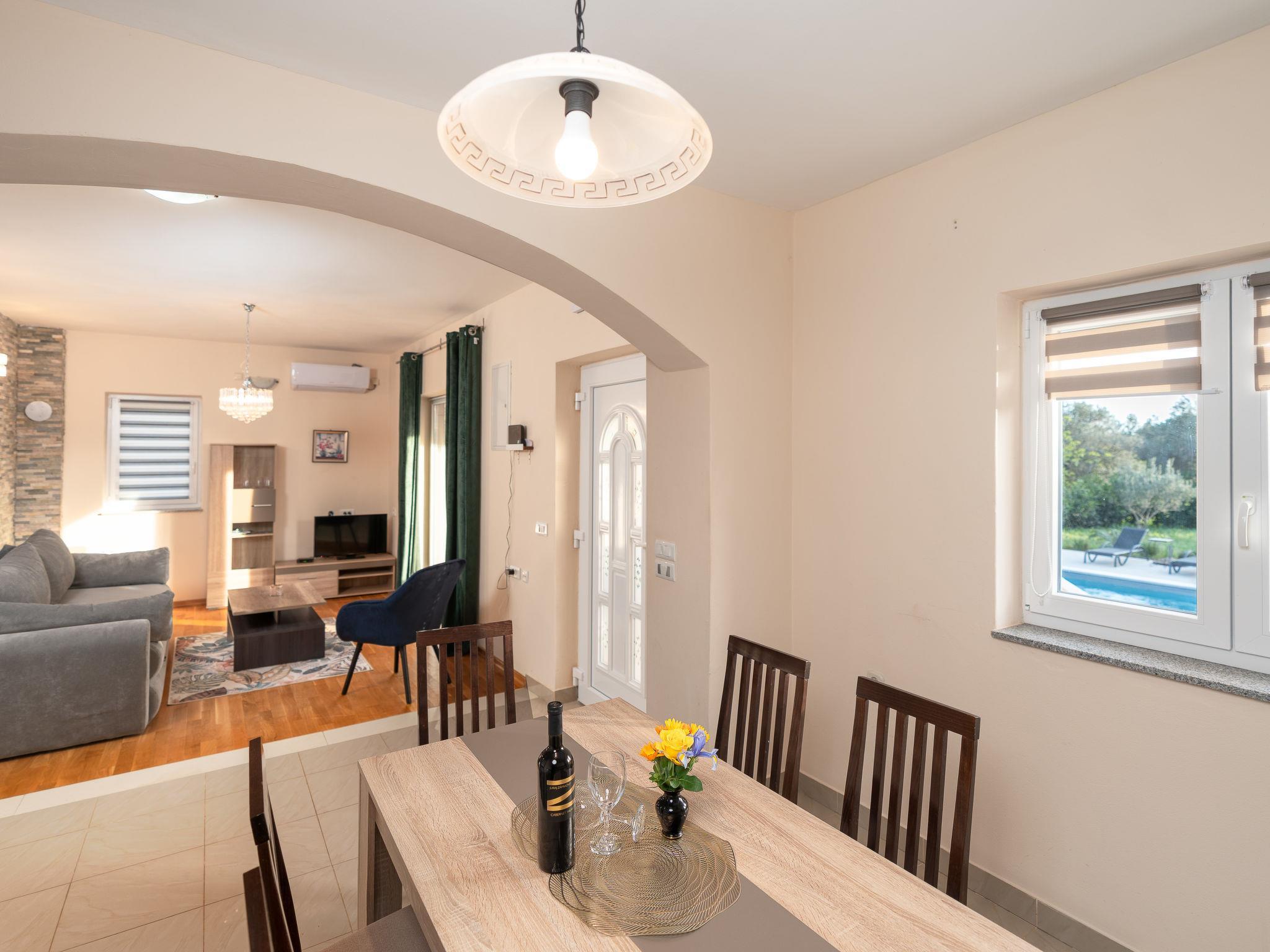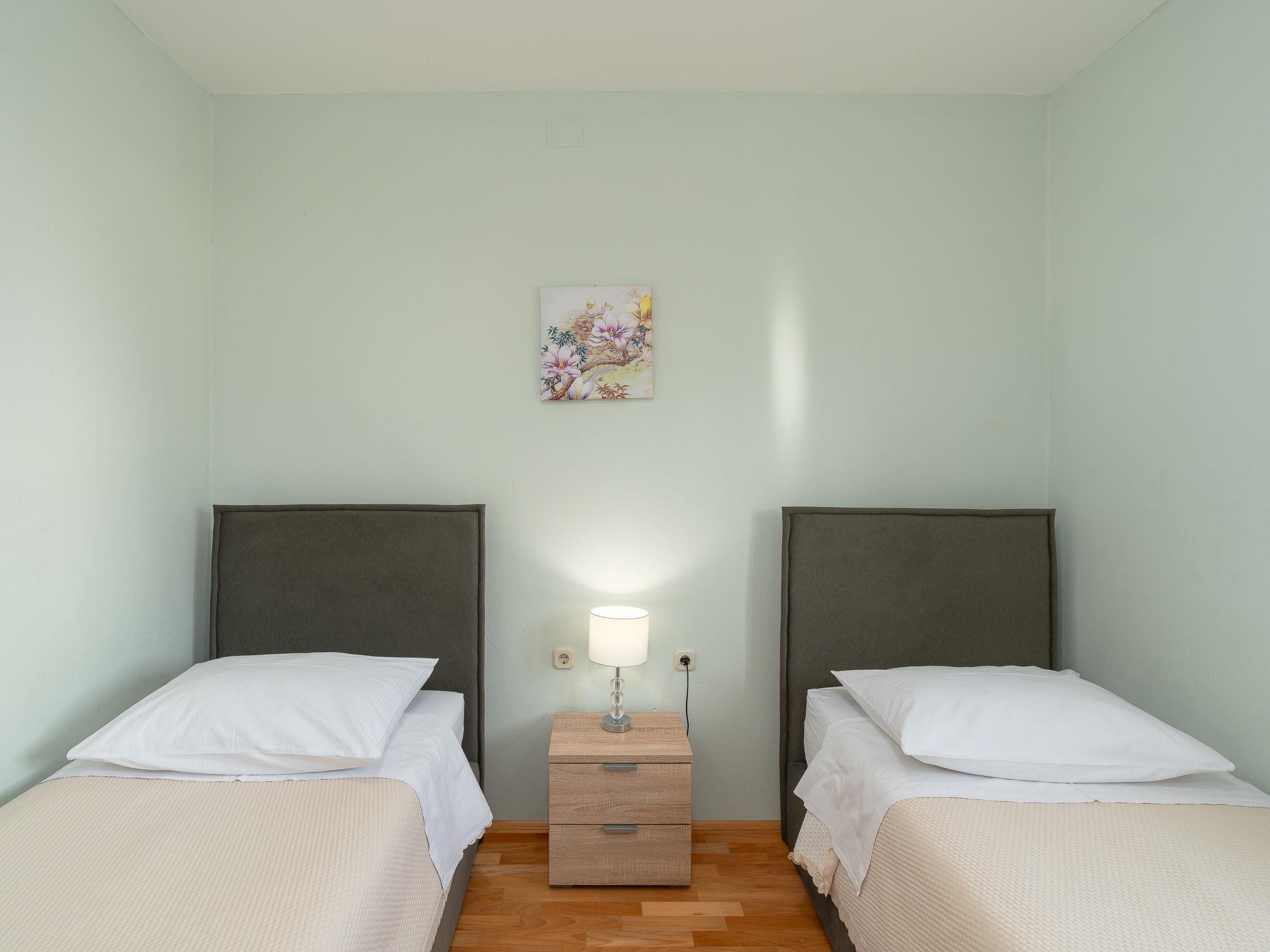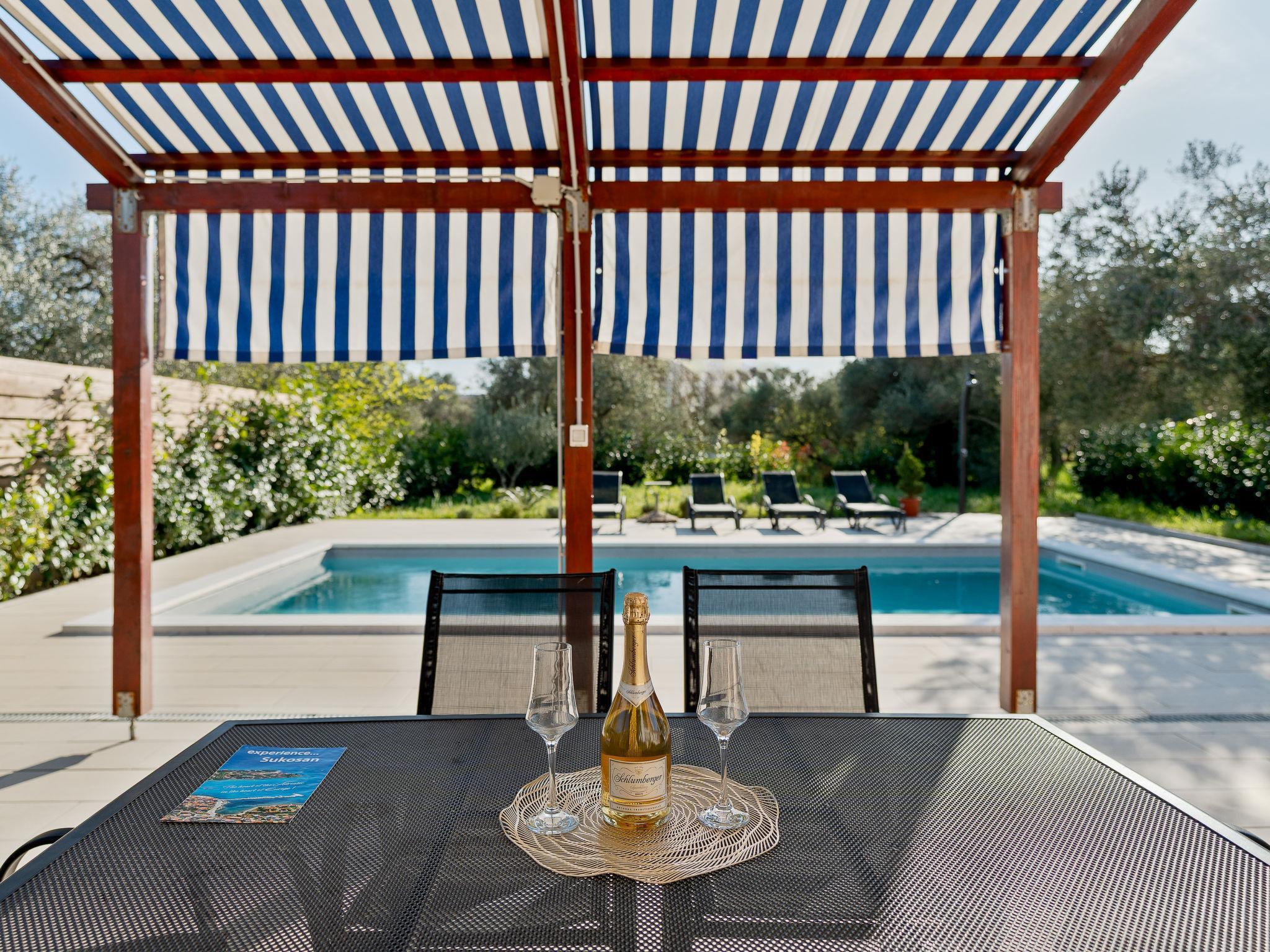 Single-family house "Danijel". 12 km from the centre of Zadar, 800 m from the centre of Sukošan, 18 km from the centre of Biograd, in the residential district, 700 m from the sea, 700 m from the beach. Private: property 700 m2, meadow, swimming pool angular (7 x 4 m, depth 150 cm, seasonal availability: 01.Apr. - 28.Oct.) with internal staircase. Outdoor shower, terrace, barbecue. In the house: internet access, washing machine. Parking (for 2 cars) on the premises. Supermarket 800 m, bus stop 1 km, rocky beach 700 m.
