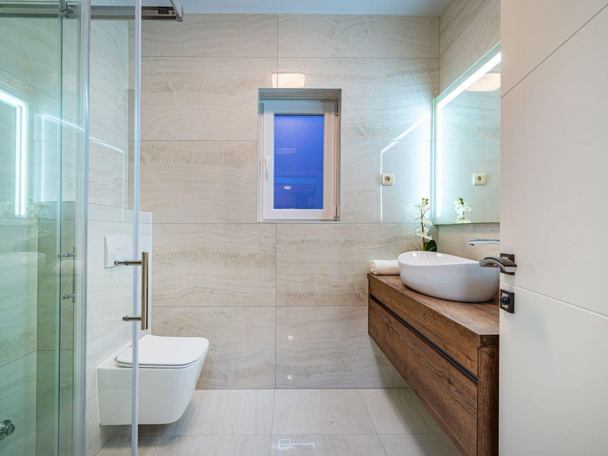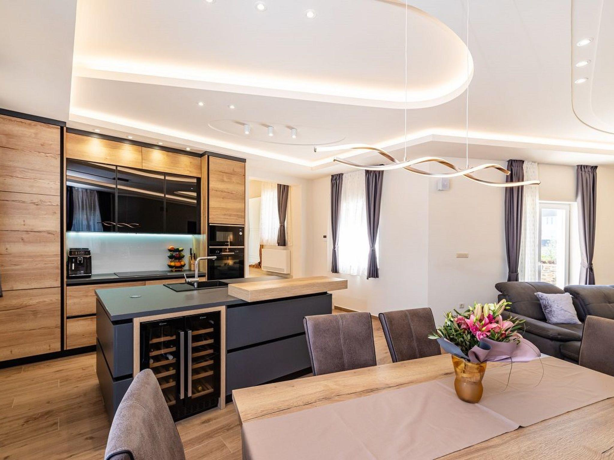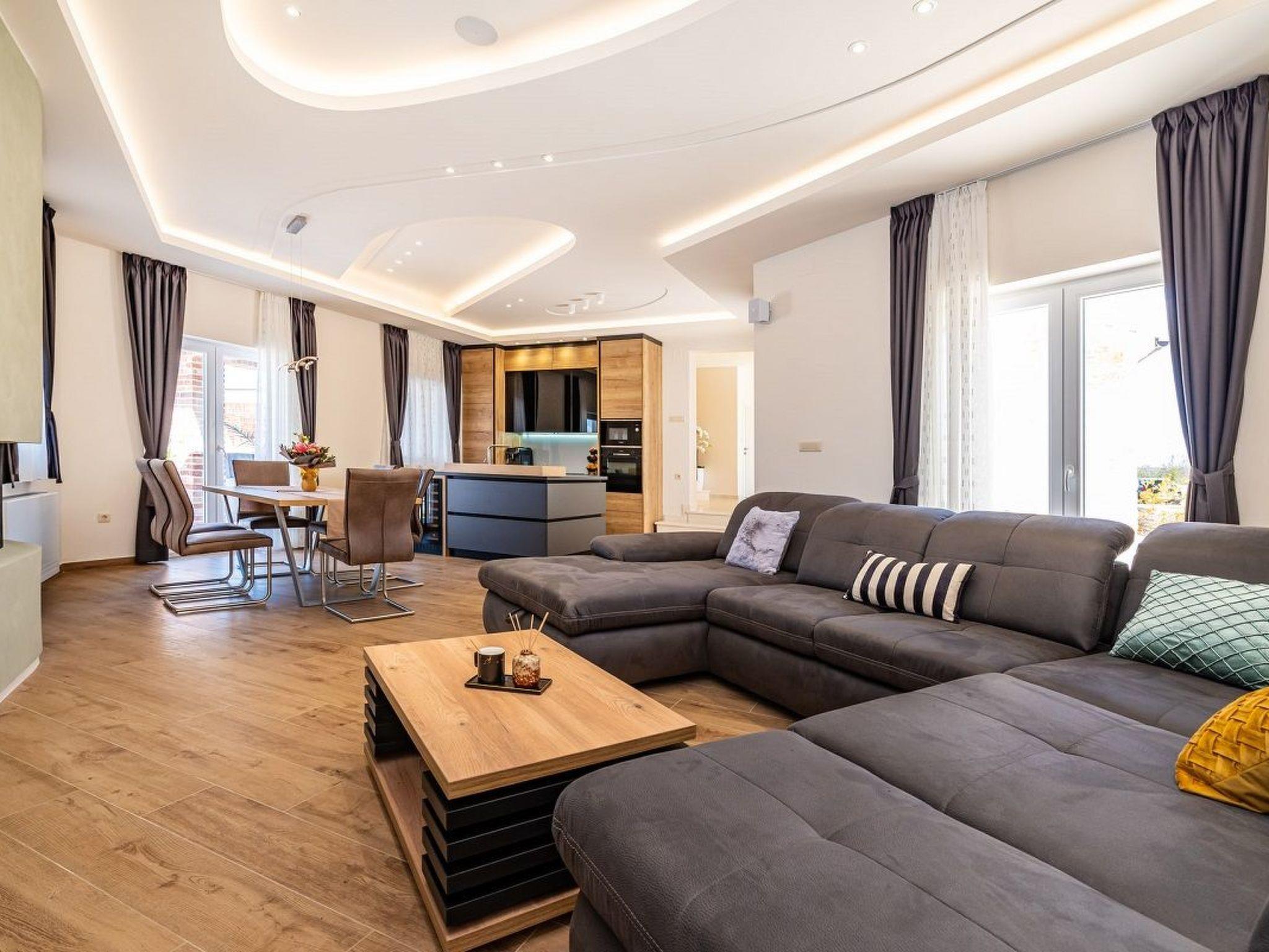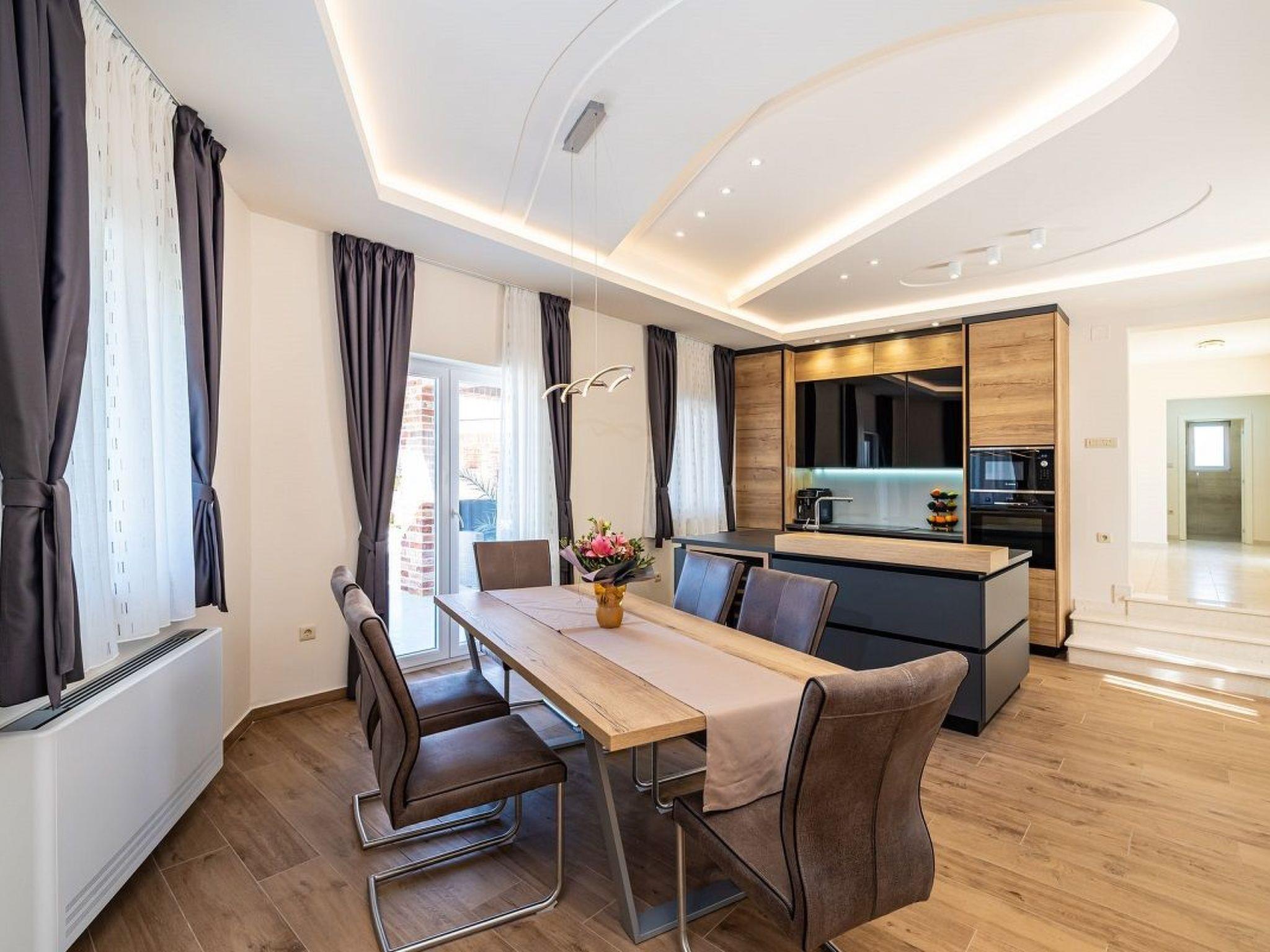 Villa BOCAGNAZZO is decorated in a rustic-mediterranean style, enriched with modern luxury which do not leave indifferent the most demanding tastes. The vicinity of coast and city center will provide you with everything you need for a dream vacation.DESCRIPTIONOverall accommodation capacity for eight people, Villa Bocagnazzo has three luxuriously decorated and air-conditioned rooms, from which two are equipped with TV and one of them provides a balcony, with two fully equipped en-suite bathrooms and a separate toilet. In addition, there is one sofa bed for two more people.The ground floor of the villa has a spacious living room, dining room and fully equipped kitchen with wine refrigerator. The living room also has access to a spacious terrace with a large pool and an another lounge with fireplace which, together with deck chairs around the pool, invite you enjoying relaxed socializing on summer evenings, to have a barbecue or simply enjoy your breakfast and coffee before discovering the city and beaches.LOCATION & SURROUNDINGSThis villa is nestled in a quiet part of a beautiful seaside town Zadar. The location offers privacy and peace on a large plot of land and benefits with the position just outside the city center. Everything is close to here - beach, historic architecture, restaurants, national and nature parks... The villa is only a 15-minute drive from the Zadar airport, just 3km from the sea and beautiful beaches and excellent restaurants. If you are looking for activity, remarkable experiences and rich cultural heritage, Zadar is the place for you. This Villa is the perfect spot for families with children, completely enclosed and quiet, but not too far away from the city center and the sea.