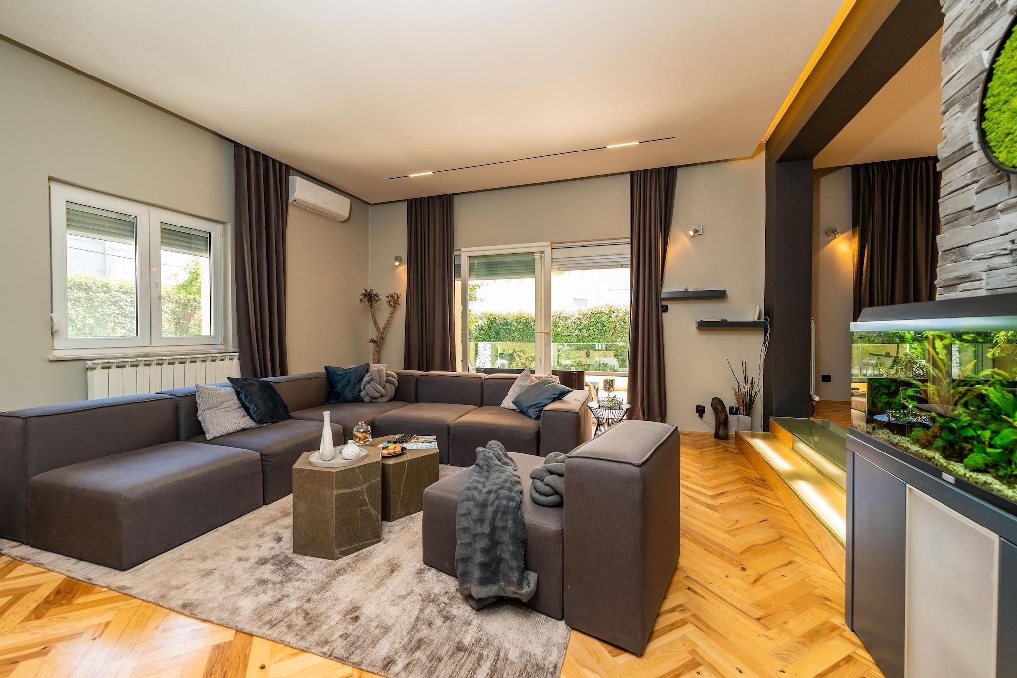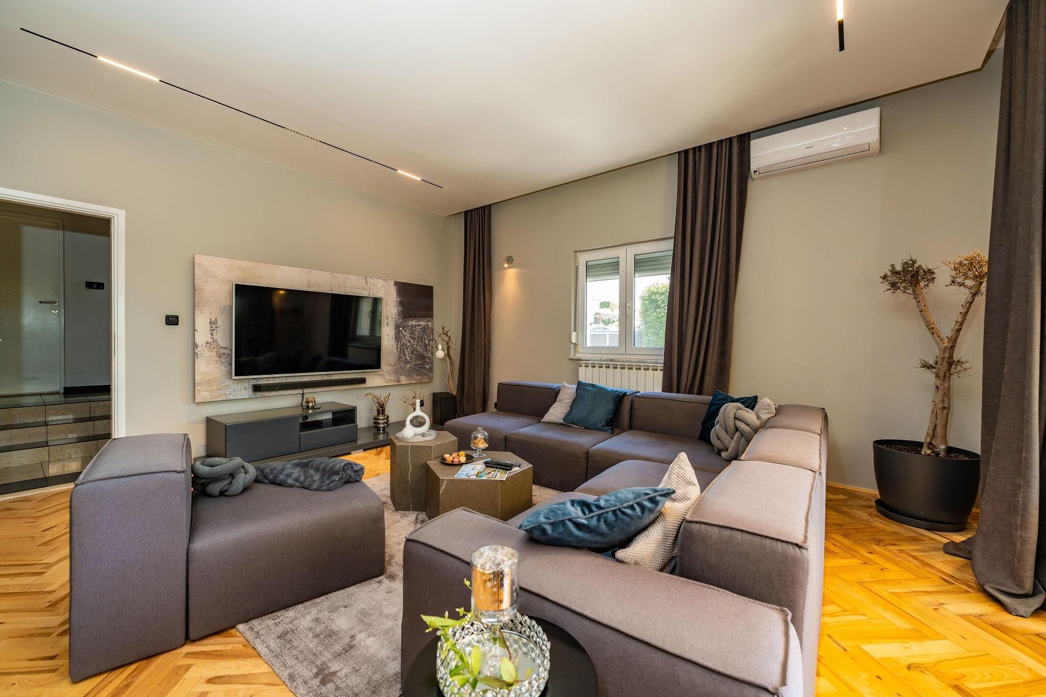 Bare 2 km fra det livlige hjertet av Zadar, tilbyr denne stilfulle villaen for seks gjester en luksuriøs og praktisk tilflukt med gratis Wi-Fi og moderne fasiliteter. Med restauranter, butikker og uteliv i nærheten, og Zadar lufthavn bare 8 km unna, er det den ideelle basen for et avslappende eller eventyrfylt opphold. Innvendig tilbyr villaen en lys og luftig stue og spisestue med flatskjerm-TV med satellittkanaler, et elegant åpent kjøkken utstyrt med moderne hvitevarer og tre komfortable soverom, to med dobbeltsenger og ett med enkeltsenger. Gå ut for å nyte den private takterrassen, kjøl deg ned i svømmebassenget, eller nyt et måltid utendørs med grill- og loungeområdet. Villaen har også klimaanlegg, oppvarming, vaskemaskin og sykler for å utforske omgivelsene. Lokale høydepunkter inkluderer det unike havorgelet, hvor bølger komponerer naturlige melodier, og de historiske byportene i Zadar. For en smak av lokal mat, ta turen til Restoran Bruschetta for middelhavsretter eller prøv sjømaten på Proto Food & More. Enten du søker hvile eller utforskning, tilbyr denne villaen den perfekte blandingen av komfort og beliggenhet.