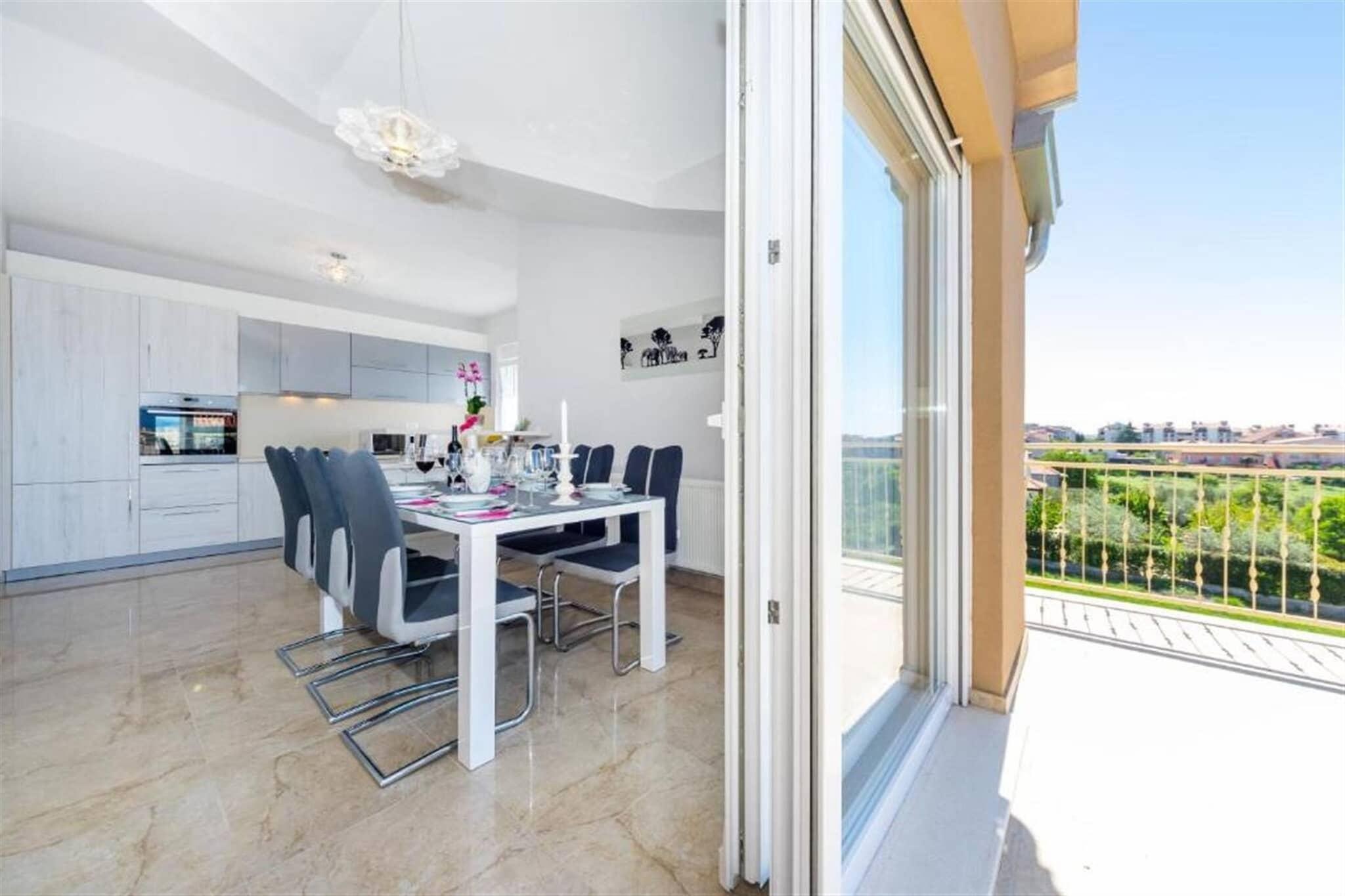 Forbered deg på å bli forbløffet av utsikten fra denne fantastiske, romslige toppleiligheten i Zadar! Denne eiendommen på 130 kvadratmeter har en fredelig beliggenhet i toppetasjen, bare 2,5 kilometer fra det travle sentrum, og er et perfekt valg for din neste familieferie. Den har komfortabel plass til opptil seks personer. Fra din høye beliggenhet har du en vakker panoramautsikt over havet og området rundt. Interiøret er smakfullt innredet, med tre moderne soverom, en lys og elegant åpen stue og spisestue, og et fullt utstyrt kjøkken, inkludert oppvaskmaskin og vaskemaskin på badet for enkelhets skyld. Stuen gir direkte tilgang til din egen private takterrasse, som er omtenksomt innredet for utendørs avslapning. Eiendommens eiendom tilbyr utmerkede felles fasiliteter. Du har tilgang til en nydelig inngjerdet hage og et felles svømmebasseng, ideelt for avkjøling i sommermånedene (åpent fra 1. juni til 15. oktober). Det er også en felles terrasse med grillfasiliteter, som oppmuntrer til felles utendørs servering, og to private parkeringsplasser er reservert for din bruk. Beliggenheten er uslåelig: restauranter, bakerier og dagligvarebutikker ligger bare 150 meter unna. Du kan enkelt nå Zadars eksepsjonelle historiske gamleby, eller bruke denne leiligheten som et perfekt utgangspunkt for å utforske de fem omkringliggende nasjonalparkene – en drøm for naturelskere. For alle fremtidige gjesters komfort, vær oppmerksom på at røyking ikke er tillatt inne i toppleiligheten, og kjæledyr er ikke tillatt på eiendommen.