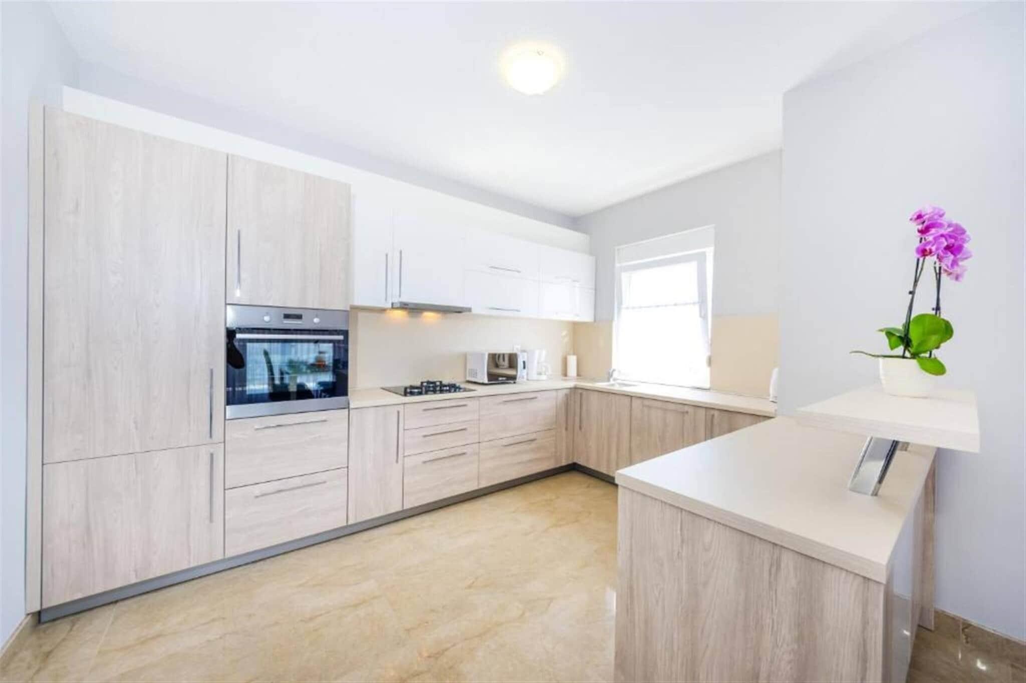 Oppdag eksepsjonell komfort og plass i Superior Apartment Zadar, en perfekt setting for din neste familieferie. Denne romslige leiligheten på 130 kvadratmeter i første etasje ligger fredelig til, bare 2,5 kilometer fra det livlige sentrum, og har komfortabel plass til opptil seks gjester. Den tilbyr et lyst og elegant tilfluktssted for en familie eller en vennegruppe. Interiøret er gjennomtenkt utformet med tre moderne soverom, et fullt utstyrt åpent kjøkken og en lys stue og spisestue. For enkelhets skyld er det et komplett bad med vaskemaskin og et ekstra separat toalett. Fra stuen har du direkte tilgang til en nydelig balkong møblert med rottingstoler, som tilbyr et perfekt sted for morgenkaffe eller kveldsdrinker. Gjestene kan nyte fantastiske fellesfasiliteter i den store, inngjerdede hagen på 530 kvadratmeter. Dette inkluderer et innbydende felles svømmebasseng, åpent gjennom hele sommersesongen (1. juni til 15. oktober), og en felles terrasse med grillfasiliteter for å nyte måltider i det fri. Med butikker og restauranter bare 150 meter unna og Zadars gamleby lett tilgjengelig, er beliggenheten uslåelig. Dessuten fungerer leiligheten som en ideell base for å utforske fem av Kroatias fantastiske nasjonalparker – en reell fordel for naturelskere. For alle fremtidige gjesters komfort, vær oppmerksom på at røyking ikke er tillatt inne i leiligheten, og kjæledyr er ikke tillatt på eiendommen.