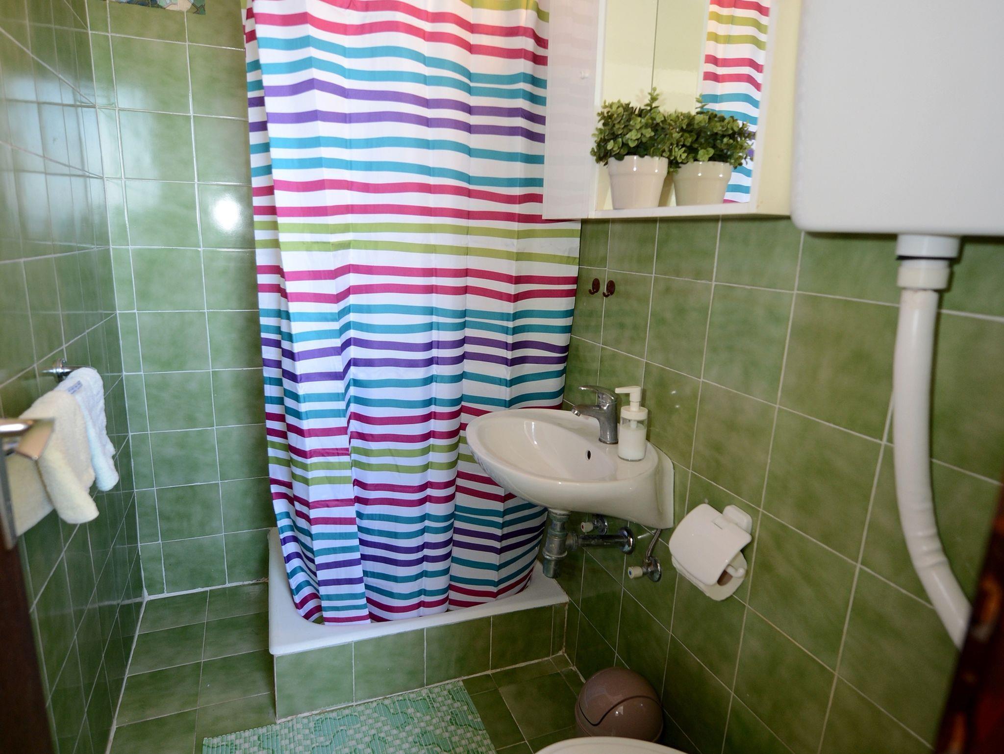 Ferienwohnung bietet Platz für 4 Gäste. Die Betten sind in Schlafzimmern, die es 1 gibt, und in Wohnzimmer, innerhalb einer Gesamtfläche von 35m2, angeordnet. Die Gäste haben eine eigene Terrasse zur Verfügung, auf der sie in warmen Sommernächten genießen können. Das Apartment bietet Meerblick. Es ist erlaubt, Speisen auf dem Gemeinschafts-Grill vorzubereiten. IM PREIS INBEGRIFFEN: Kurtaxe, Endreinigung, Klimatisierung, Parkplatz, Internet, Kinderbett, Bügeleisen, Bügelbrett, Föhn. VERBINDLICHE ZUSÄTZLICHE KOSTEN: Aufzahlung für Kurzaufenthalte (prozentualer Zuschlag pro Nächtigungsanzahl: 30% - 1, 20% - 2, 10% - 3). UNVERBINDLICHE ZUSÄTZLICHE KOSTEN: Wäschewaschen (3,00 € Waschen). Die Verfügbarkeit zusätzlicher Dienstleistungen in Ihrem reservierten Termin und die Preise derselben (falls nicht aufgeführt) müssen im Voraus überprüft werden. Zusätzliche Dienstleistungen die in der Zahlungsaufforderung nicht aufgeführt sind werden direkt beim Vermieter bezahlt, angenommen der Gast nutzt auch diese.