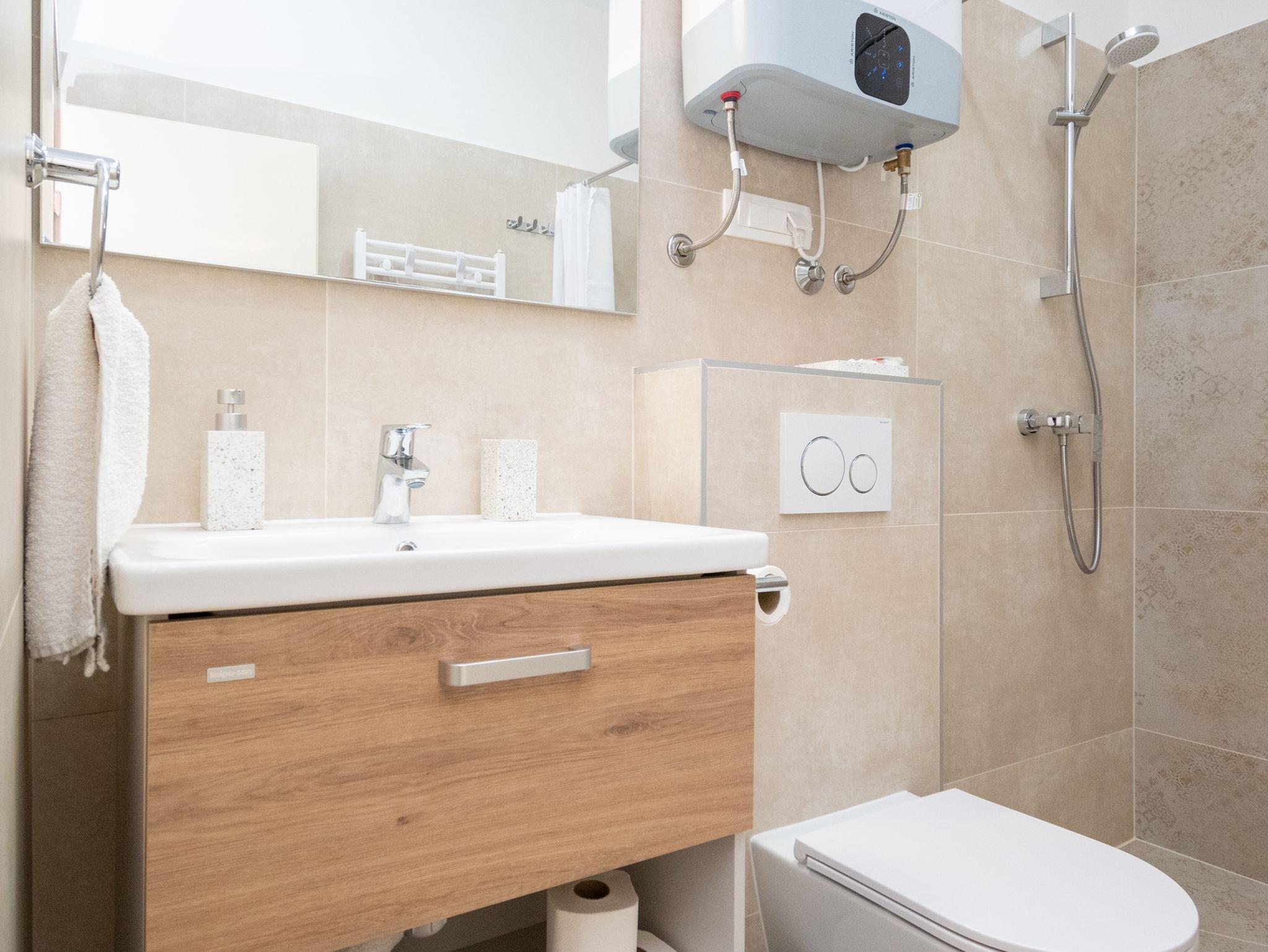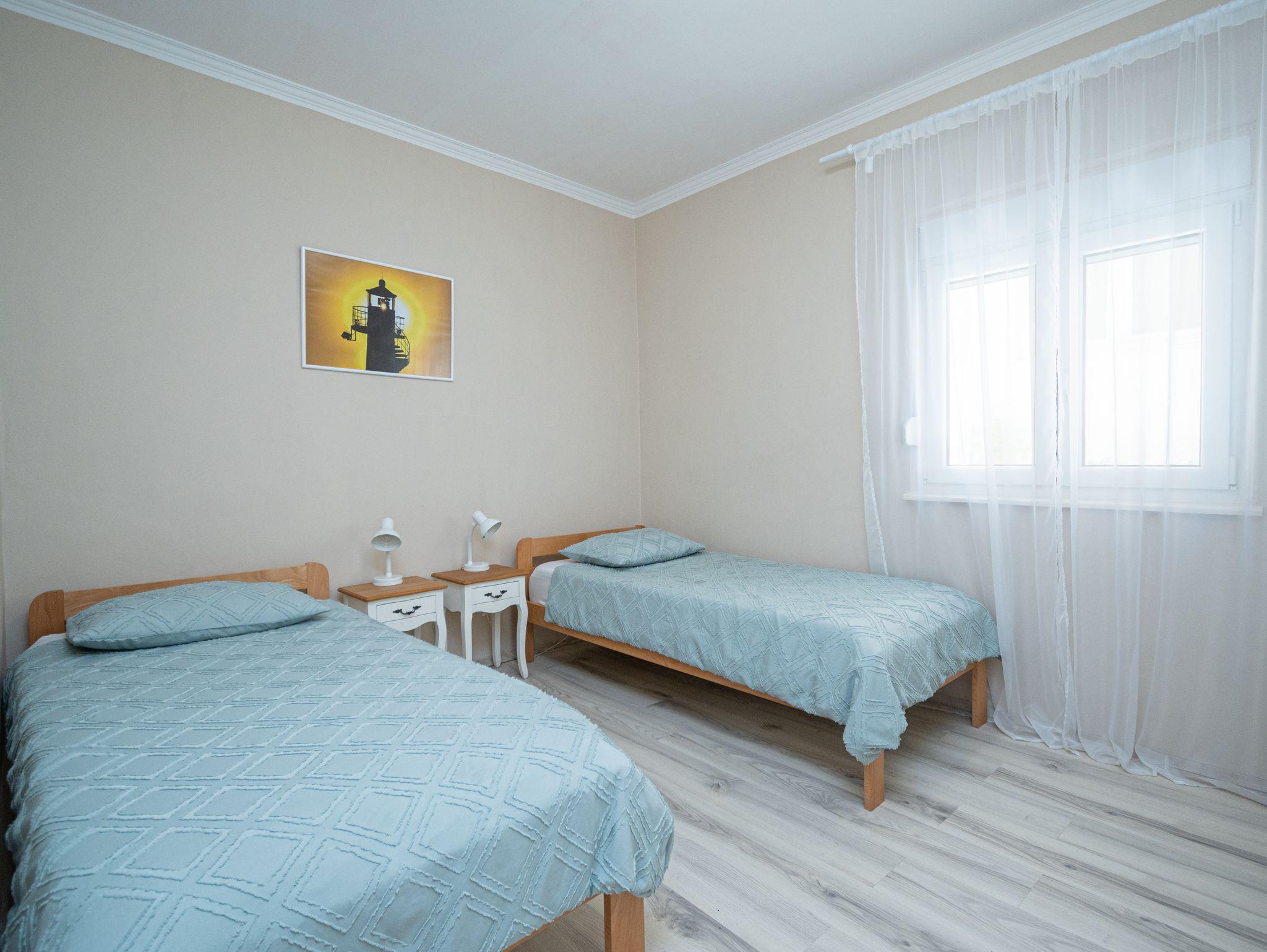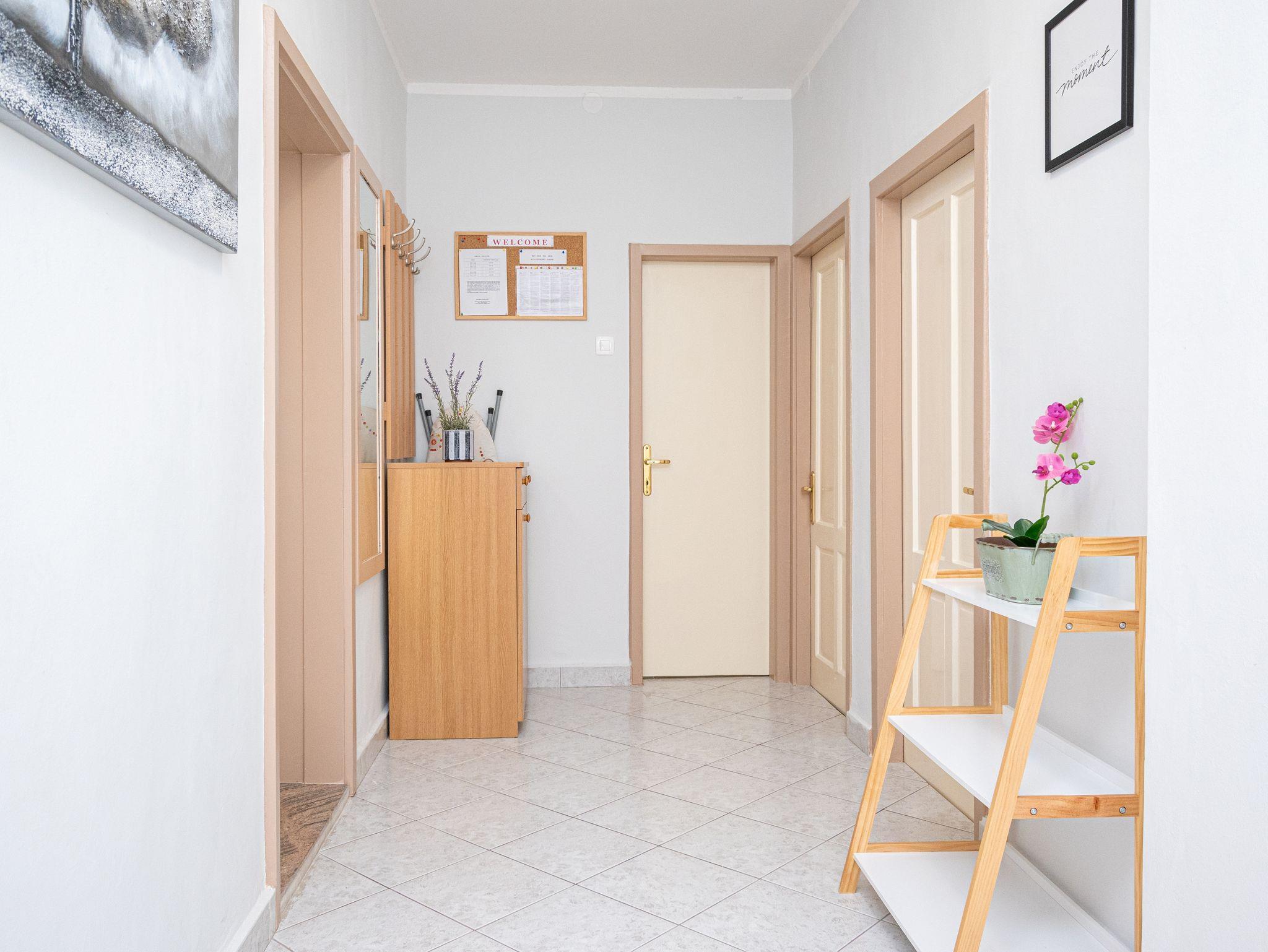 Ferienwohnung bietet Platz für 4 Gäste. Die Betten sind in Schlafzimmern, die es 2 gibt, innerhalb einer Gesamtfläche von 63m2, angeordnet. Die Gäste haben eine eigene Terrasse zur Verfügung, auf der sie in warmen Sommernächten genießen können. Es ist erlaubt, Speisen auf dem Gemeinschafts-Grill vorzubereiten. IM PREIS INBEGRIFFEN: Kurtaxe, Endreinigung, Klimatisierung, Parkplatz, Internet, Wäschewaschen, Kinderbett, Bügeleisen, Bügelbrett, Föhn, tragbarer Grill. VERBINDLICHE ZUSÄTZLICHE KOSTEN: Aufzahlung für Kurzaufenthalte (prozentualer Zuschlag pro Nächtigungsanzahl: 30% - 1, 20% - 2, 10% - 3). Die Verfügbarkeit zusätzlicher Dienstleistungen in Ihrem reservierten Termin und die Preise derselben (falls nicht aufgeführt) müssen im Voraus überprüft werden. Zusätzliche Dienstleistungen die in der Zahlungsaufforderung nicht aufgeführt sind werden direkt beim Vermieter bezahlt, angenommen der Gast nutzt auch diese. Ermäßigung auf den Grundpreis: Gratistag 14=13 (bei einem Aufenthalt von 14 Tagen oder mehr erhalten Sie einen Gratistag für den Aufenthalt bis 31.12.26).