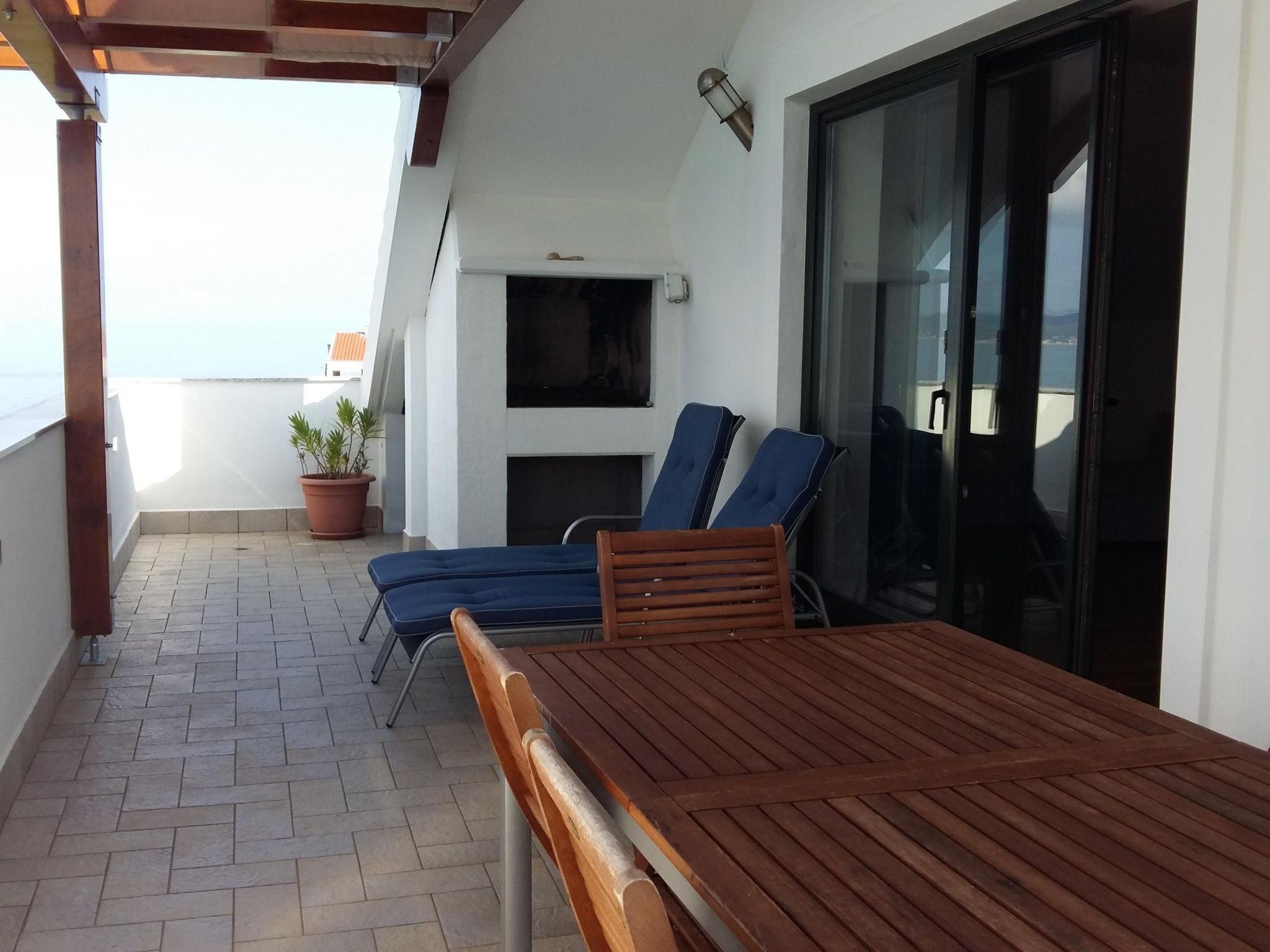 The living room provides access to the 30m² terrace with a typical Croatian fireplace grill and garden furniture. Enjoy the breathtaking view from here of the sea and the islands.