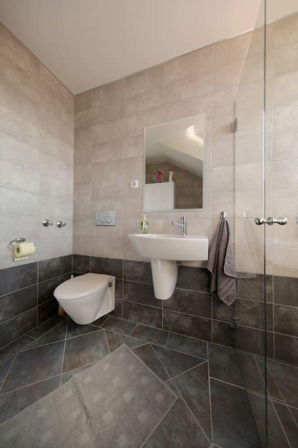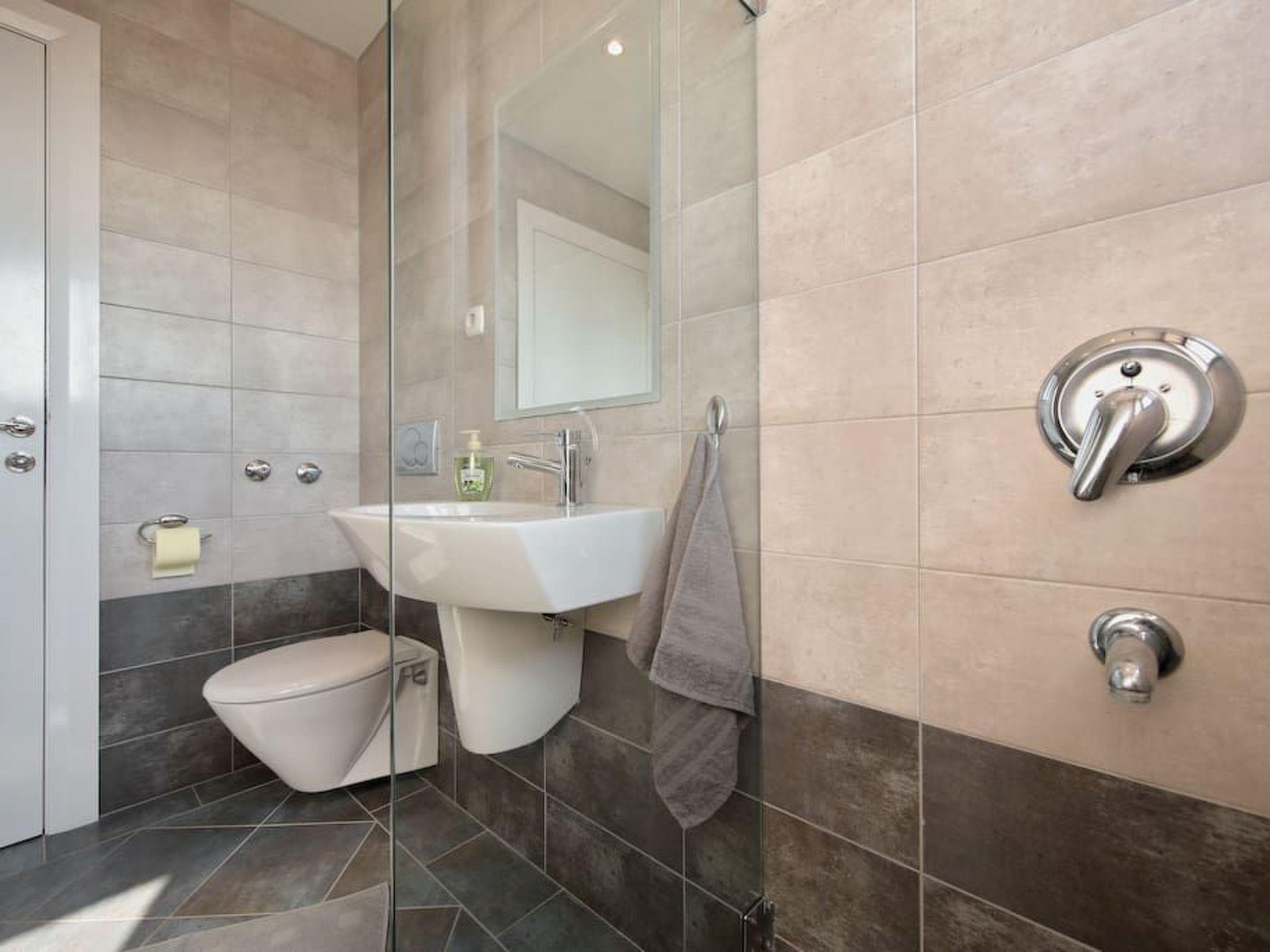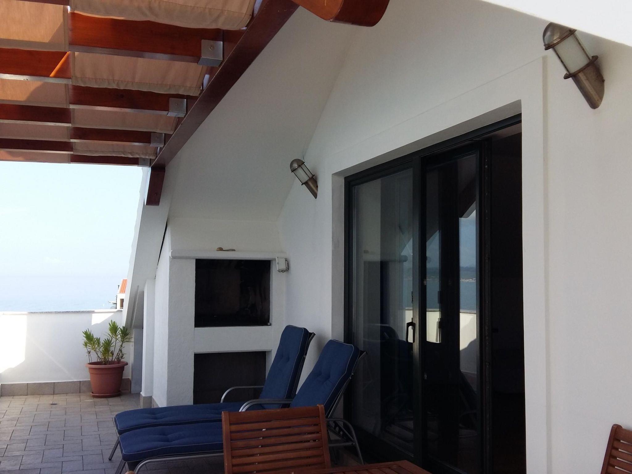 The 87m² penthouse is on the third and therefore top floor and can accommodate up to five people. It has two bedrooms, each with a double bed (160cm wide). One of the two bedrooms has a balcony with a view over the sea. The living room has an open layout and comprises a fully-equipped kitchen with a hob, oven, microwave and dishwasher. The living and dining room has a dining table with chairs, a comfortable sofa bed for two people and a flatscreen TV with satellite channels. Heating, air conditioning and wireless Internet access are available. The bathroom has a shower and there is also another separate toilet. An additional bed for a baby or a child can be provided free of charge.