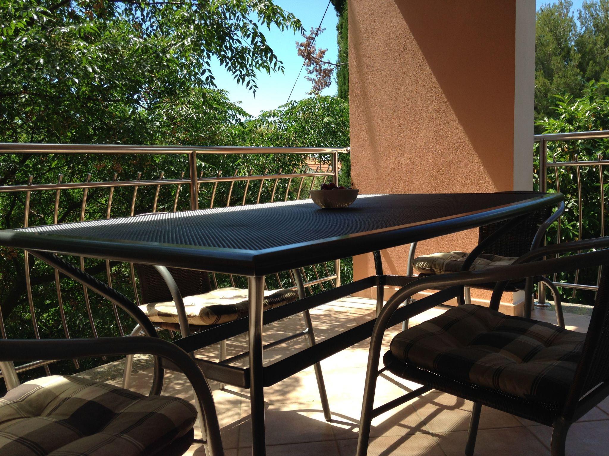 The apartment has two balconies. The first is ideal for relaxing outdoors and also has a big table and six chairs for al fresco dining. It is accessed from the kitchen. The second smaller balcony is also very charming and has a small table and two chairs. There is a big outdoor area with a spacious, fenced garden of 1000m², with an area with garden furniture for your own private use. There is also a big outdoor grill. A parking space is provided.