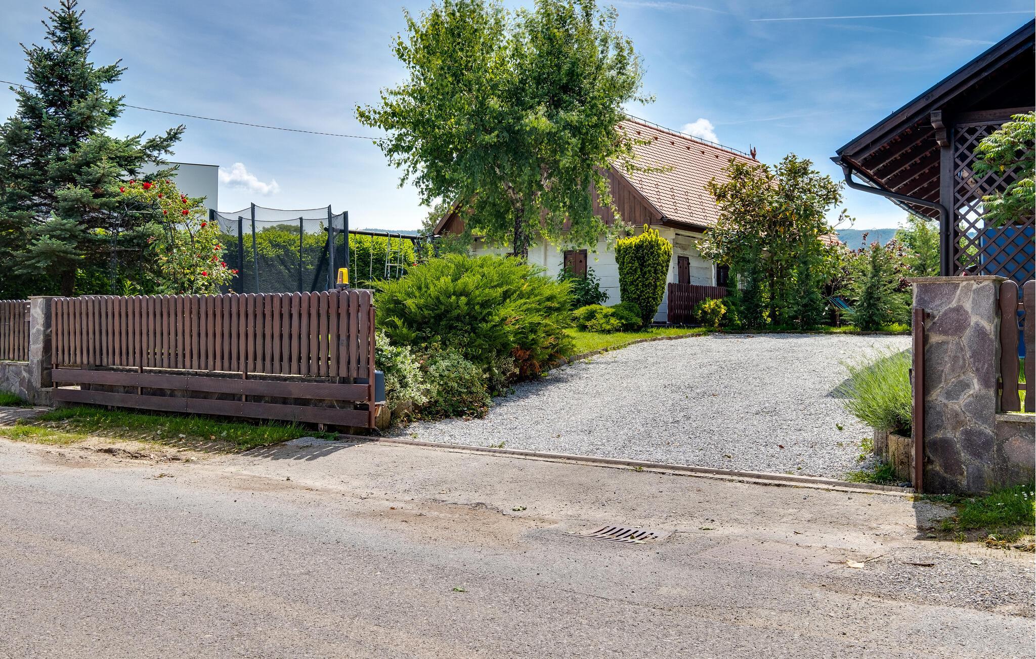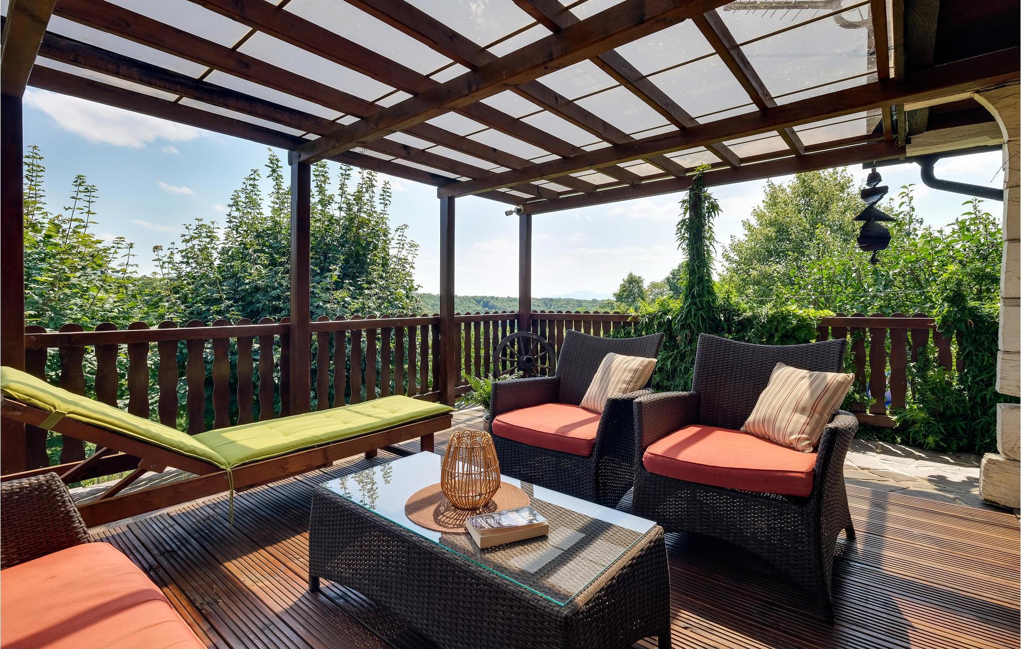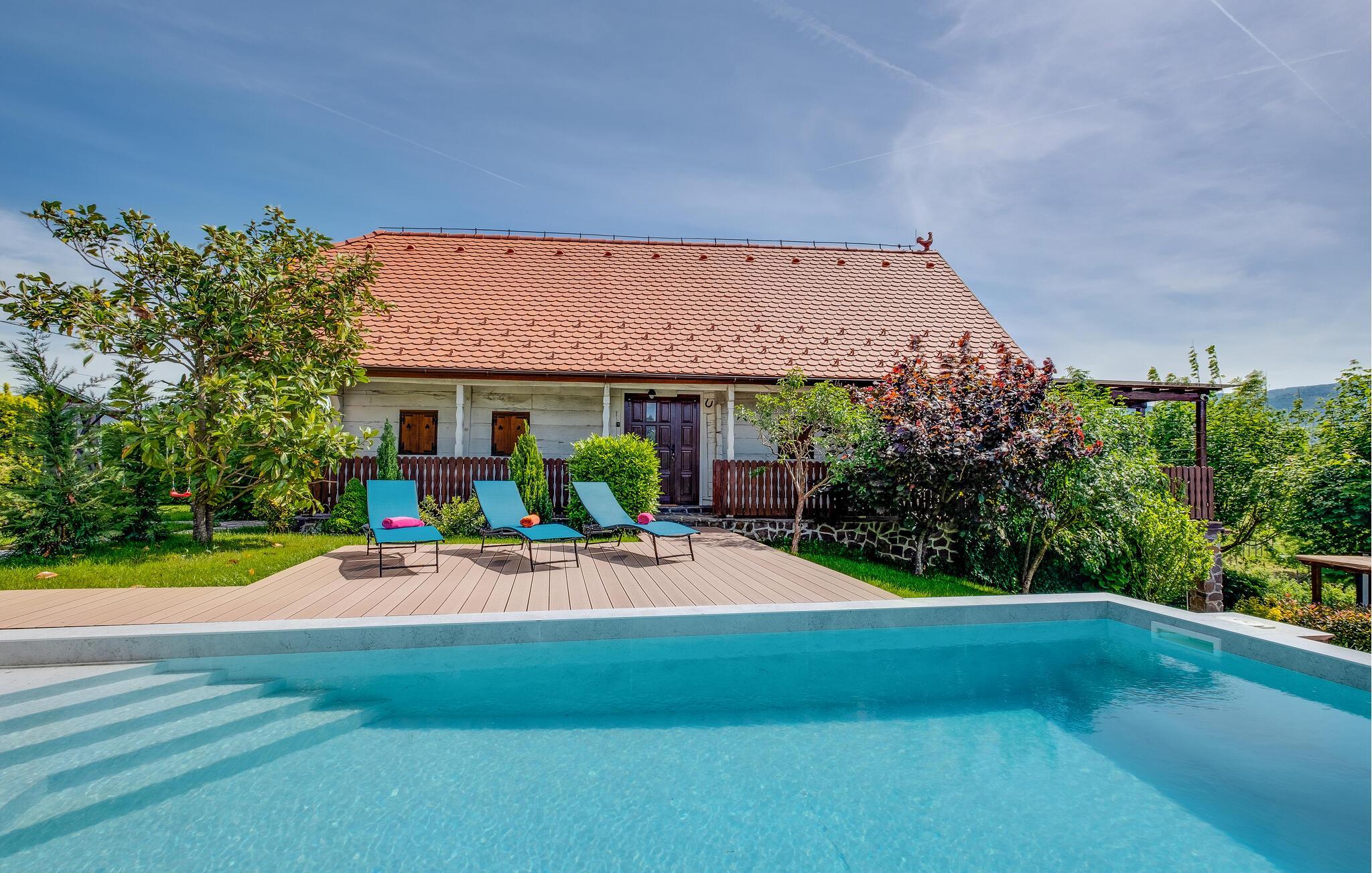 Flykt fra storbyen og den hektiske hverdagen og nyt familieferien i dette romslige feriehuset på en høyde med vakker panoramautsikt over landskapet og Sljeme. Innvendig finner du sjarmen til en fjellhytte, rustikke tremøbler og matchende gardiner. Du kan også benytte deg av fasiliteter som badstue og boblebad i den idylliske hagen. Her kan du tilbringe mye tid utendørs, se på barna leke, slappe av i solen eller grille om kvelden.