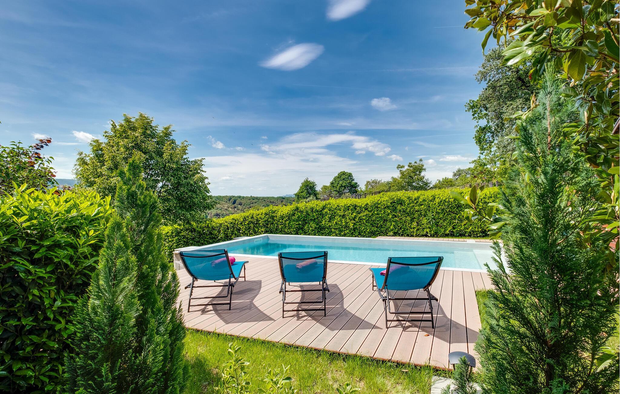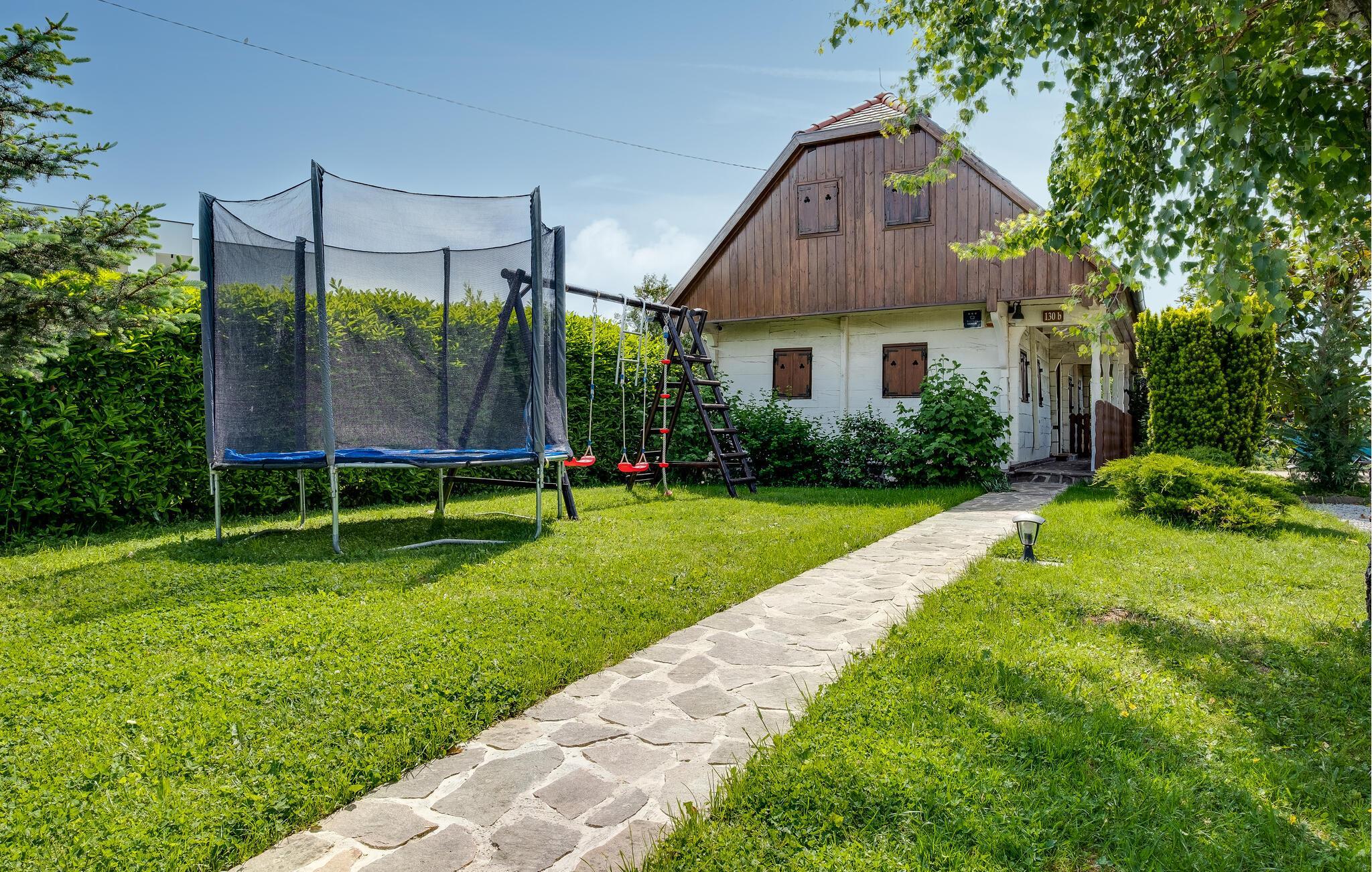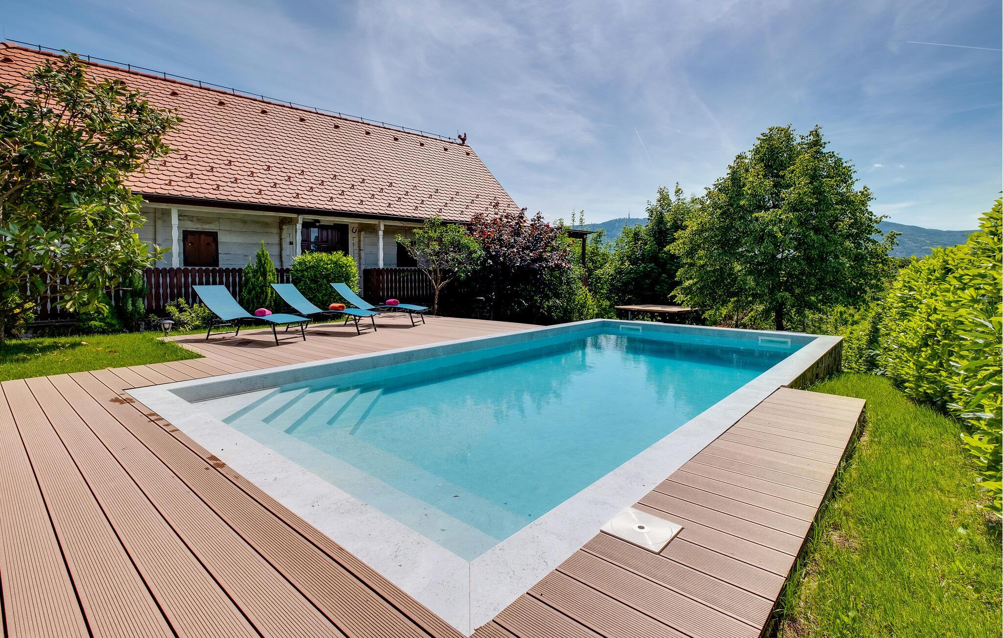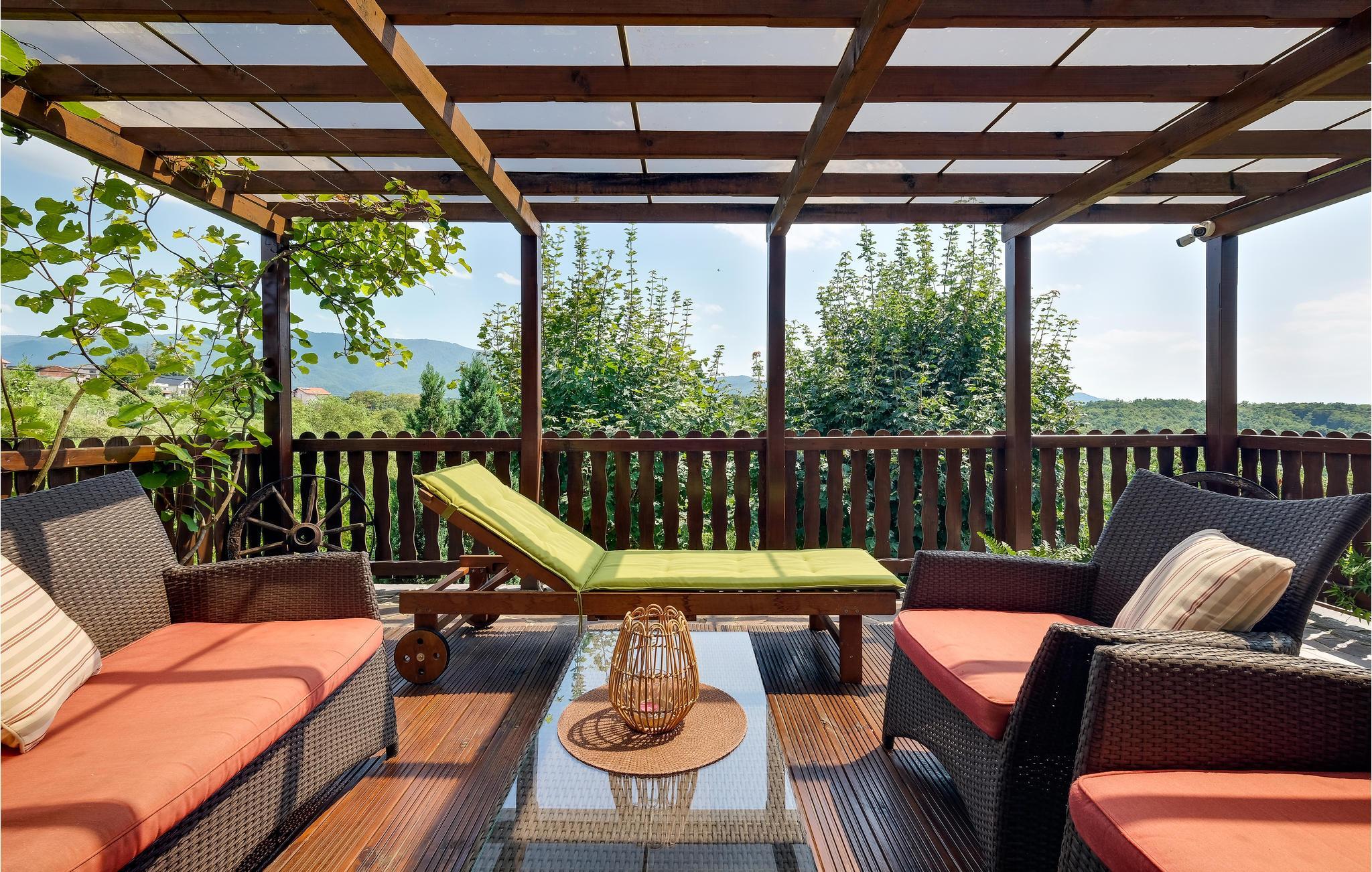 Flykt fra storbyen og den hektiske hverdagen og nyt familieferien i dette romslige feriehuset på en høyde med vakker panoramautsikt over landskapet og Sljeme. Innvendig finner du sjarmen til en fjellhytte, rustikke tremøbler og matchende gardiner. Du kan også benytte deg av fasiliteter som badstue og boblebad i den idylliske hagen. Her kan du tilbringe mye tid utendørs, se på barna leke, slappe av i solen eller grille om kvelden.