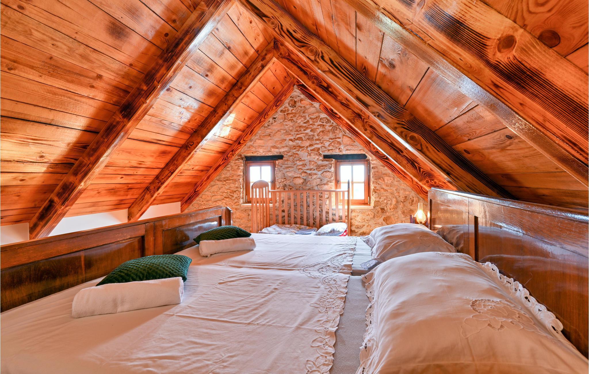 Gamle steinvegger og trebjelker gir dette huset en spesielt sjarmerende atmosfære. Til tross for de gamle bygningselementene trenger du ikke å gjøre uten moderne bekvemmeligheter, ettersom renoveringen har dyktig integrert moderne aspekter. Spesielt soveplassene under tretaket er vanskelig å slå når det gjelder hygge.