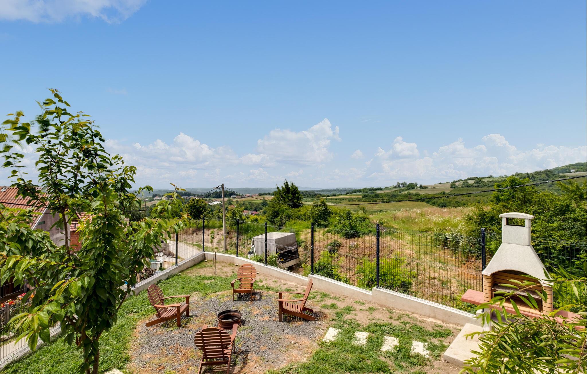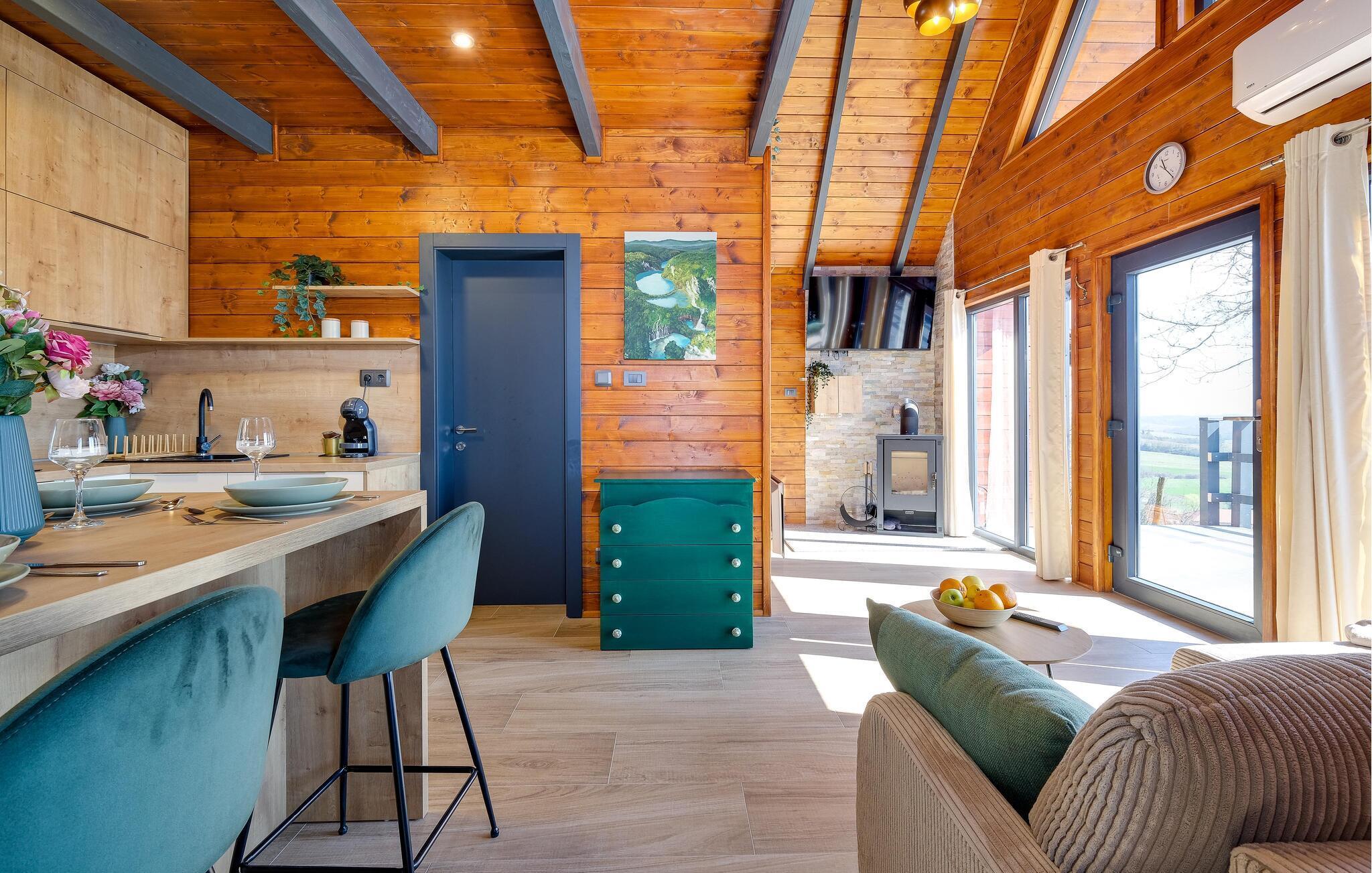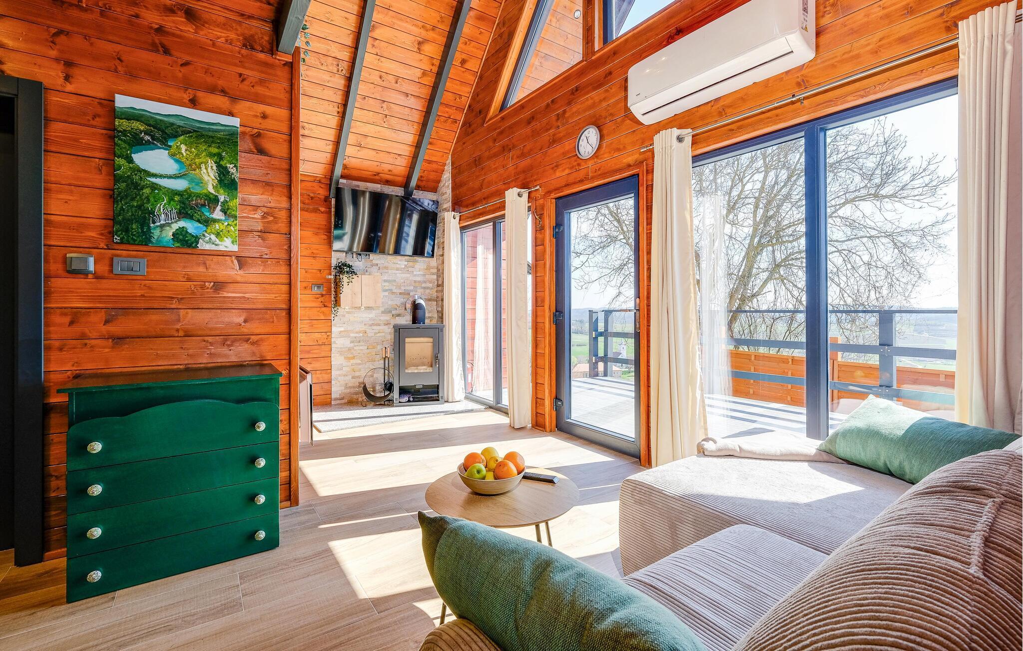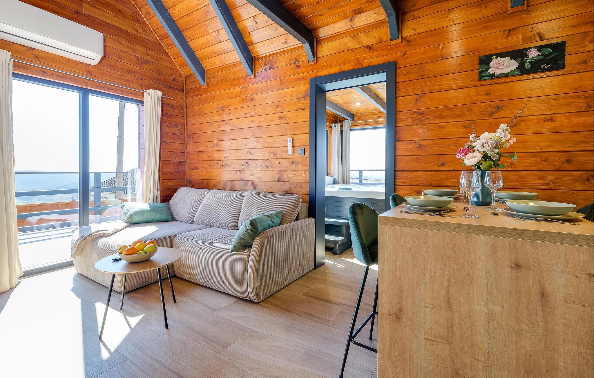 Dette sjarmerende trehuset i Visoko inviterer deg til å flykte fra hverdagens kjas og mas og slappe av i fred og ro. Det stilfullt innredede interiøret byr på moderne komfort, mens det luksuriøse boblebadet og badstuen med utsikt sørger for beroligende avslapning. Den romslige stuen og de koselige soverommene gjør huset ideelt for familier og par.