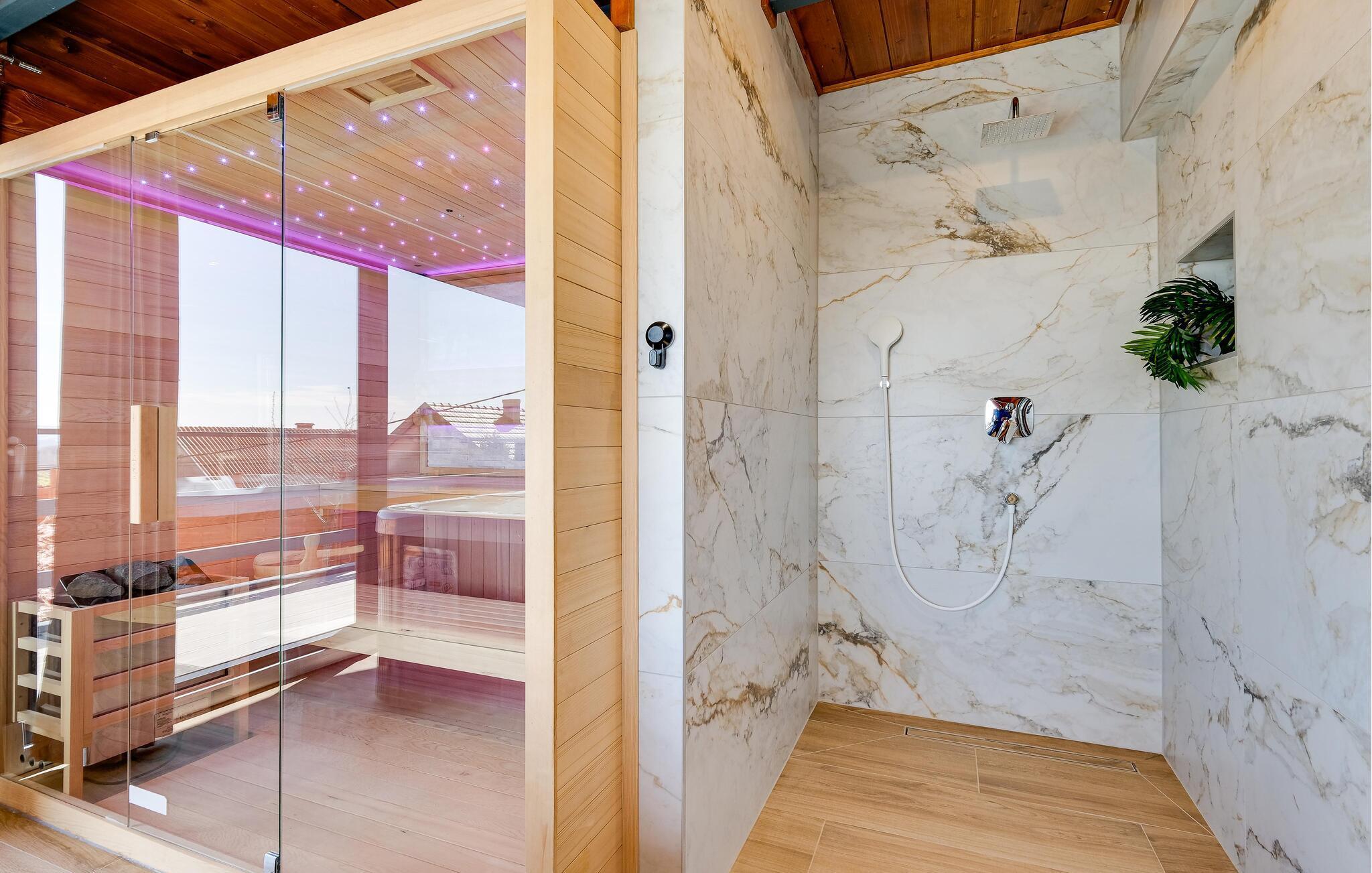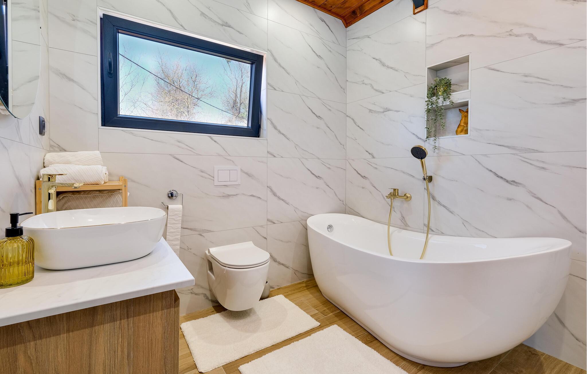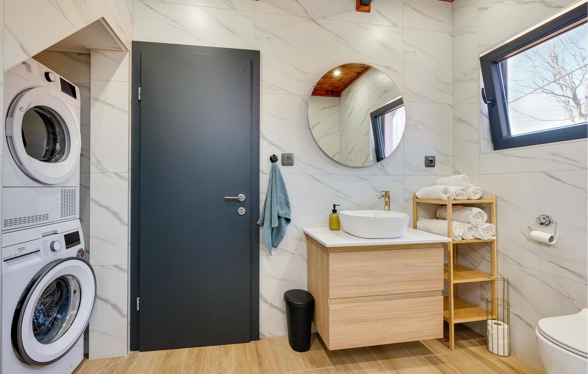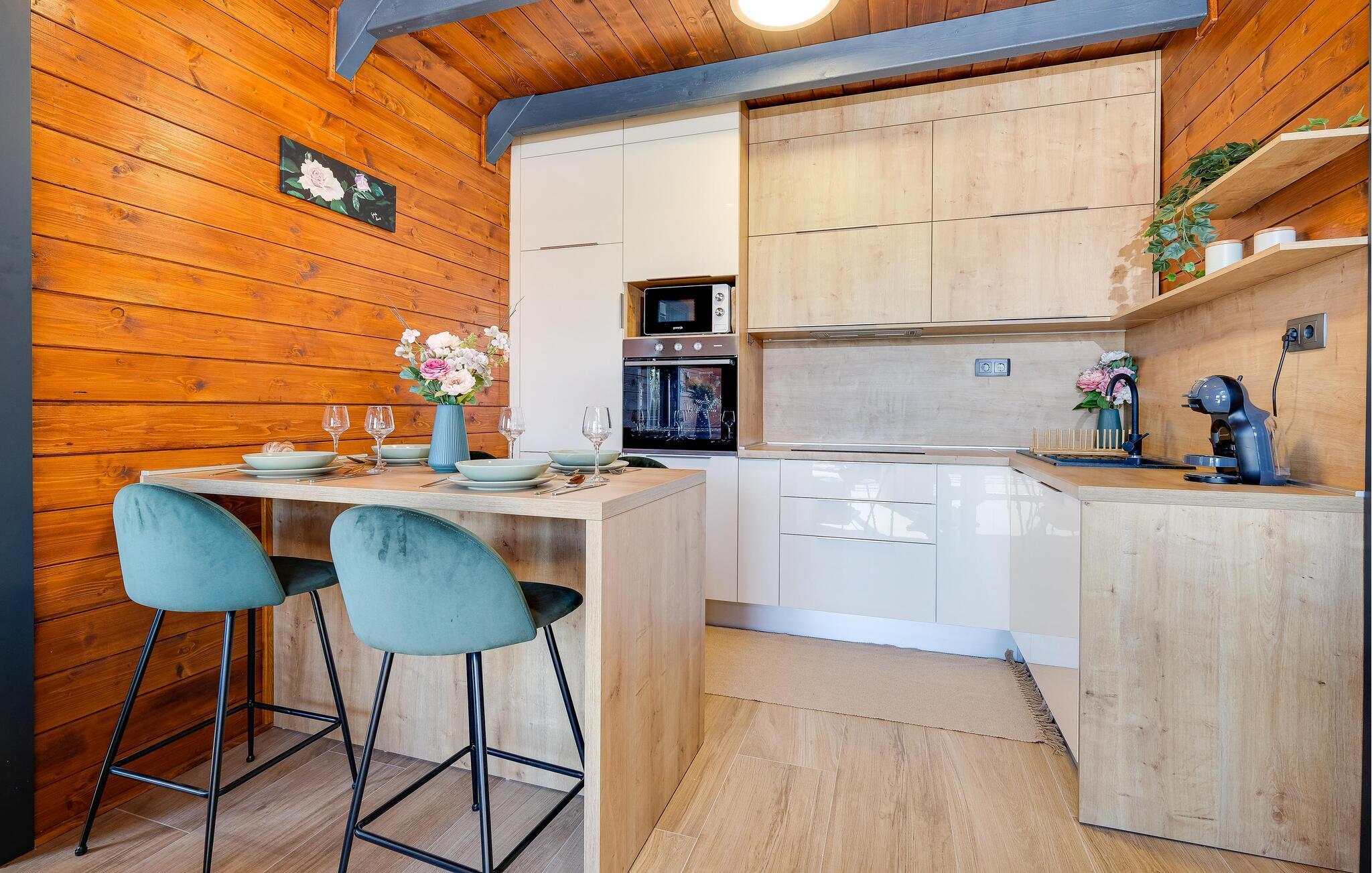 Dette sjarmerende trehuset i Visoko inviterer deg til å flykte fra hverdagens kjas og mas og slappe av i fred og ro. Det stilfullt innredede interiøret byr på moderne komfort, mens det luksuriøse boblebadet og badstuen med utsikt sørger for beroligende avslapning. Den romslige stuen og de koselige soverommene gjør huset ideelt for familier og par.