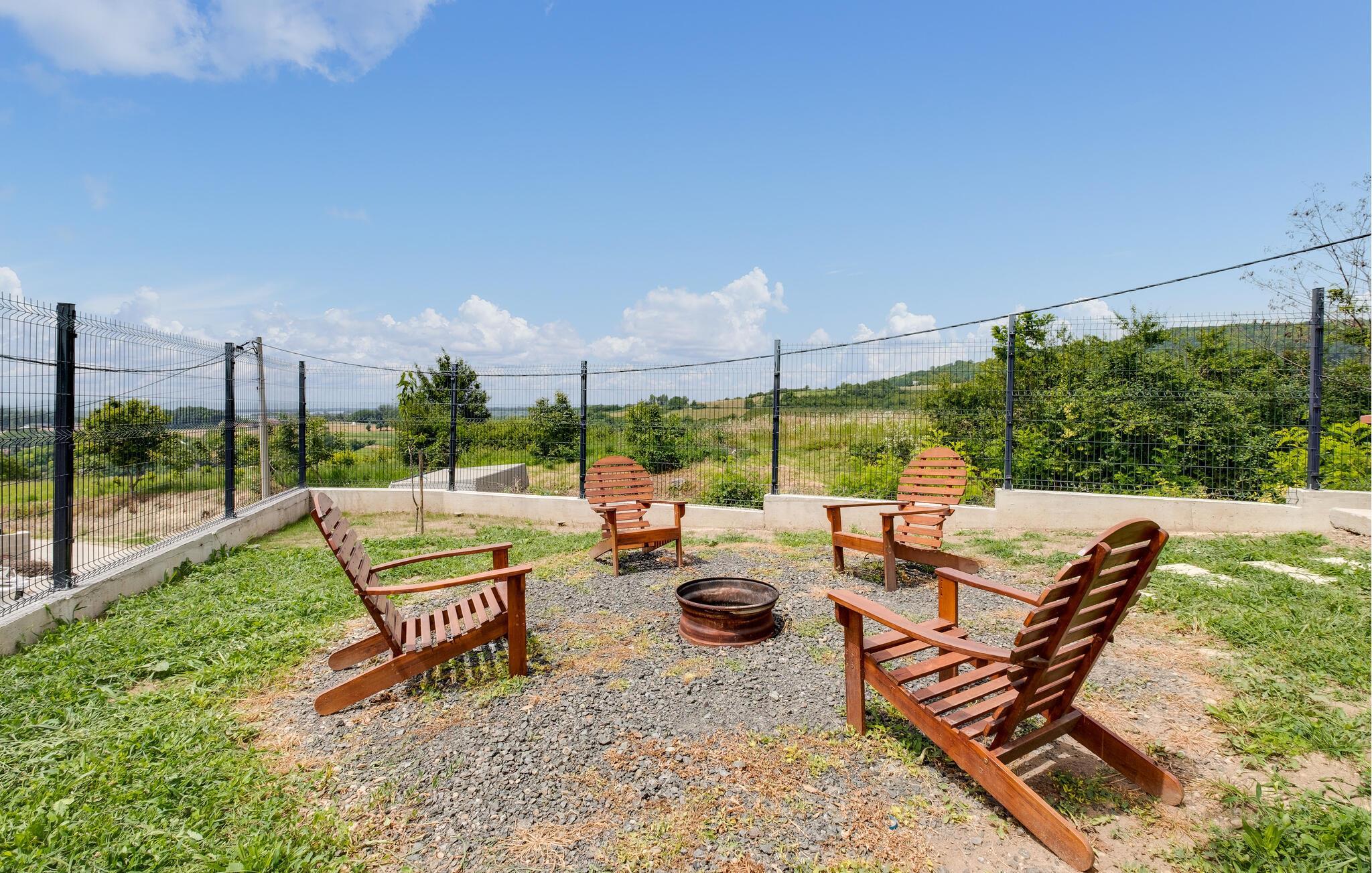 Utenfor kan du nyte den fantastiske utsikten over det omkringliggende landskapet fra terrassen, og la barna leke trygt i hagen. Ligg i solen eller slapp av rundt bålplassen om kvelden.