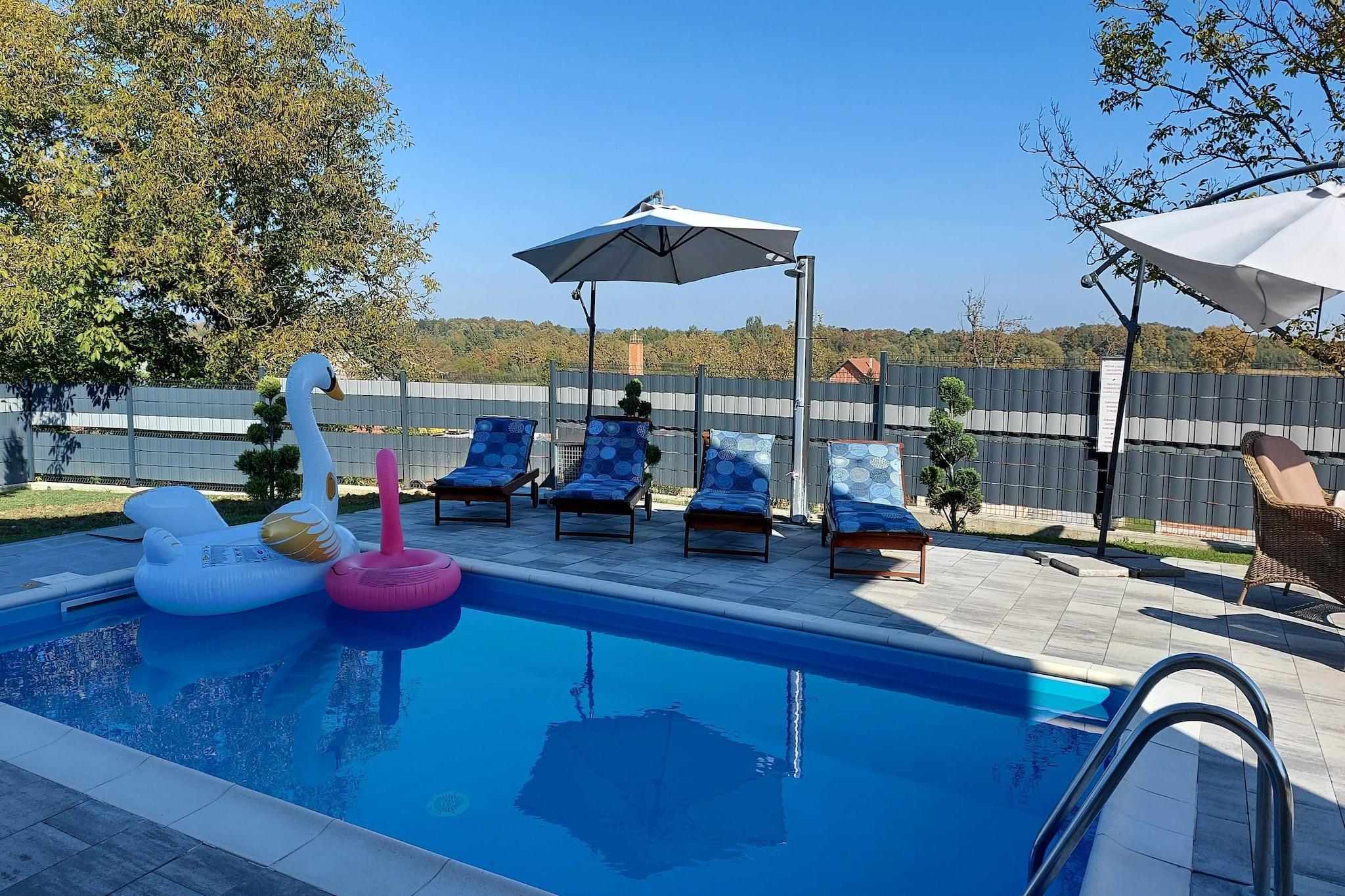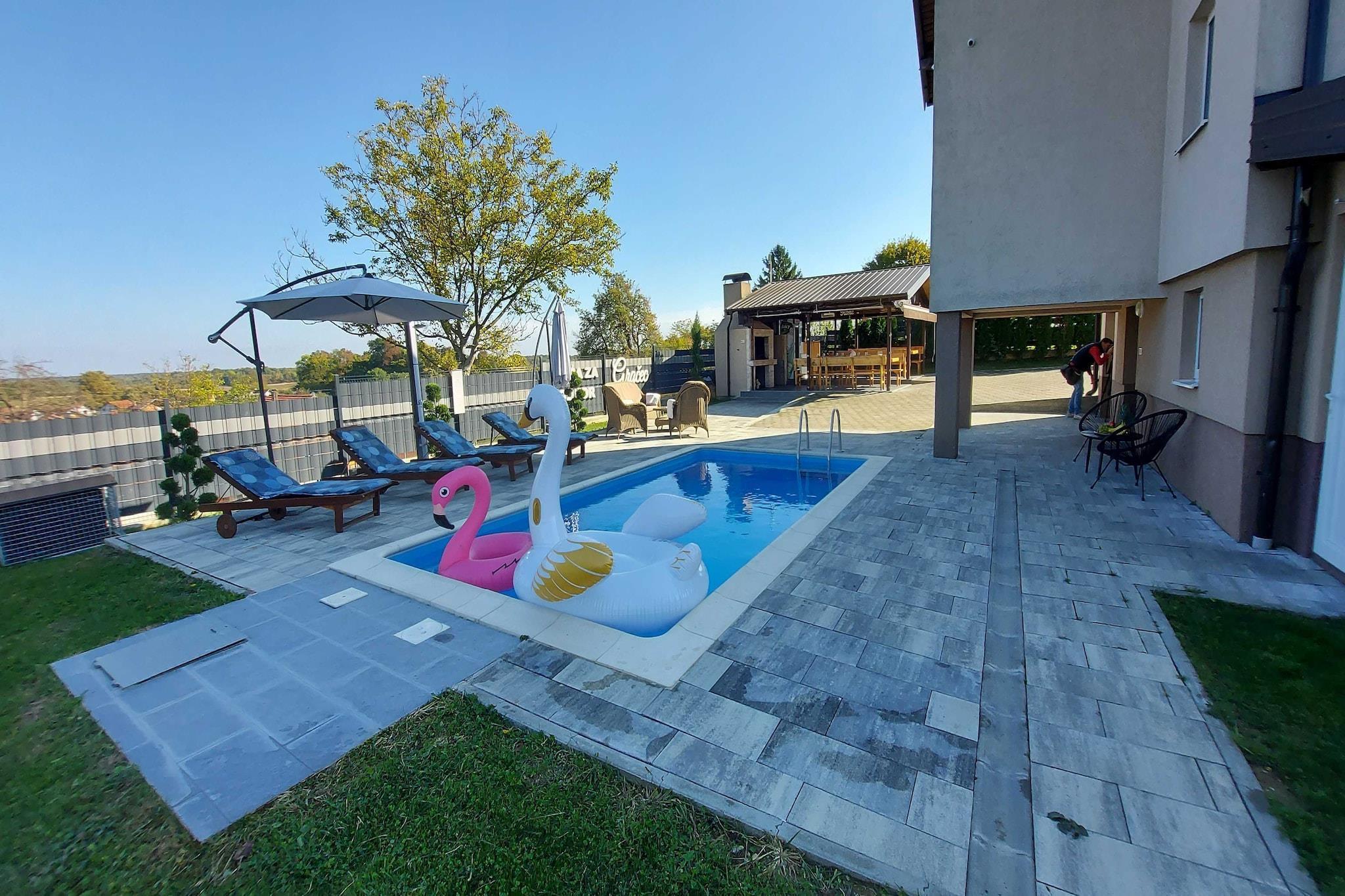 Holiday Home Gracec ligger i St.Ivan Zelina, bare noen få kilometer fra hovedstaden Zagreb. Det ligger i et rolig nabolag. Et svømmebasseng og terrasse utstyrt med solsenger og parasoller står til din disposisjon, noe som gjør dette stedet ideelt for familie- eller venneferier. Du har også tilgang til grillutstyr og et utendørs spiseområde. hjemmet inkluderer også en møblert terrasse og hage hvor du kan slappe av og nyte ferien. Privat parkering er tilgjengelig, reservasjon er ikke nødvendig. Wi-fi er mulig på hele eiendommen. Holiday Home Gracec er en duplex som har første etasje og loft. Den har plass til opptil ti personer Kjøkken, spisestue, stue og bad ligger i første etasje mens to soverom med terrasse er plassert på hemsen Kjøkkenet er godt utstyrt med stekeovn, vannkoker, kaffetrakter, kjøleskap, stort spisebord. I spisestuen er det flatskjerm-TV, sovesofa for dobbelseng, vedovn. Soverommene har store dobbeltsenger og garderober. Badene har dusj og toalett. På grunn av eiendommene god beliggenhet alt du trenger under oppholdet finner du i området. I nærheten av eiendommen finner du kaffebar, ambulanse, apotek, postkontor og supermarked i nærheten av eiendommen. Nærmeste bussholdeplass ligger mindre enn 1 km fra huset. Flyplassen ligger 27 km unna.