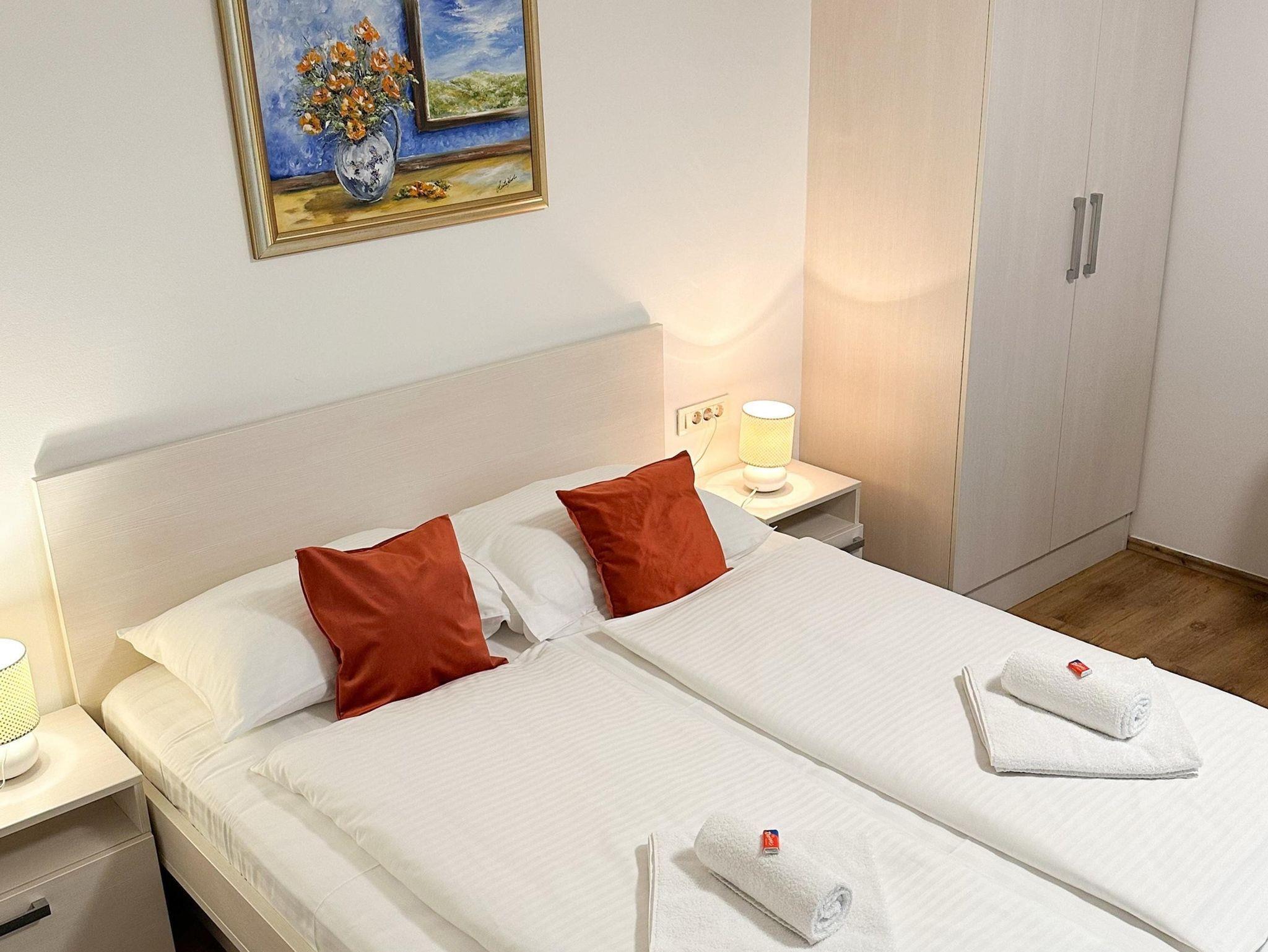 Zimmer bietet Platz für 2 Gäste. Die Betten sind in Schlafzimmern, die es 1 gibt, innerhalb einer Gesamtfläche von 20m2, angeordnet. Die Nutzung einer gemeinsamen Küche ist möglich. Die reservierte Unterkunftseinheit ist ein Zimmer mit eigenem Badezimmer mit der Möglichkeit der Nutzung einer Küche ohne Zuzahlung. Die reservierte Unterkunftseinheit verfügt über einen gemeinsame Terrasse. Räume der gebuchten Unterkunftseinheit werden nicht in eine Ganze verbunden. IM PREIS INBEGRIFFEN: Kurtaxe, Endreinigung, Klimatisierung, Zentralheizung, gemeinsame Küche, Internet, Kinderbett, Bügeleisen, Bügelbrett, Föhn. Die Verfügbarkeit zusätzlicher Dienstleistungen in Ihrem reservierten Termin und die Preise derselben (falls nicht aufgeführt) müssen im Voraus überprüft werden. Zusätzliche Dienstleistungen die in der Zahlungsaufforderung nicht aufgeführt sind werden direkt beim Vermieter bezahlt, angenommen der Gast nutzt auch diese.
