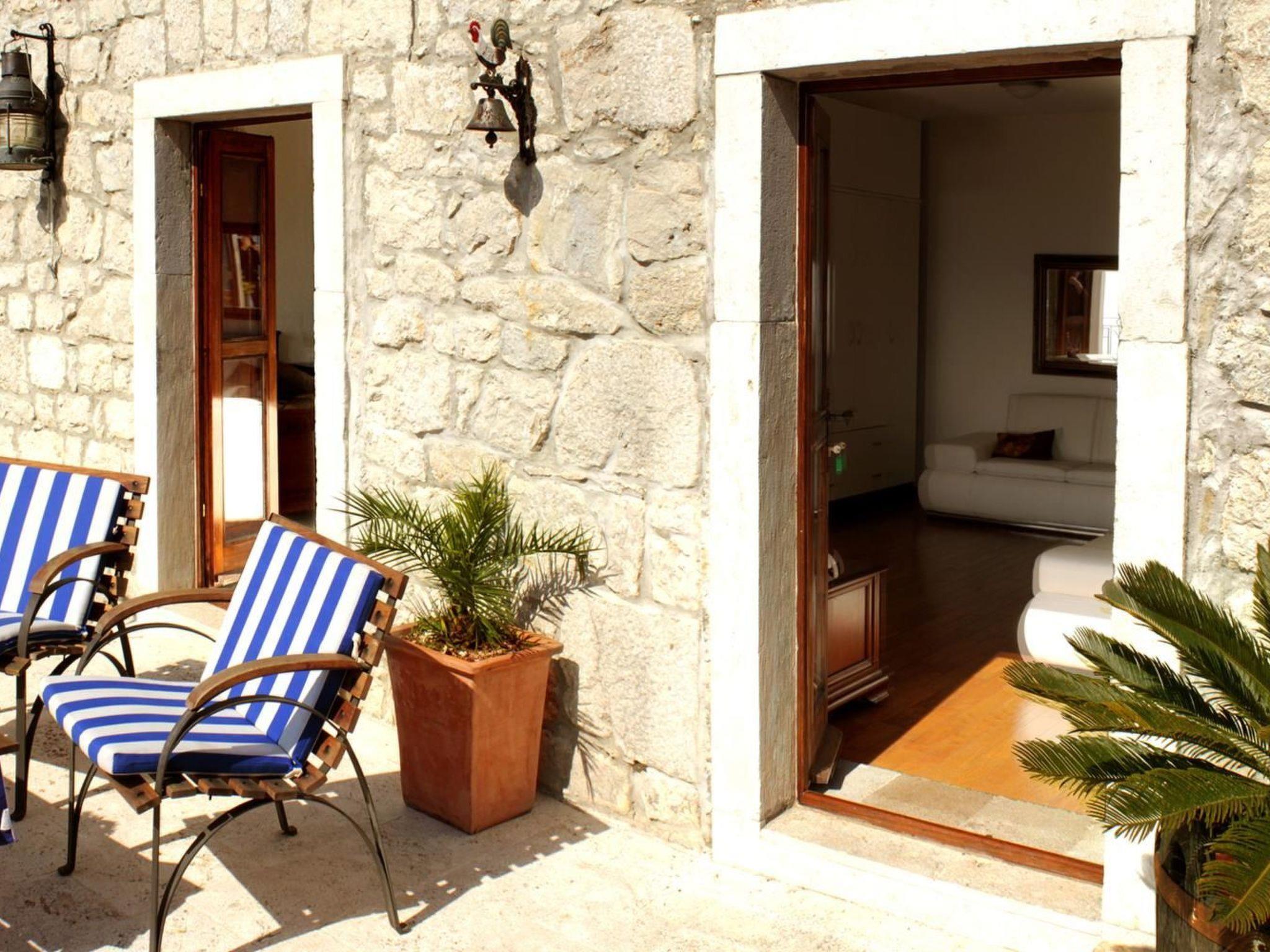 Newly renovated fully enclosed traditional Dalmatian stone villa overlooking the village church in the valley, with a spacious panoramic sea and mountain view terrace