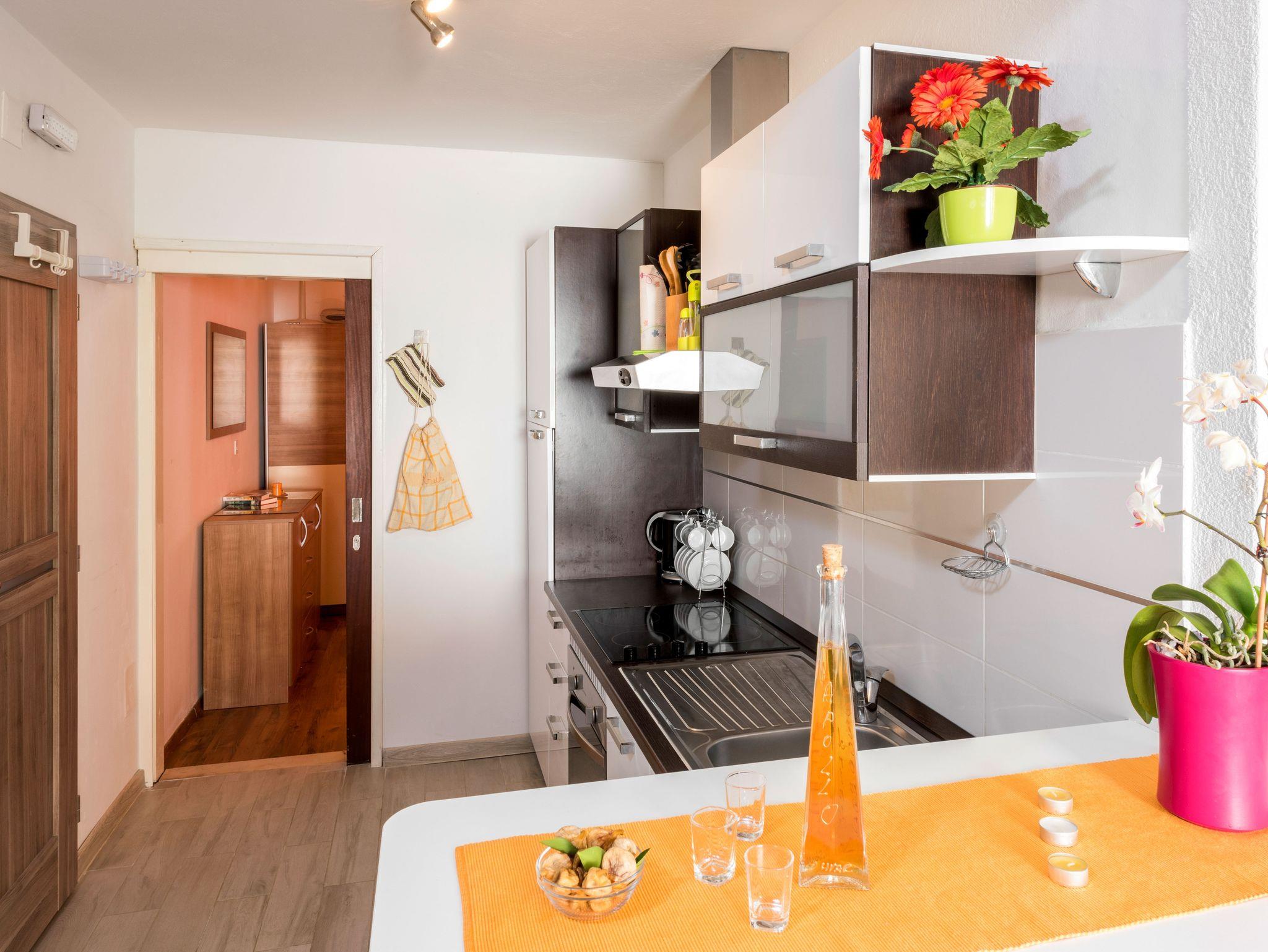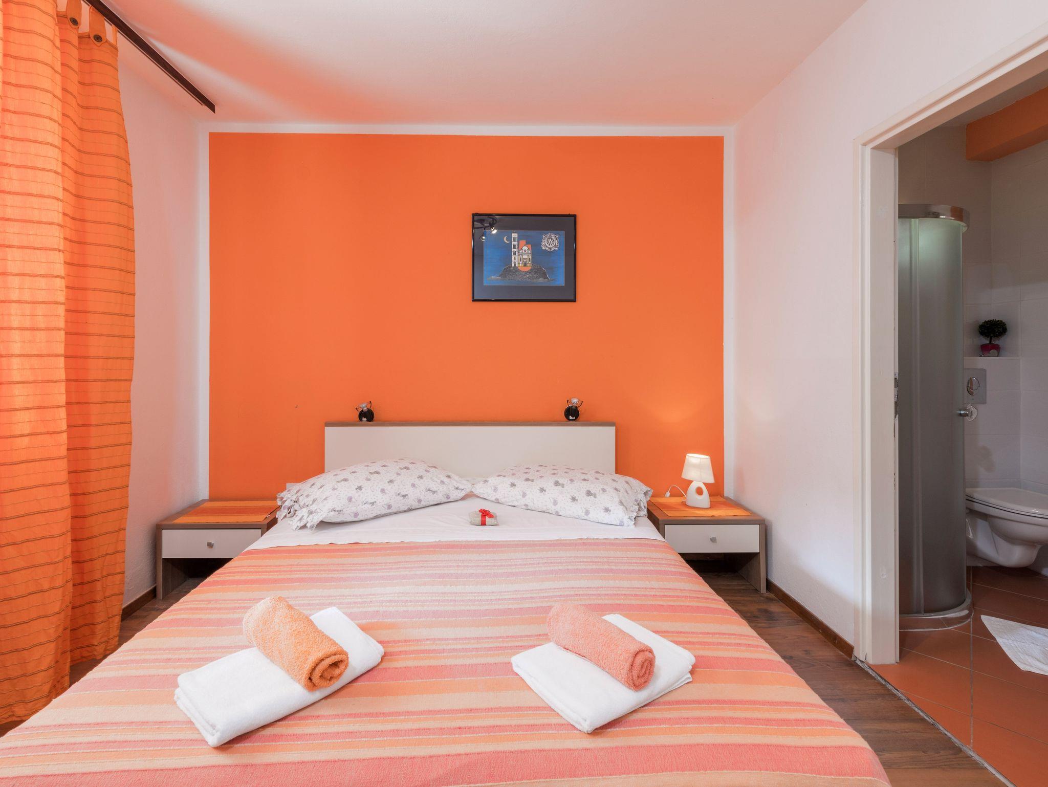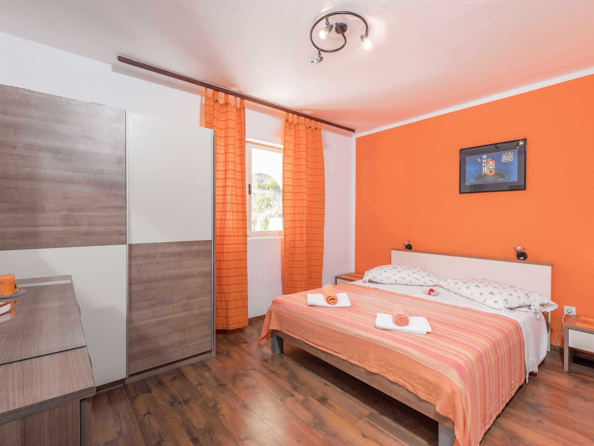 Ferienwohnung bietet Platz für 4 Gäste. Die Betten sind in Schlafzimmern, die es 1 gibt, und in Wohnzimmer, innerhalb einer Gesamtfläche von 37m2, angeordnet. Die Gäste haben eine eigene Terrasse zur Verfügung, auf der sie in warmen Sommernächten genießen können. Das Apartment bietet Meerblick. IM PREIS INBEGRIFFEN: Kurtaxe, Endreinigung, Klimatisierung, Parkplatz, Internet, Bootsanlegeplatz, Kinderbett, Zusatzbett, Bügeleisen, Bügelbrett, Föhn. VERBINDLICHE ZUSÄTZLICHE KOSTEN: Aufzahlung für Kurzaufenthalte (prozentualer Zuschlag pro Nächtigungsanzahl: 30% - 1, 20% - 2, 10% - 3). Die Verfügbarkeit zusätzlicher Dienstleistungen in Ihrem reservierten Termin und die Preise derselben (falls nicht aufgeführt) müssen im Voraus überprüft werden. Zusätzliche Dienstleistungen die in der Zahlungsaufforderung nicht aufgeführt sind werden direkt beim Vermieter bezahlt, angenommen der Gast nutzt auch diese. Ermäßigung auf den Grundpreis: Gratistag 14=13 (bei einem Aufenthalt von 14 Tagen oder mehr erhalten Sie einen Gratistag für den Aufenthalt bis 31.12.26).