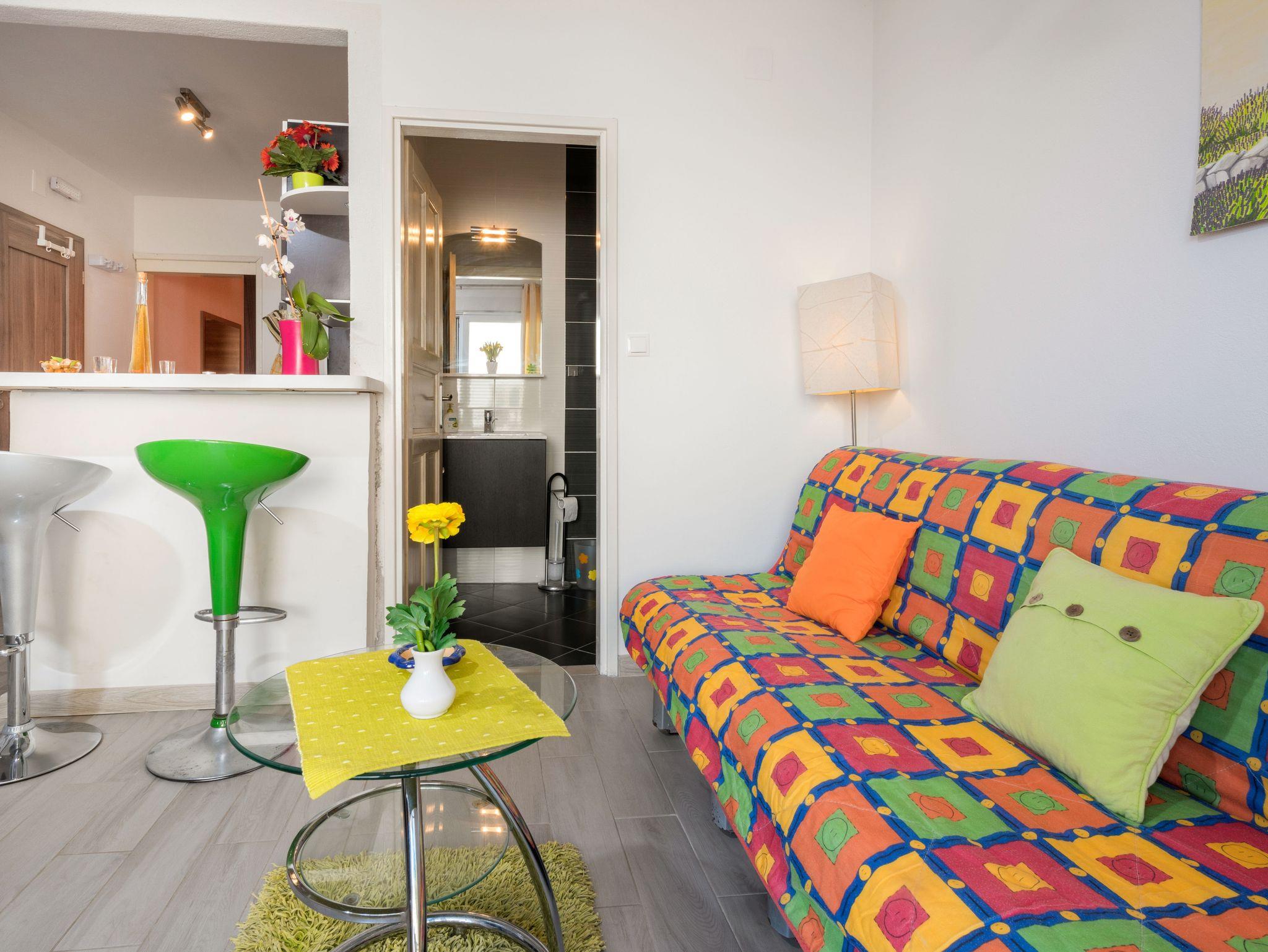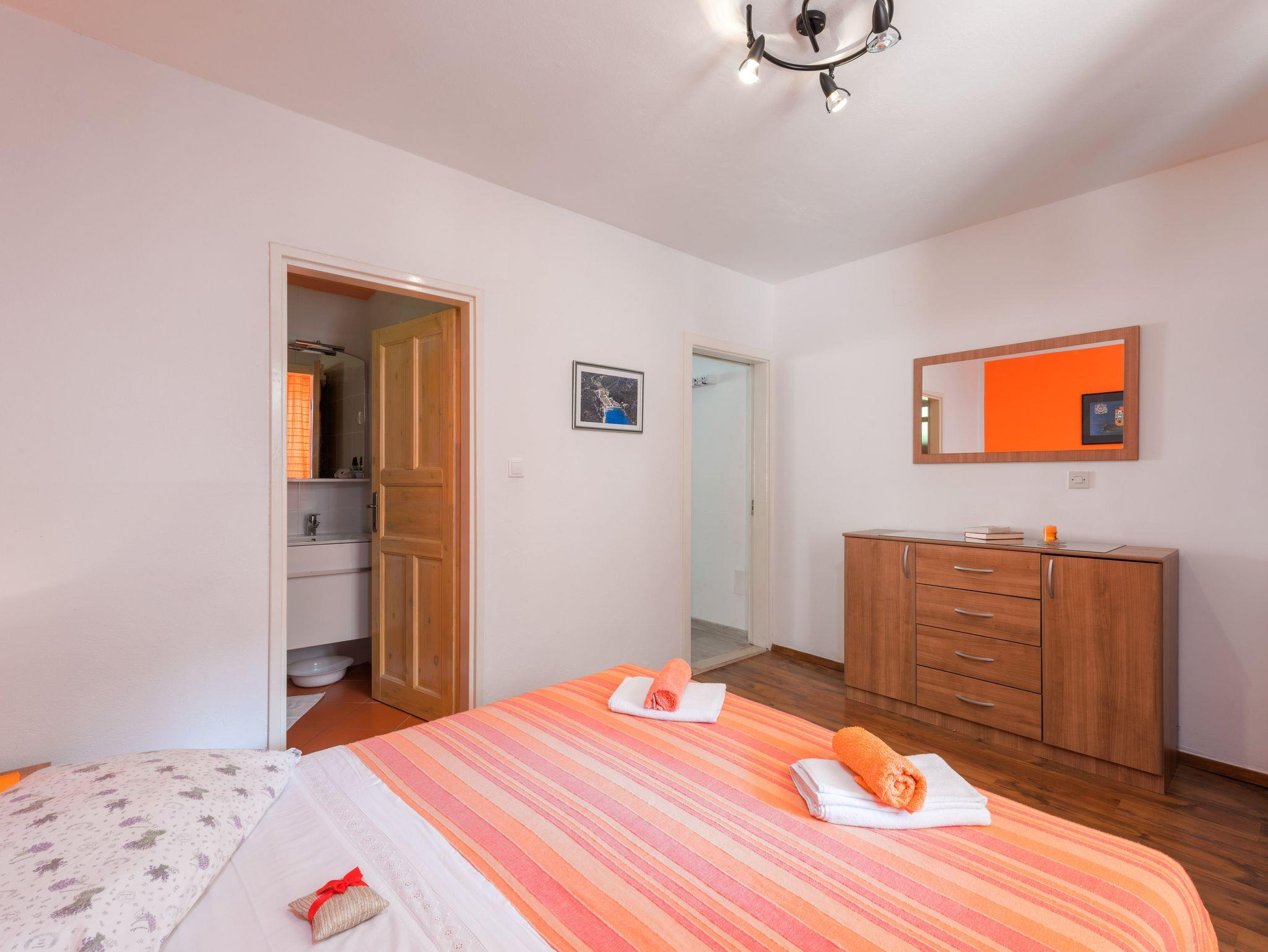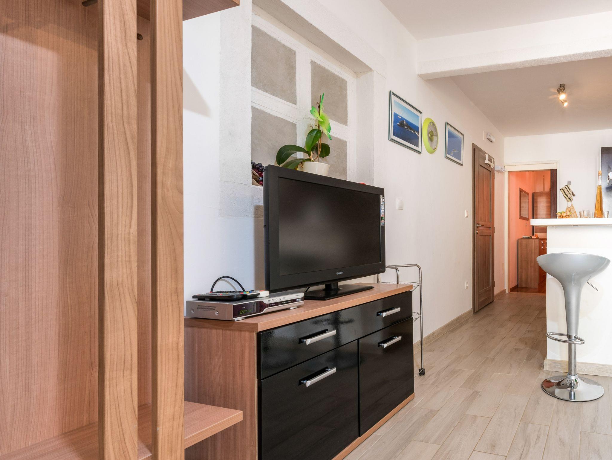 Ferienwohnung bietet Platz für 4 Gäste. Die Betten sind in Schlafzimmern, die es 1 gibt, und in Wohnzimmer, innerhalb einer Gesamtfläche von 37m2, angeordnet. Die Gäste haben eine eigene Terrasse zur Verfügung, auf der sie in warmen Sommernächten genießen können. Das Apartment bietet Meerblick. IM PREIS INBEGRIFFEN: Kurtaxe, Endreinigung, Klimatisierung, Parkplatz, Internet, Bootsanlegeplatz, Kinderbett, Zusatzbett, Bügeleisen, Bügelbrett, Föhn. VERBINDLICHE ZUSÄTZLICHE KOSTEN: Aufzahlung für Kurzaufenthalte (prozentualer Zuschlag pro Nächtigungsanzahl: 30% - 1, 20% - 2, 10% - 3). Die Verfügbarkeit zusätzlicher Dienstleistungen in Ihrem reservierten Termin und die Preise derselben (falls nicht aufgeführt) müssen im Voraus überprüft werden. Zusätzliche Dienstleistungen die in der Zahlungsaufforderung nicht aufgeführt sind werden direkt beim Vermieter bezahlt, angenommen der Gast nutzt auch diese. Ermäßigung auf den Grundpreis: Gratistag 14=13 (bei einem Aufenthalt von 14 Tagen oder mehr erhalten Sie einen Gratistag für den Aufenthalt bis 31.12.26).