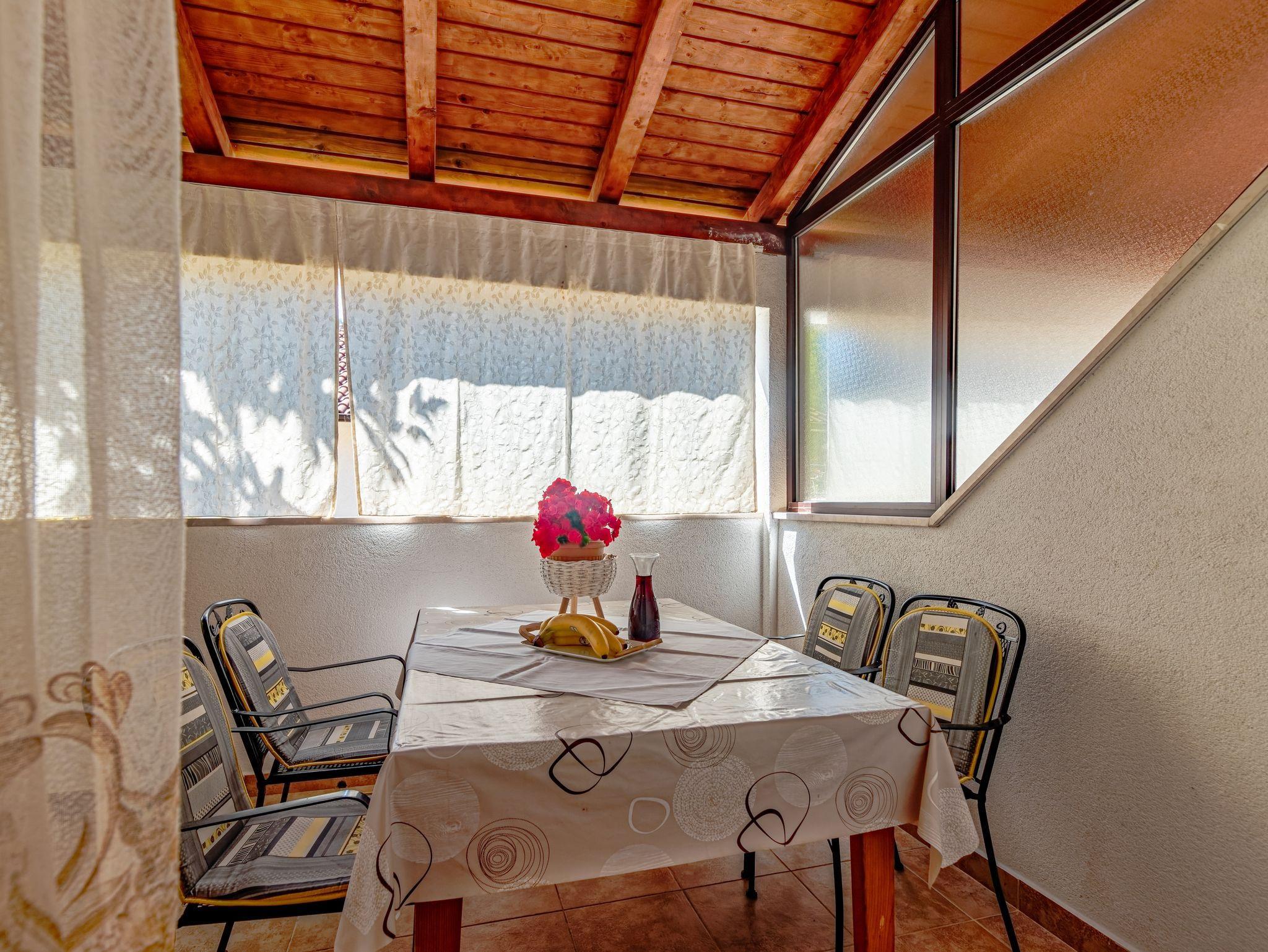 Ferienwohnung bietet Platz für 3 Gäste. Die Betten sind in Schlafzimmern, die es 1 gibt, innerhalb einer Gesamtfläche von 23m2, angeordnet. Die Gäste haben eine eigene Terrasse zur Verfügung, auf der sie in warmen Sommernächten genießen können. Es ist erlaubt, Speisen auf dem Gemeinschafts-Grill vorzubereiten. IM PREIS INBEGRIFFEN: Kurtaxe, Endreinigung, Klimatisierung, Parkplatz, Internet, Wäschewaschen, Föhn. VERBINDLICHE ZUSÄTZLICHE KOSTEN: Aufzahlung für Kurzaufenthalte (prozentualer Zuschlag pro Nächtigungsanzahl: 30% - 1, 20% - 2, 10% - 3). Die Verfügbarkeit zusätzlicher Dienstleistungen in Ihrem reservierten Termin und die Preise derselben (falls nicht aufgeführt) müssen im Voraus überprüft werden. Zusätzliche Dienstleistungen die in der Zahlungsaufforderung nicht aufgeführt sind werden direkt beim Vermieter bezahlt, angenommen der Gast nutzt auch diese.
