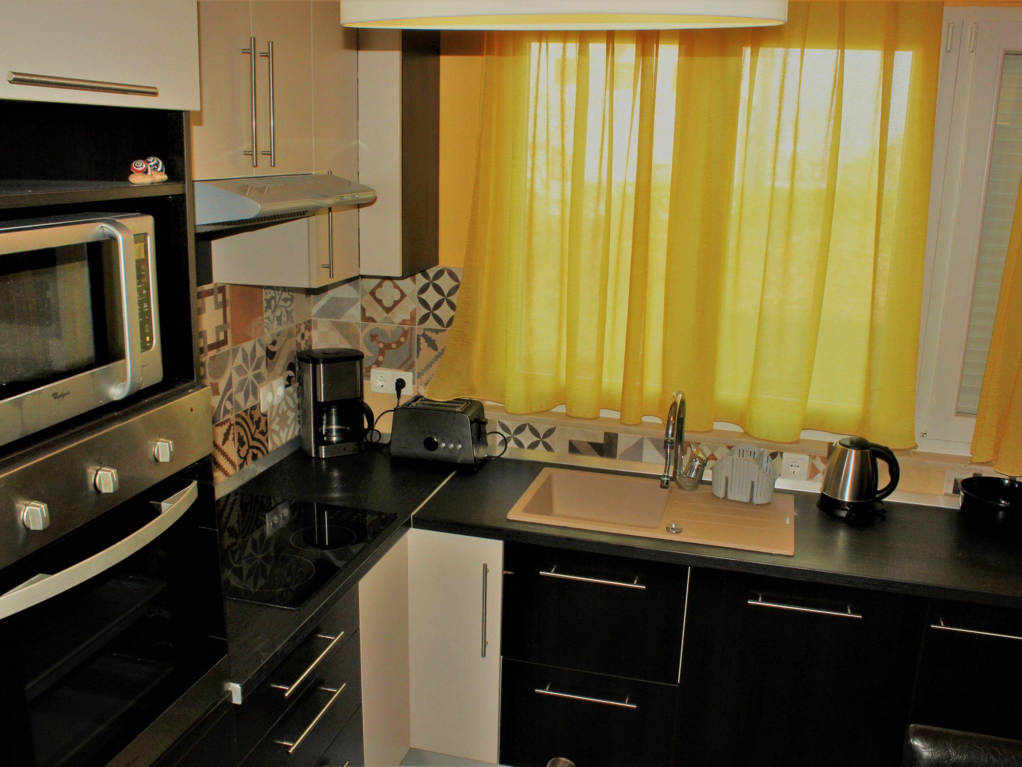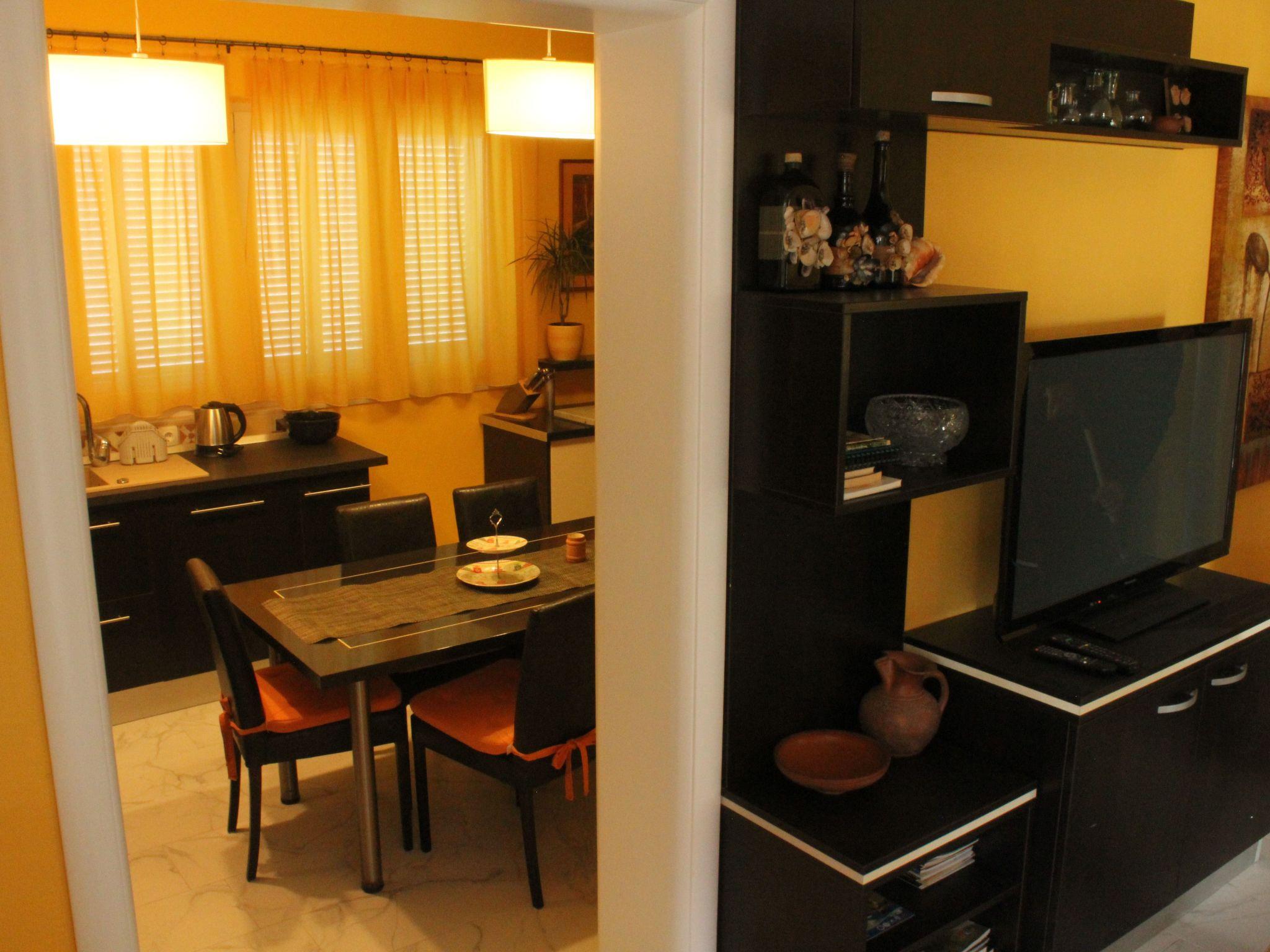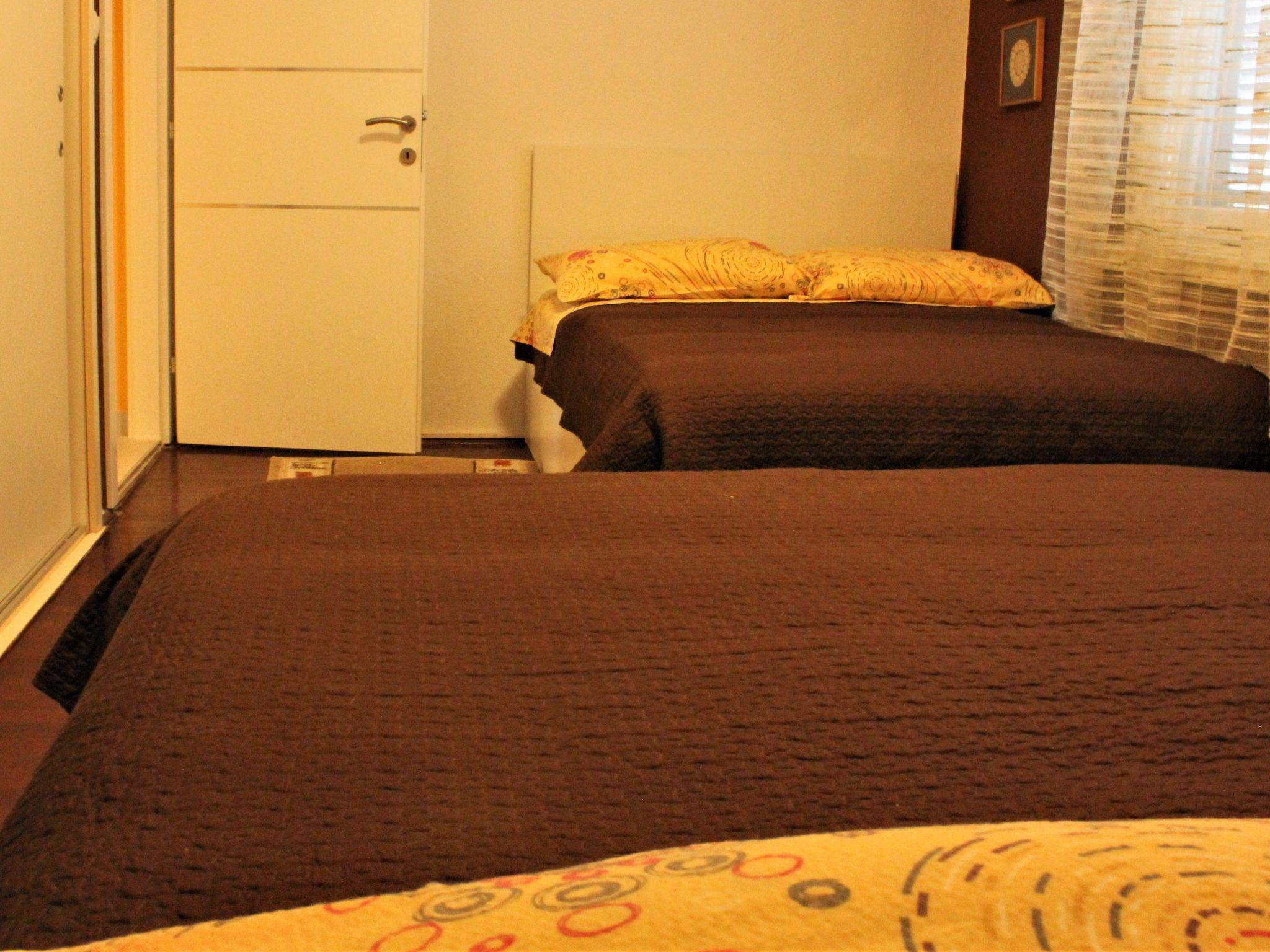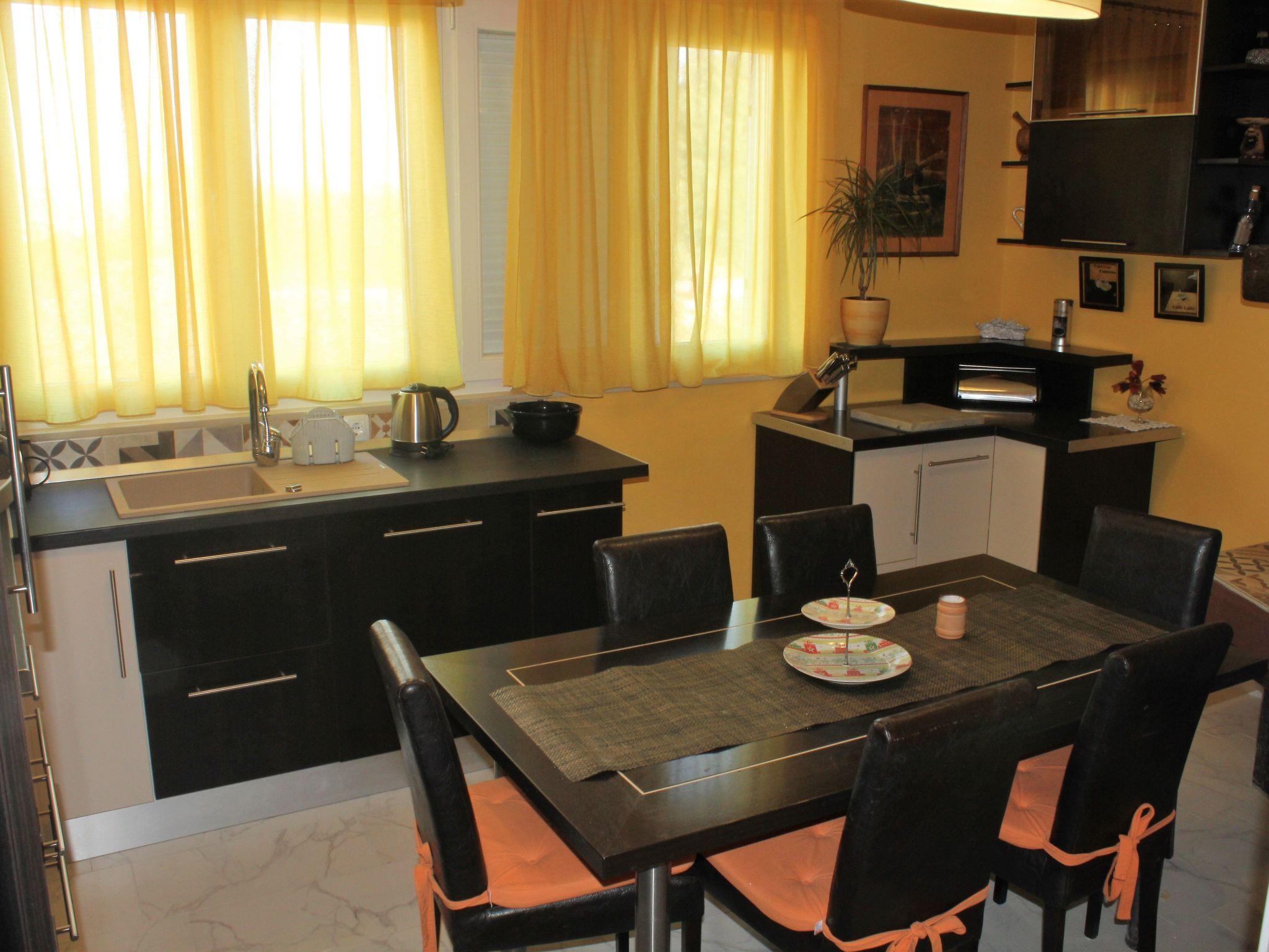 This apartment is on the ground floor of the two-storey house. It has a living space of 126 m2 (including the terrace) and three bedrooms. One bedroom has two double beds, the other two bedrooms have a double bed each - the apartment can accommodate eight persons. The kitchen is fully equipped, complete with kitchen utensils, microwave and electric oven, gas cooking plate, electric kettle, toaster, fridge with freezer, refrigerator water. The apartment is air conditioned, equipped with digital satellite system (approximately 2000 free channels), DVD player and 26 “LED TV. Internet access via WLAN. In the bathroom there is a washing machine which is used exclusively by guests of the apartments.