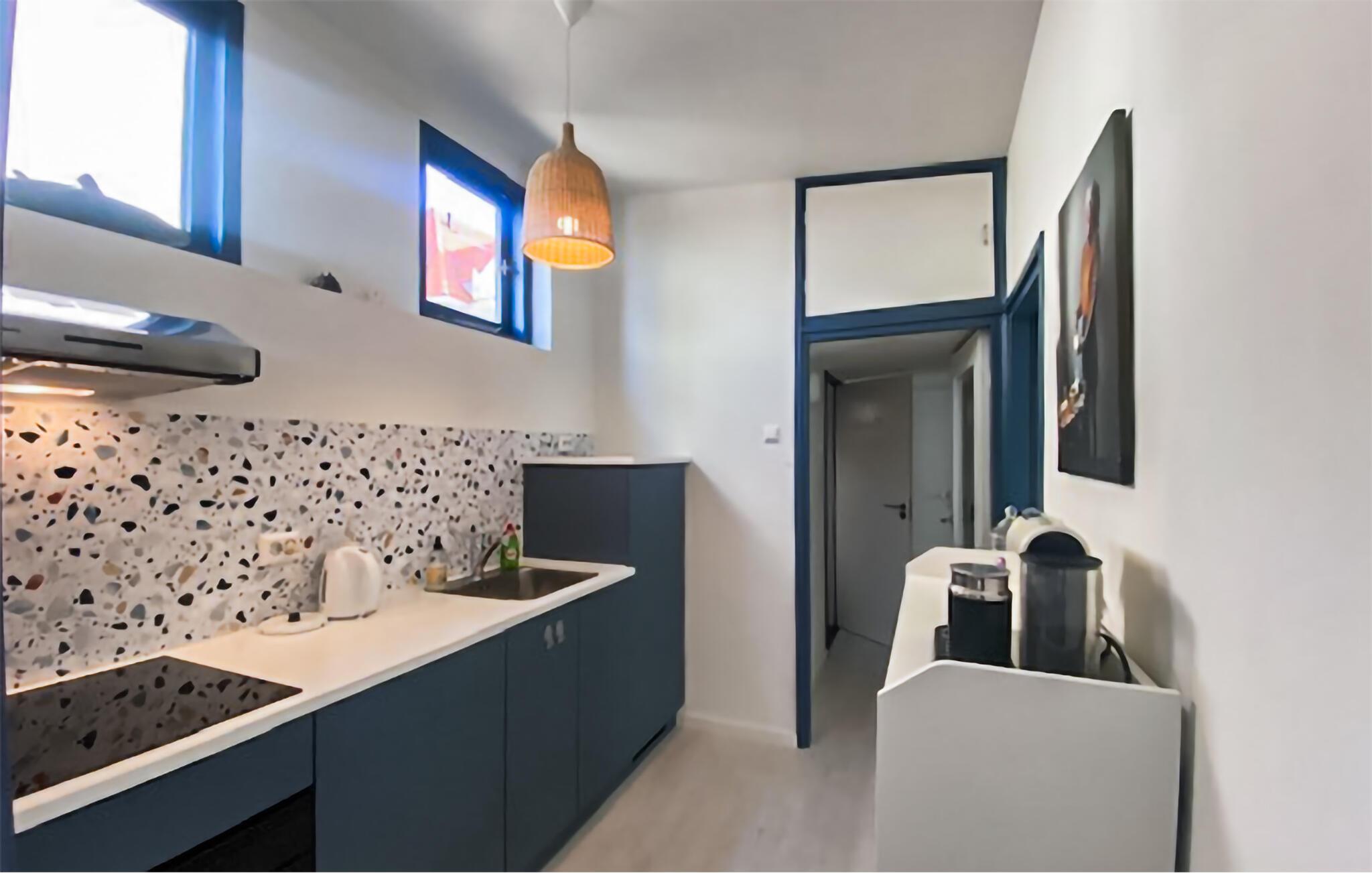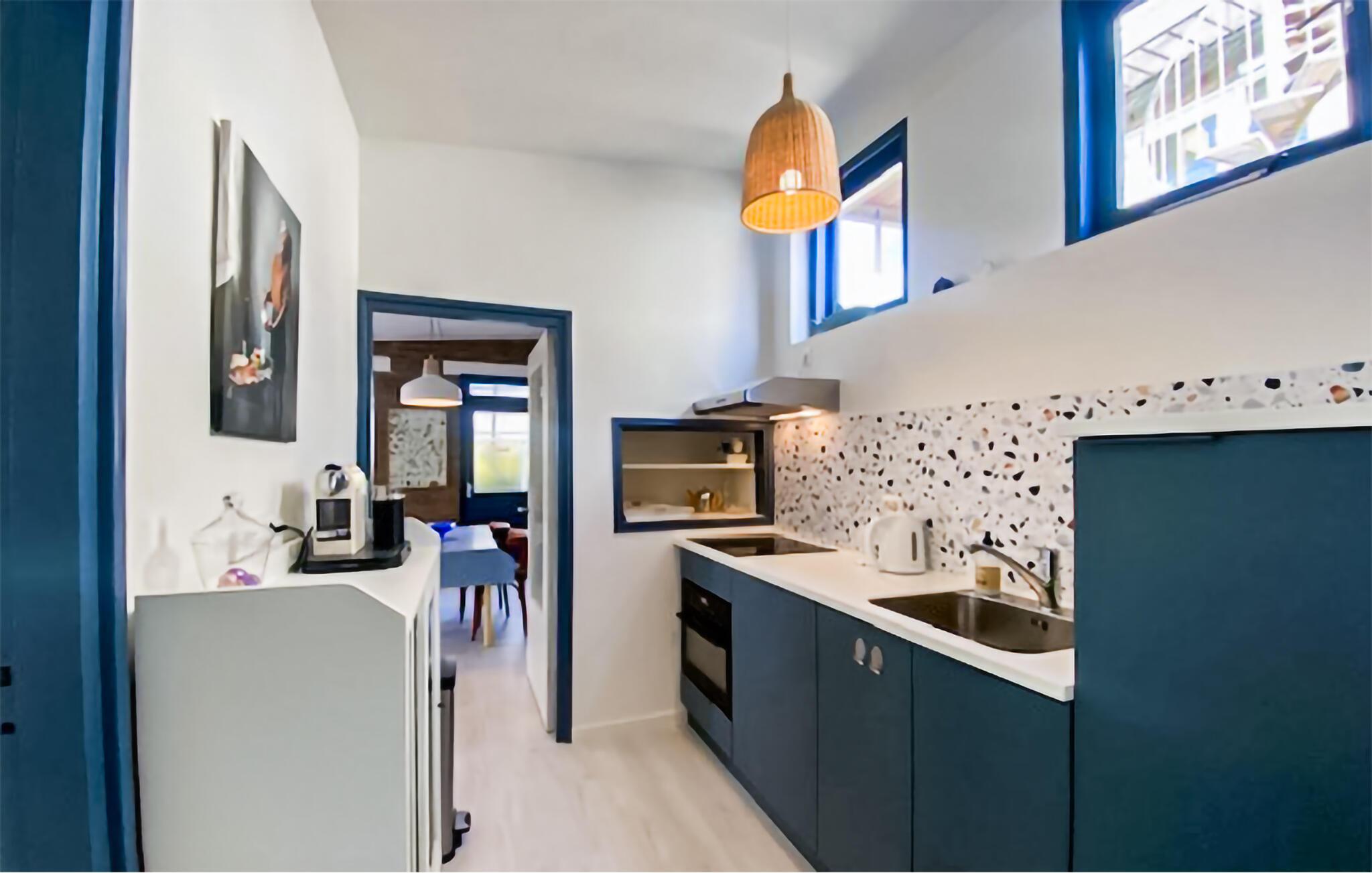 Bare et steinkast fra stranden, gjemt bak hovedhuset, ligger det koselige Bergenhuisje. Et typisk sommerhus, men med egen inngang til gaten, privatliv og en vakker terrasse og klithage foran døren. Hele huset ligger i første etasje.