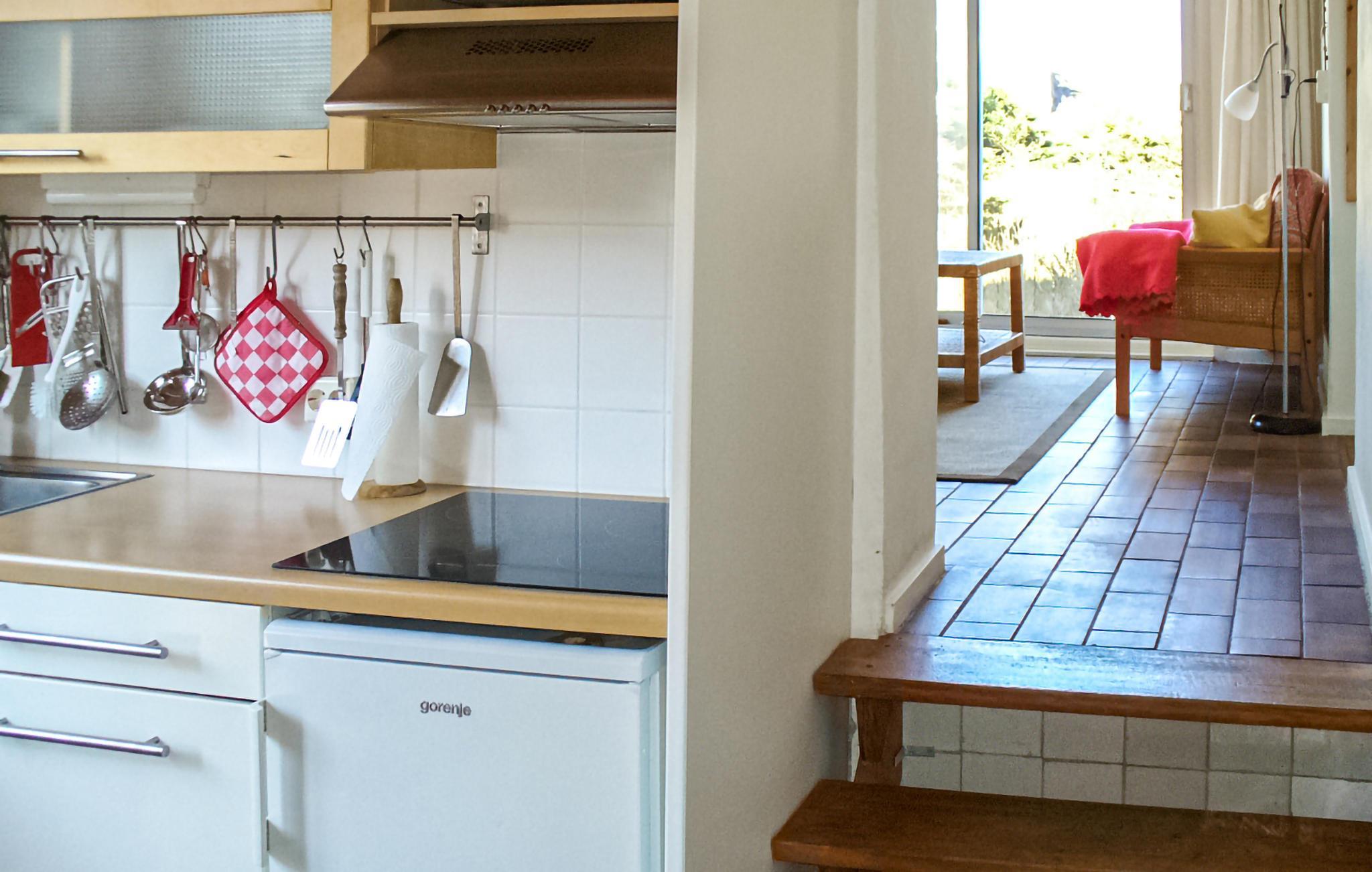 Leiligheten ligger rett bak sanddynene i en rolig gate nær strandpromenaden og hyggelige restauranter - ideelt for en avslappende ferie med partneren din. Her har du også tilgang til stranden. Stuen er komfortabelt innredet med sittegruppe, TV og Blu-ray-spiller. Kjøkkenet er komfortabelt og innbyr til å tilberede deilige måltider.
