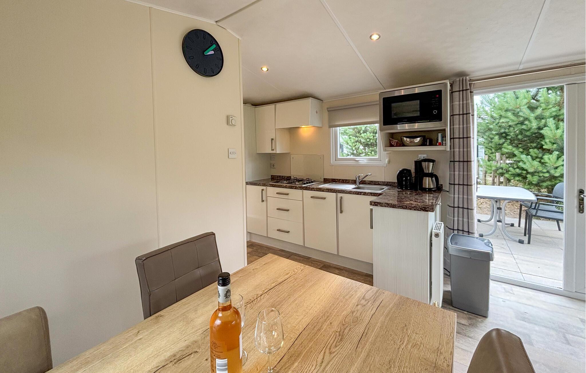Hvis du planlegger en ferie nær vannet og ønsker å oppleve naturen, er dette godt beliggende mobile home det rette valget. Det ønsker deg velkommen nær Veluwesjøen, og de lyse, koselige rommene danner en vakker ramme rundt ferien din. Etter en aktiv dag kan dere sette dere til rette i stuen og nyte et måltid sammen, og senere kan dere prate lenge i den koselige sittegruppen. Takket være vinduene som går fra gulv til tak, kan dere nyte den fantastiske utsikten over naturen under alle disse aktivitetene.