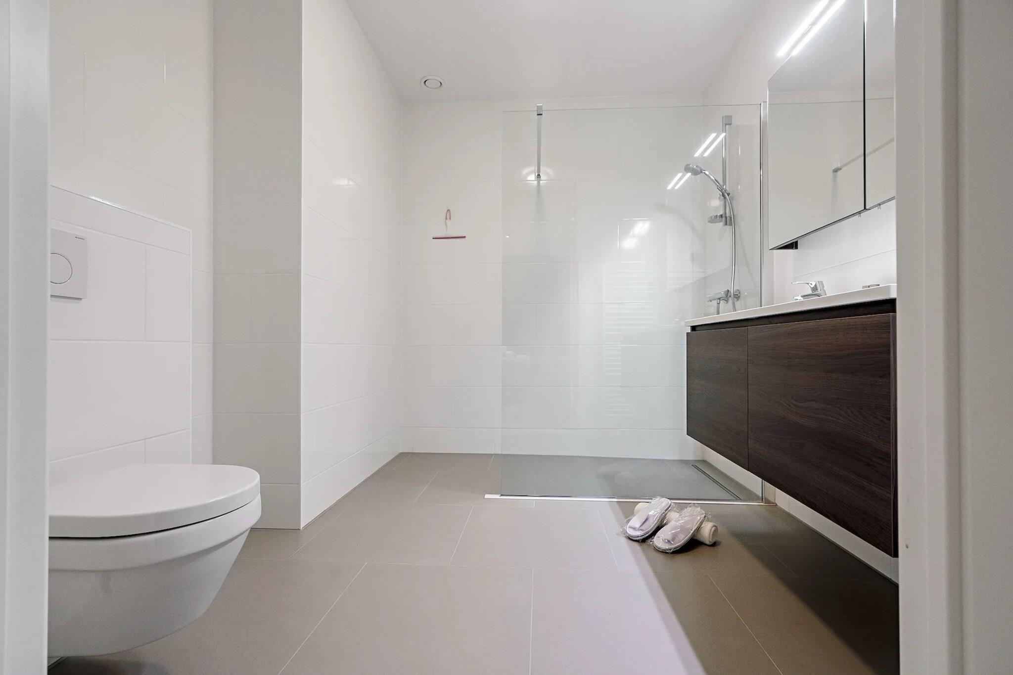 Denne moderne og komfortable leiligheten i Breskens er ideell for et avslappende opphold med familie eller venner. Den romslige stuen har en koselig sittegruppe, en smart-TV for underholdning og et spisebord perfekt for felles måltider. Det åpne kjøkkenet er fullt utstyrt med espressomaskin, stekeovn, oppvaskmaskin, kjøleskap med fryser og alt nødvendig servise og bestikk, noe som sikrer at alt du trenger er lett tilgjengelig. Leiligheten har tre innbydende soverom, hvorav ett med eget bad. De to første soverommene har hver en dobbeltseng, mens det tredje soverommet også inkluderer en dobbeltseng, sammen med dusj, servant og toalett. Det er ekstra bad med dusj, servanter og et separat toalett for å innkvartere gjestene komfortabelt. En vaskemaskin er tilgjengelig for din bekvemmelighet, og leiligheten har både balkong og sykkelbod for de som ønsker å utforske området. Tilleggsfasiliteter inkluderer parkering, heis og ladepost for elbiler. Leiligheten ligger i den sjarmerende byen Breskens, nær stranden, Breskens fyr og lokale sjømatrestauranter. Enten du liker å sykle langs kyststier eller utforske de nærliggende naturreservatene, tilbyr denne leiligheten en perfekt base for å nyte alt Zeeland har å tilby.