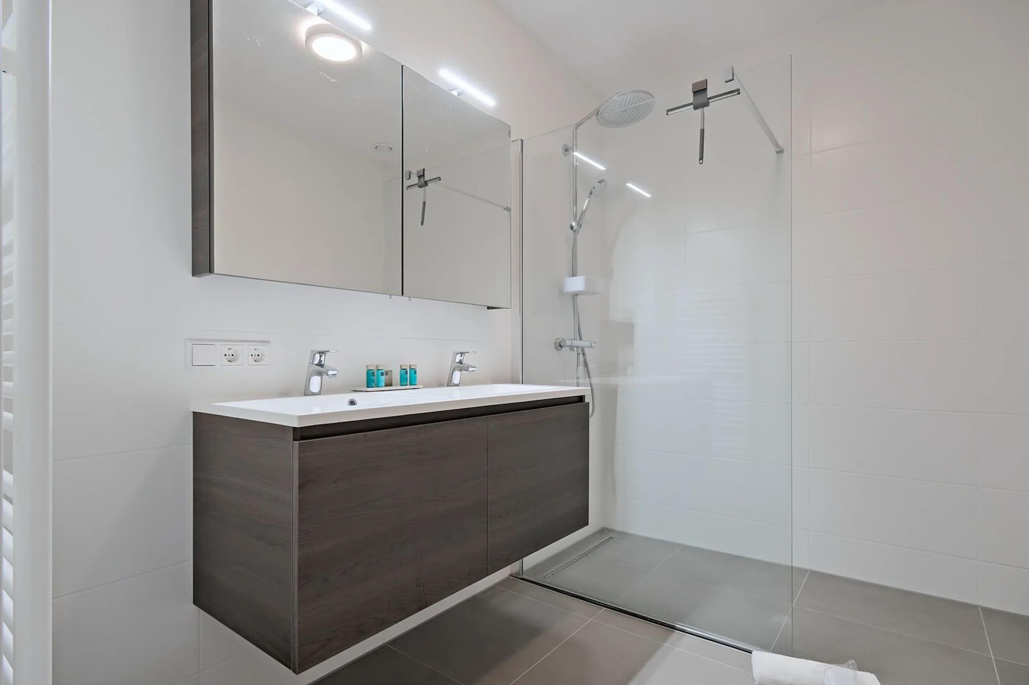 Denne romslige leiligheten i 1. etasje er designet for komfort og bekvemmelighet, noe som gjør den til et utmerket valg for familier eller grupper. Den koselige stuen har en smart-TV for underholdningen din, et spisebord for felles måltider og en komfortabel sittegruppe som er perfekt for å slappe av etter en dag med sightseeing. Det åpne kjøkkenet er fullt utstyrt med kaffemaskin (espresso), stekeovn, oppvaskmaskin, kjøleskap med fryser, og alt nødvendig servise og bestikk, noe som gjør matlagingen til en lek. Leiligheten har tre flotte soverom, inkludert ett med eget bad, komplett med dusj, servant og toalett. Det andre badet, som ligger i gangen, har dusj, servant og toalett for ekstra bekvemmelighet. Enten du nyter en avslappende natt eller gjør deg klar for dagen foran, er disse rommene det perfekte tilfluktsstedet. Andre fasiliteter inkluderer en vaskemaskin, en balkong og sykkelbod for gjester som ønsker å utforske området. Du kan også slappe av med hagemøbler på balkongen eller slappe av på parkeringsplassen. For de med elbil er ladestolpe tilgjengelig. En heis gir enkel tilgang til leiligheten, noe som sikrer et problemfritt opphold for alle gjester.