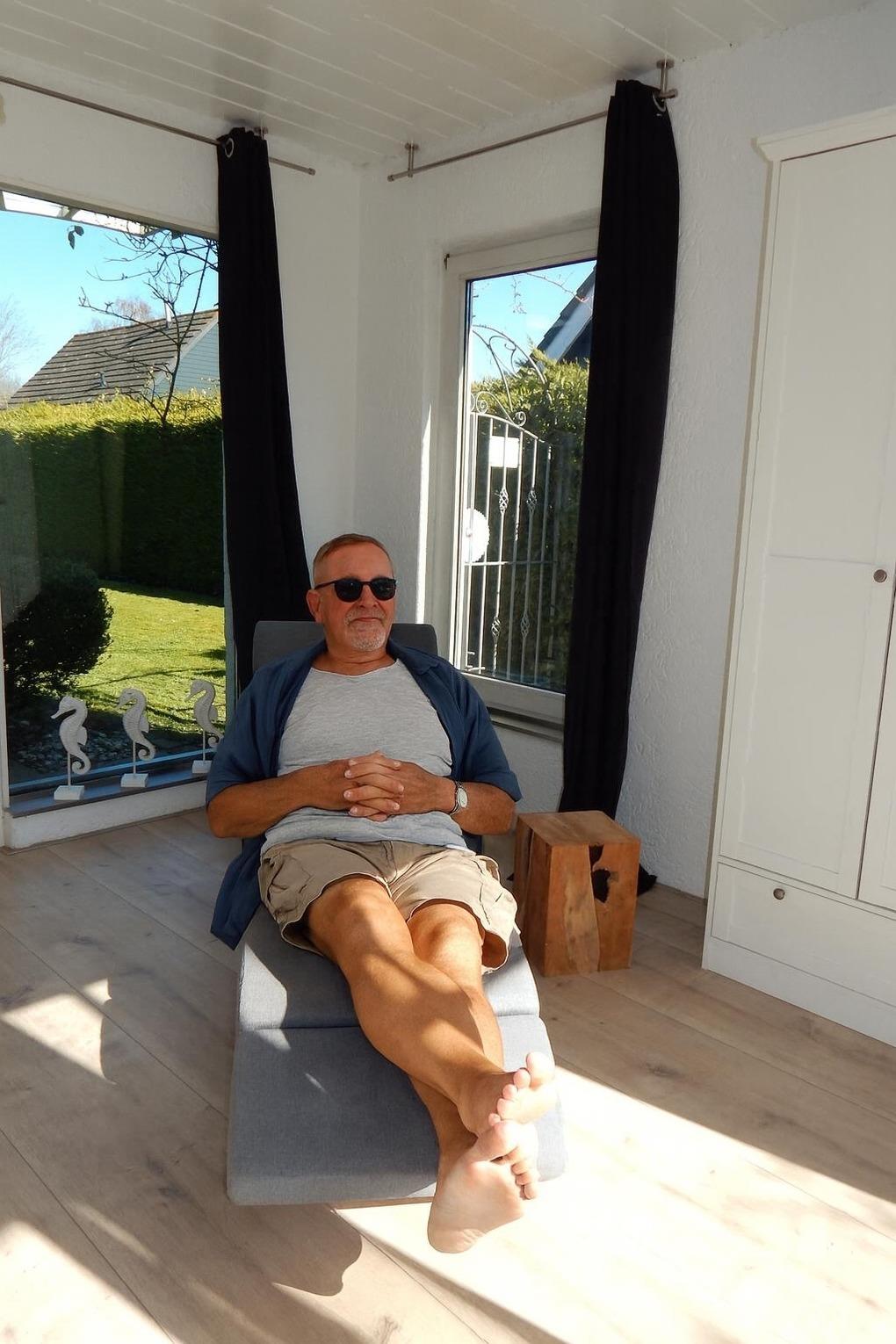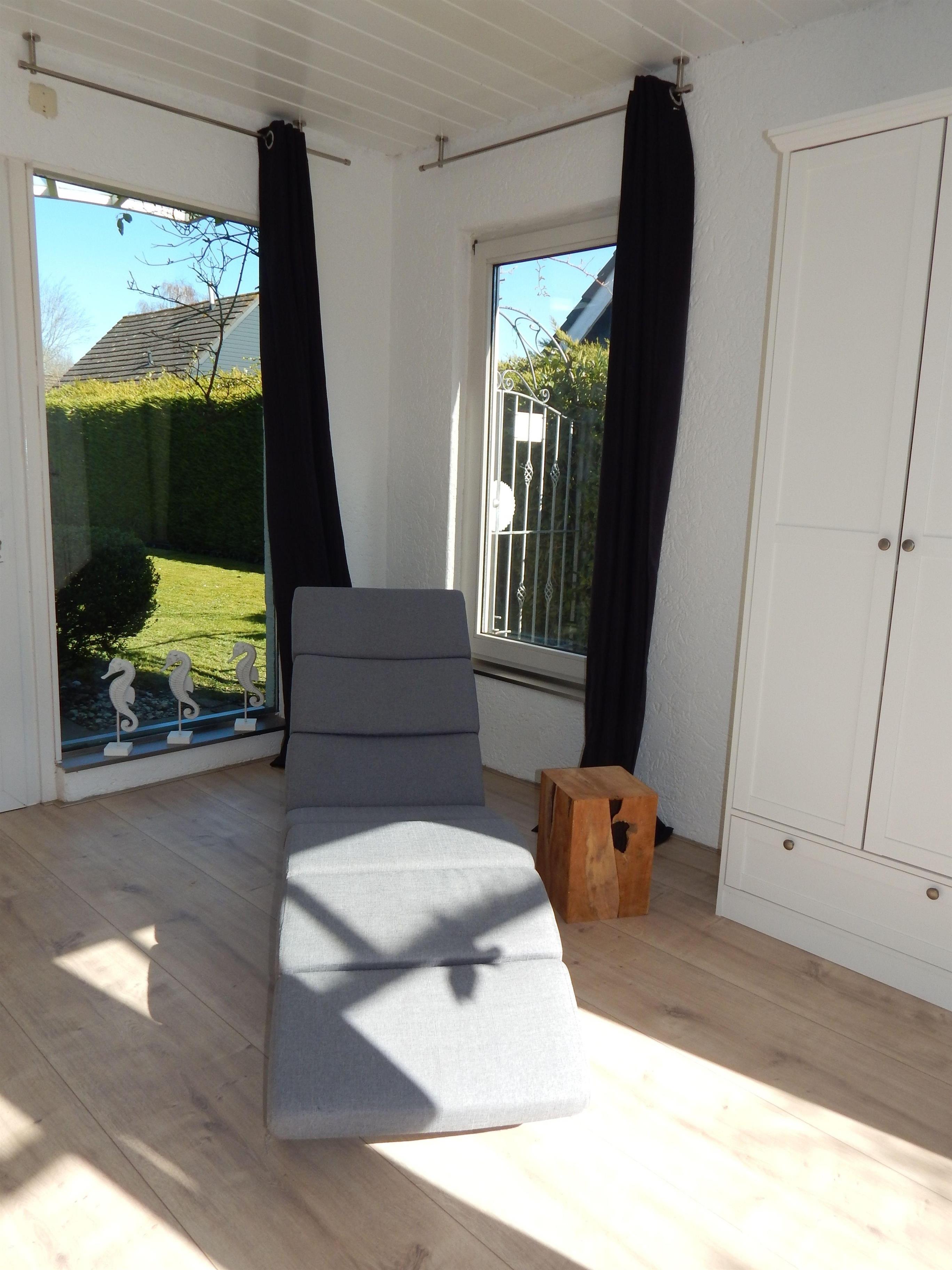 Für besondere Entspannung sorgt der separate Anbau mit Infrarotsauna, Ruhebereich und zusätzlicher Terrasse. Ob Sauna nach einem Strandtag, Kaminfeuer im Winter oder ein Glas Wein mit Blick ins Grüne – hier ist Erholung garantiert.