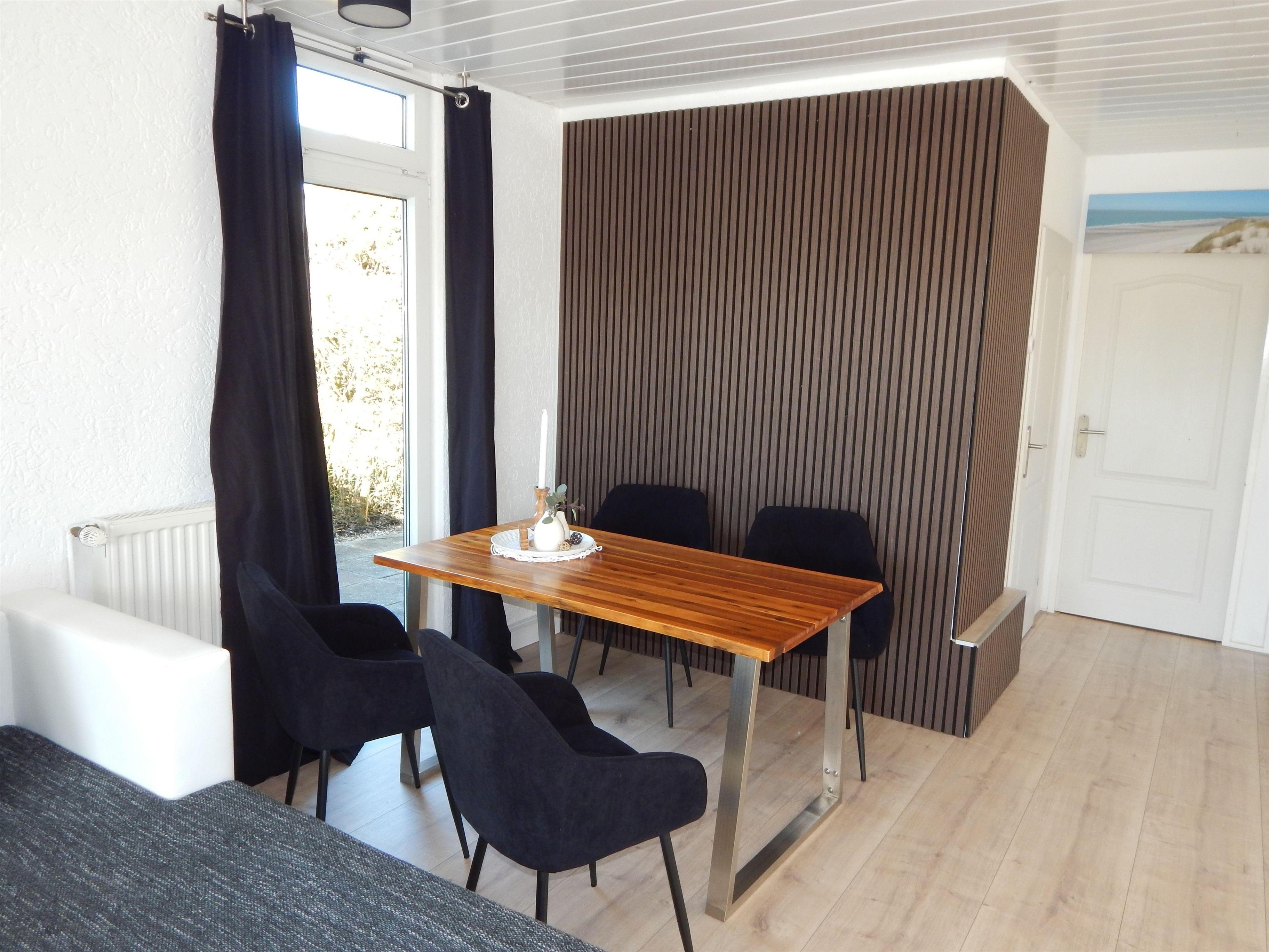 Das Haus bietet Platz für bis zu 4 Personen und überzeugt mit lichtdurchflutetem Eingangsbereich, gemütlichem Wohnzimmer mit Kamin, Essbereich und offener Küche. Zwei Schlafzimmer, ein modernes Duschbad sowie eine große, überdachte Terrasse schaffen viel Raum zum Wohlfühlen.