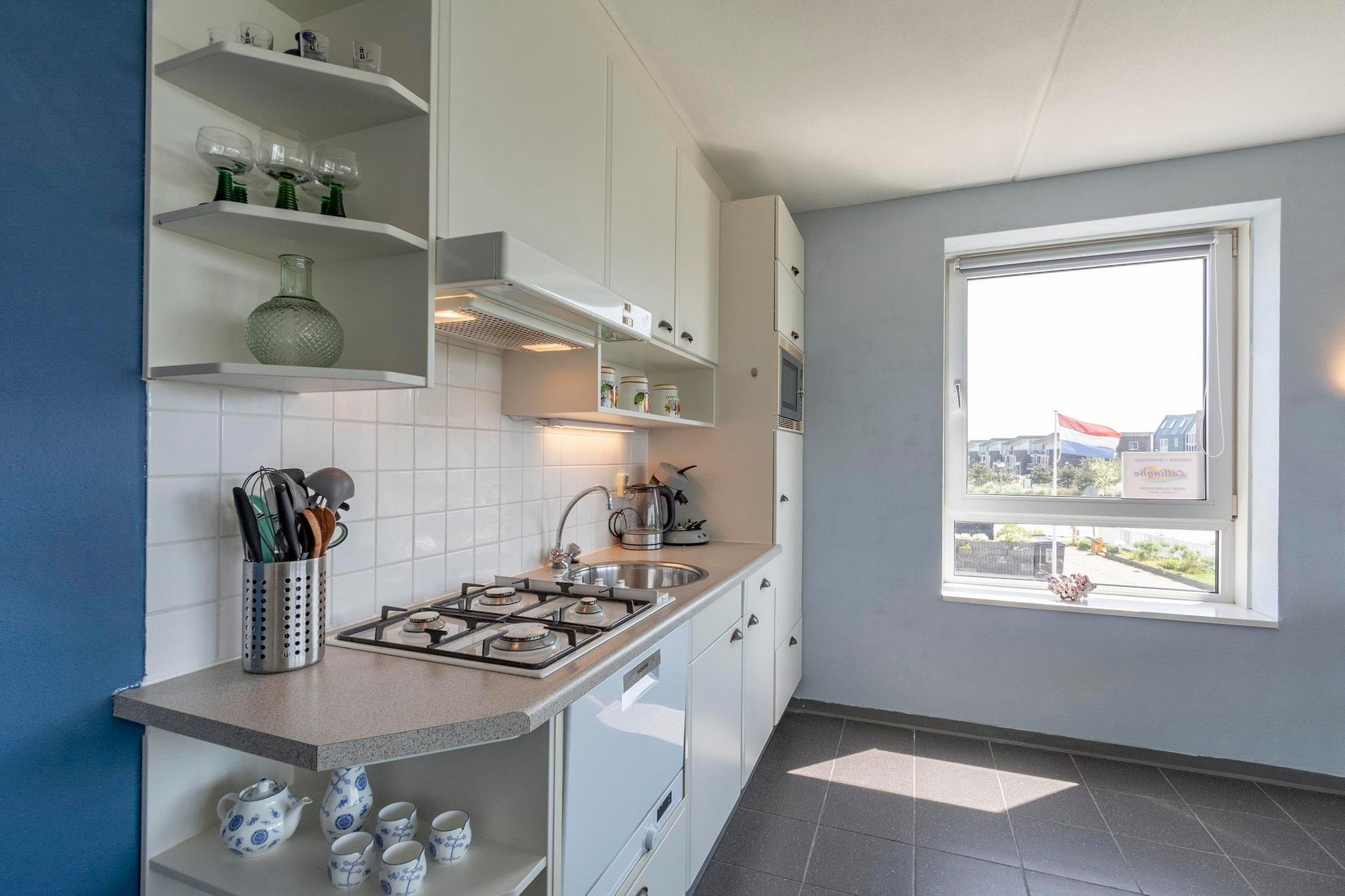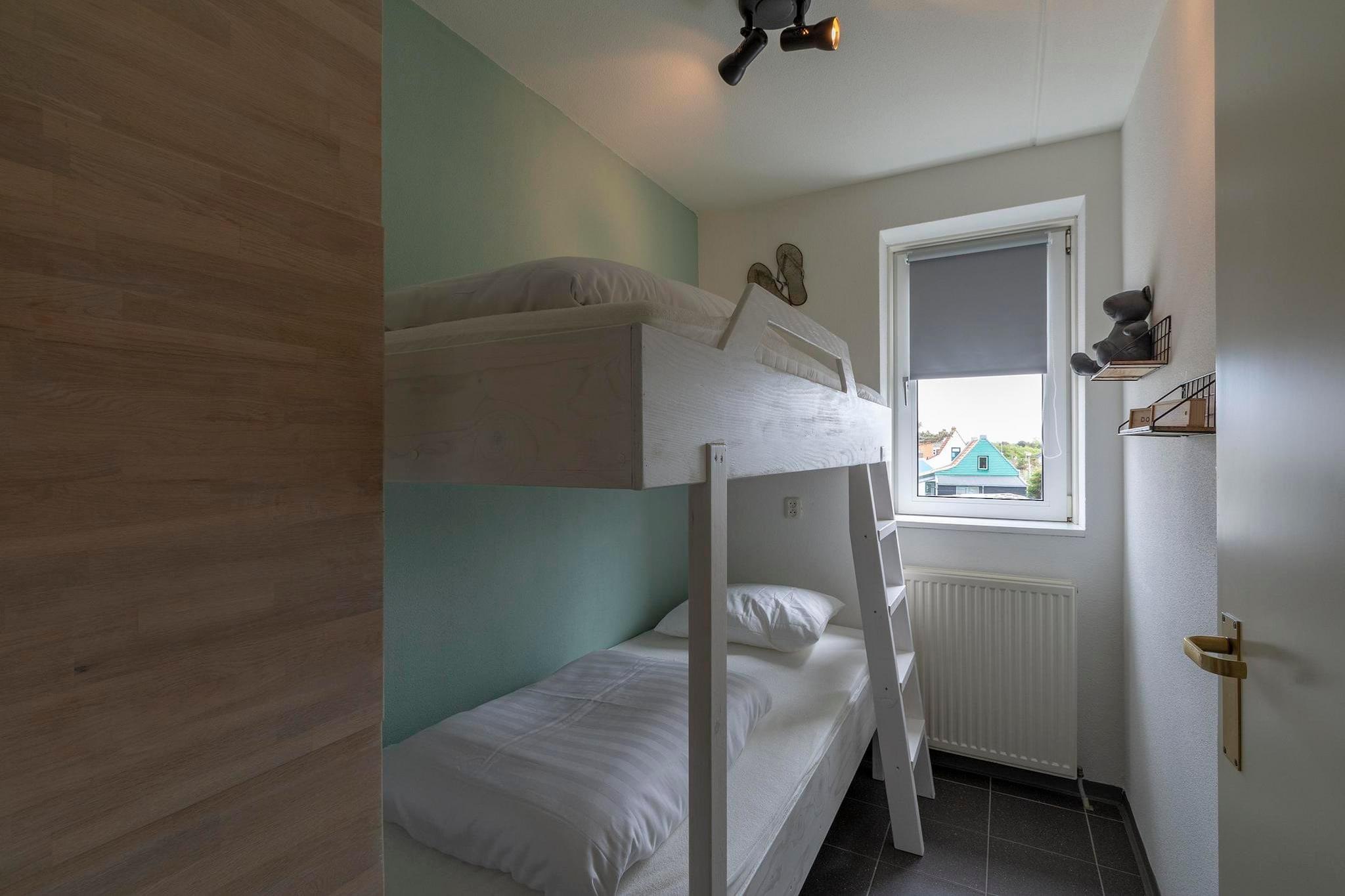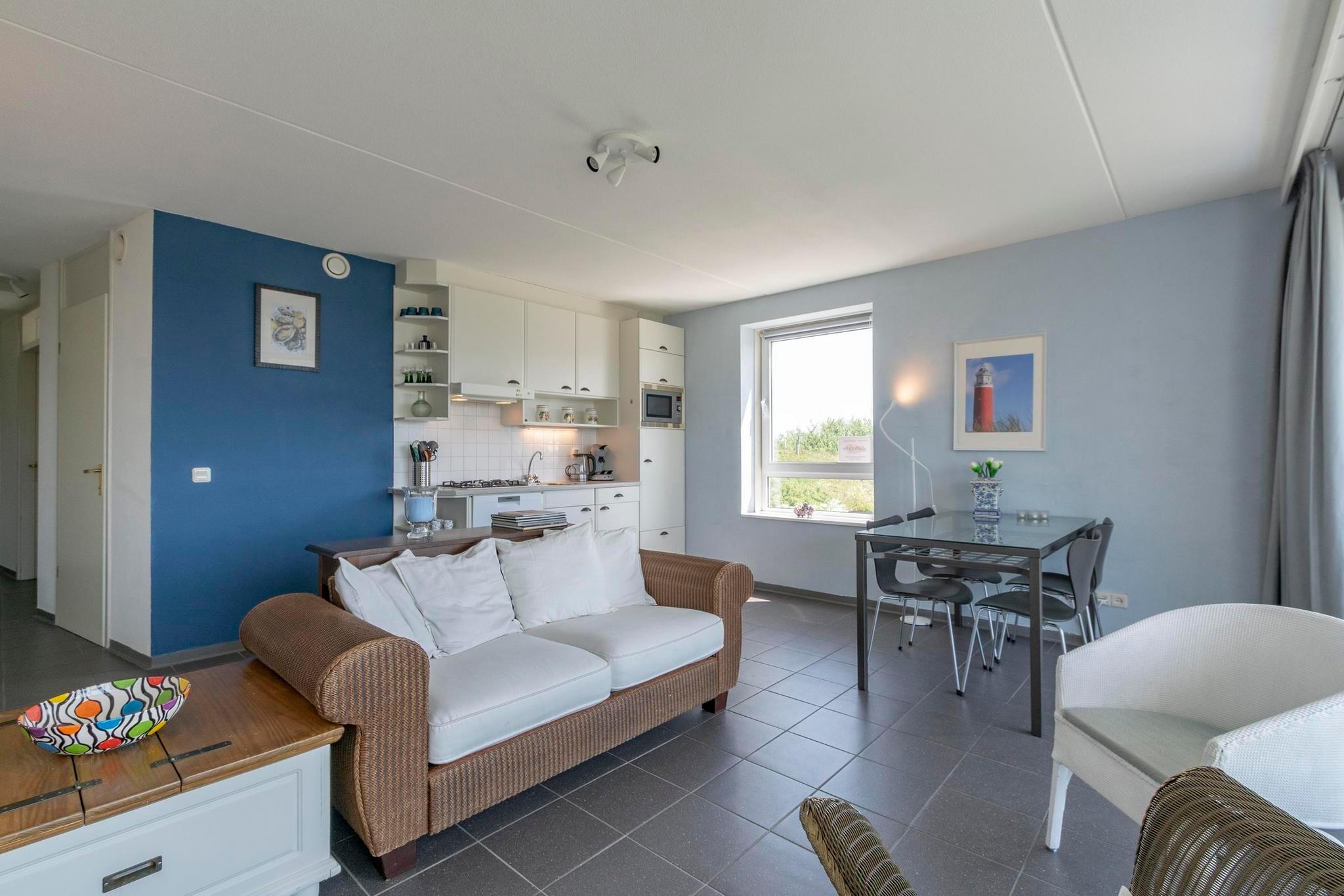 Denne stilige ferieleiligheten ligger i de fredelige sanddynene i Groote Keeten, og tilbyr den perfekte blandingen av moderne komfort og sjarm ved sjøen. Med sine 60 m² plass er den ideell for opptil 4 gjester som søker en avslappende kystferie. Den lyse stuen flyter sømløst ut mot en stor sørvestvendt balkong, hvor du kan slappe av i solen, nyte kveldsdrinker eller bare puste inn den salte sjøluften. Innvendig ligger en koselig spisekrok ved siden av det åpne kjøkkenet, kompakt, men fullt utstyrt for alle dine matlagingsbehov. Leiligheten har to innbydende soverom, ett med dobbeltseng og garderobe, og det andre med en munter køyeseng, noe som gjør den flott for både familier og venner. Et romslig bad sikrer avslapning etter en dag utendørs, mens det separate toalettet gir ekstra bekvemmelighet. Moderne interiør, gjennomtenkt møblert, skaper en varm og innbydende atmosfære, og med sin kjæledyrfrie policy forblir plassen rolig og allergenvennlig. Utenfor leiligheten er beliggenheten et sant høydepunkt. Strandinngangen ligger bare noen skritt unna, og fører til de brede, rolige strendene Groote Keeten er kjent for. I nærheten kan du utforske den livlige landsbyen Callantsoog, sykle langs naturskjønne sanddyner eller besøke Zwanenwater naturreservat for fugletitting og turer. For en smak av lokal kultur ligger den historiske byen Schagen med sine markeder og arrangementer bare en kort kjøretur unna. Enten du kommer for hvile, natur eller eventyr, er dette tilfluktsstedet ved sanddynene din inngangsport til uforglemmelige øyeblikk ved sjøen.