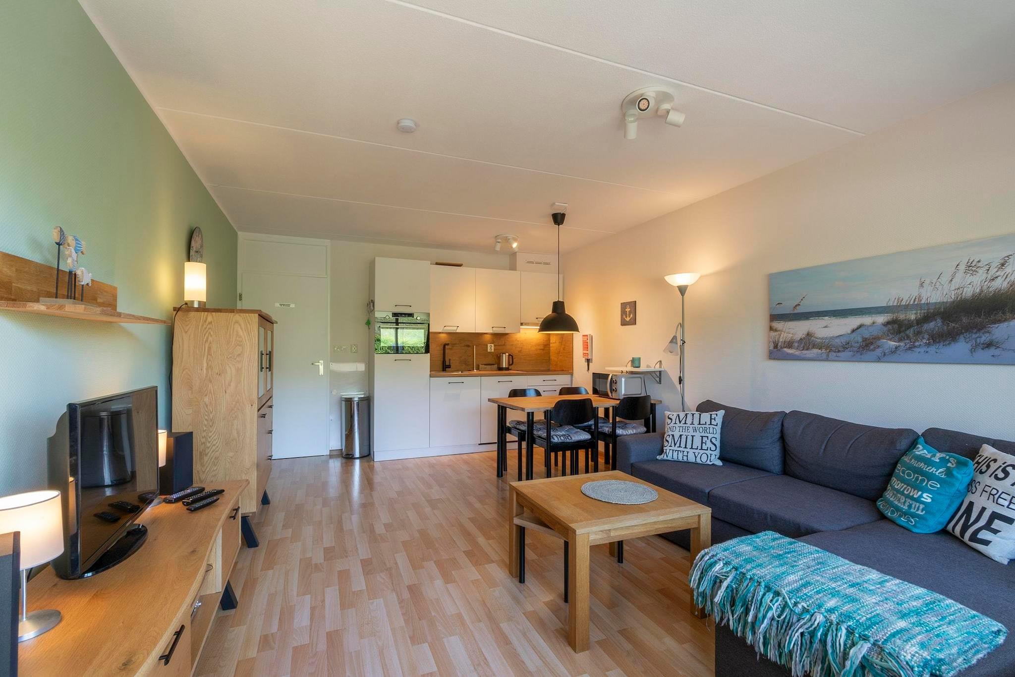 Gå inn i en ferie der sanddynene setter rytmen og havet alltid er nært. Denne leiligheten er et avslappet kysttilfluktssted i Callantsoog, ideelt for par eller små familier som ønsker å være nær stranden uten å ofre komfort. Denne leiligheten ligger rett ved foten av sanddynene, og inviterer deg til å roe ned, puste inn den salte luften og nyte den enkle gleden ved å bo ved sjøen. Innvendig føles leiligheten lys, praktisk og innbydende. Den åpne stuen og spisestuen er designet for enkle ferieøyeblikk, late frokoster, planlegging av stranddager eller avslapning etter en lang spasertur langs kysten. Det åpne kjøkkenet er godt utstyrt med alt som trengs for stressfri matlaging, enten du forbereder en rask lunsj eller en koselig middag hjemme. Komfortable sitteplasser og en TV skaper et hyggelig sted å slappe av når dagen går mot slutten. Soverommet tilbyr et rolig og komfortabelt sted å hvile, mens det pene badet med dusj gir hverdagslig bekvemmelighet. Gå ut på balkongen og nyt morgenkaffen med utsikt mot sanddynene, eller avslutt dagen med et glass vin mens kystbrisen blåser forbi. Denne leiligheten er perfekt for gjester som elsker å være utendørs. Den brede sandstranden ligger bare en kort spasertur unna, og er ideell for bading, soling, lange spaserturer langs kysten eller å fly drager. Syklister og turgåere kan utforske de omkringliggende sanddynene, mens naturelskere vil sette pris på nærliggende reservater og naturskjønne kyststier. Det livlige sentrum av Callantsoog, med sine kafeer, butikker og strandpaviljonger, er nært nok for spontane utflukter, men likevel langt nok unna til å holde atmosfæren fredelig.