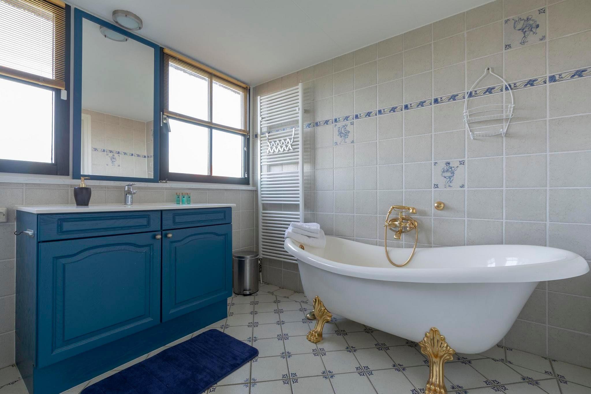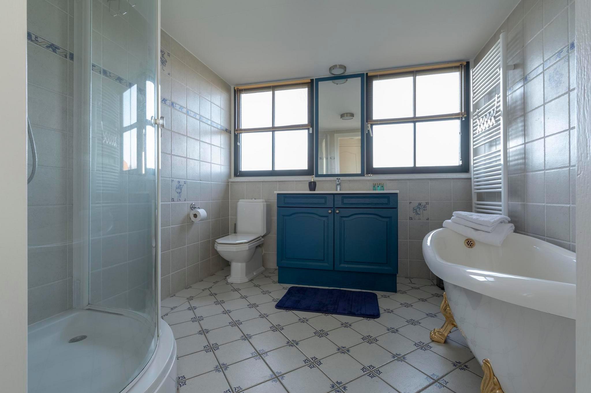 Sjarmerende familieretreat ved sanddynene Sett mot det fantastiske bakteppet av Callantsoog-sanddynene, tilbyr denne vakkert møblerte villaen en perfekt blanding av komfort og stil. Nyt familietid i den koselige stuen med sin varme sittegruppe og dekorative peis, eller gå ut gjennom de franske dørene til en romslig, inngjerdet hage med flere terrasser og en innebygd grill - ideell for lange sommerkvelder. Det fullt utstyrte gamle nederlandske kjøkkenet og spiseplassen gjør måltidet enkelt og innbydende, mens funksjoner som en trappeport og barnestol sørger for et stressfritt opphold for familier med små. Utforsk natur- og kjæledyrvennlige eventyr Denne villaen ligger kun en kort spasertur fra Callantsoogs brede sandstrand, og er perfekt for strandelskere og deres lodne følgesvenner - hunder er velkomne til å bli med på moroa. Naturentusiaster kan utforske det nærliggende Zwanenwater naturreservat, kjent for sine rolige innsjøer, sanddyner og sjeldne fuglearter. Regionen er også rik på sykkel- og turstier gjennom blomstrende løkefelt og kystlandskap, og byr på uendelige utendørsopplevelser rett fra dørstokken din. Lokale smaker og koselig mat Etter en dag med utforsking kan du unne deg lokal mat på Woest, en populær strandrestaurant med en avslappet atmosfære og havutsikt, eller nyt nederlandske favoritter på Grand Café de Foyer. For en uformell matbit er Ijssalon IJsie Prima et must for deilig, hjemmelaget iskrem. Mange spisesteder i Callantsoog tar imot hunder, noe som gjør det enkelt og hyggelig å spise ute for hele familien – inkludert kjæledyret ditt!