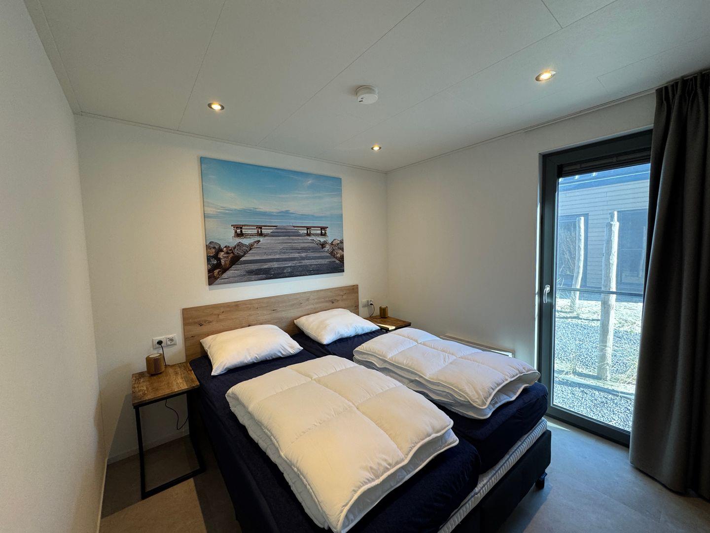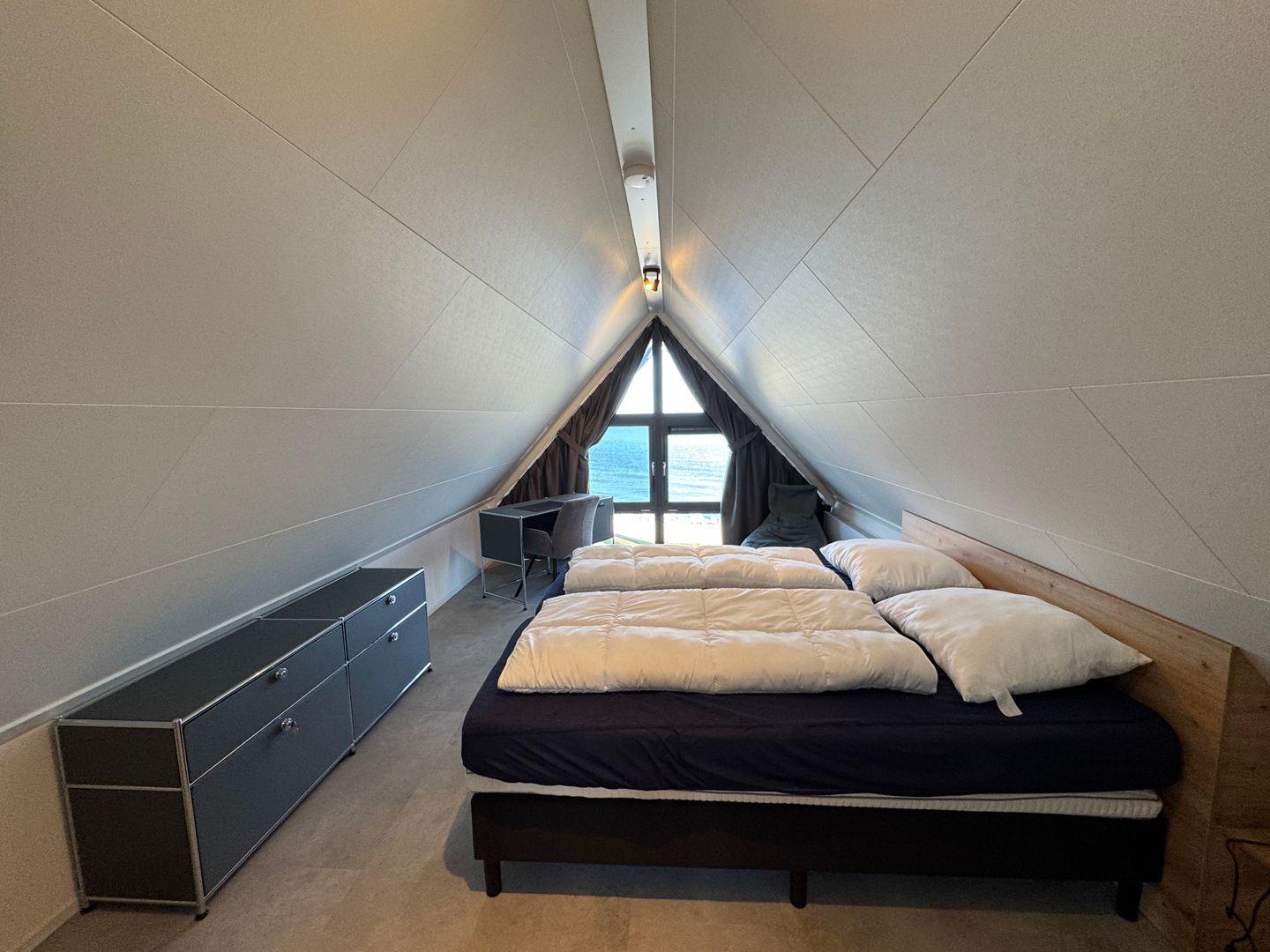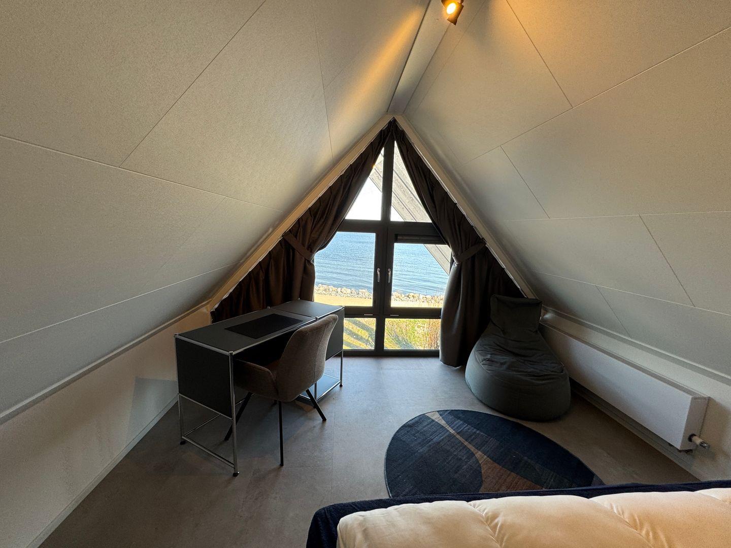 In erster Reihe am IJsselmeer liegt unser neues, modern eingerichtetes Chalet Sky and Sand mit eigenem Parkplatz mit Wallbox und schöner Sonnen-Terrasse. Unser top-modernes Chalet bietet 4 Schlafzimmer, einen offenen Wohn-/Essbereich mit Blick aufs Meer und eine moderne Küche - ideal für Meerliebhaber sowie eine große Familie. Das BeachHouse ist haustierfrei. Highlight ist das Schlafzimmer oben mit Panorama-Ausblick auf's Wasser.