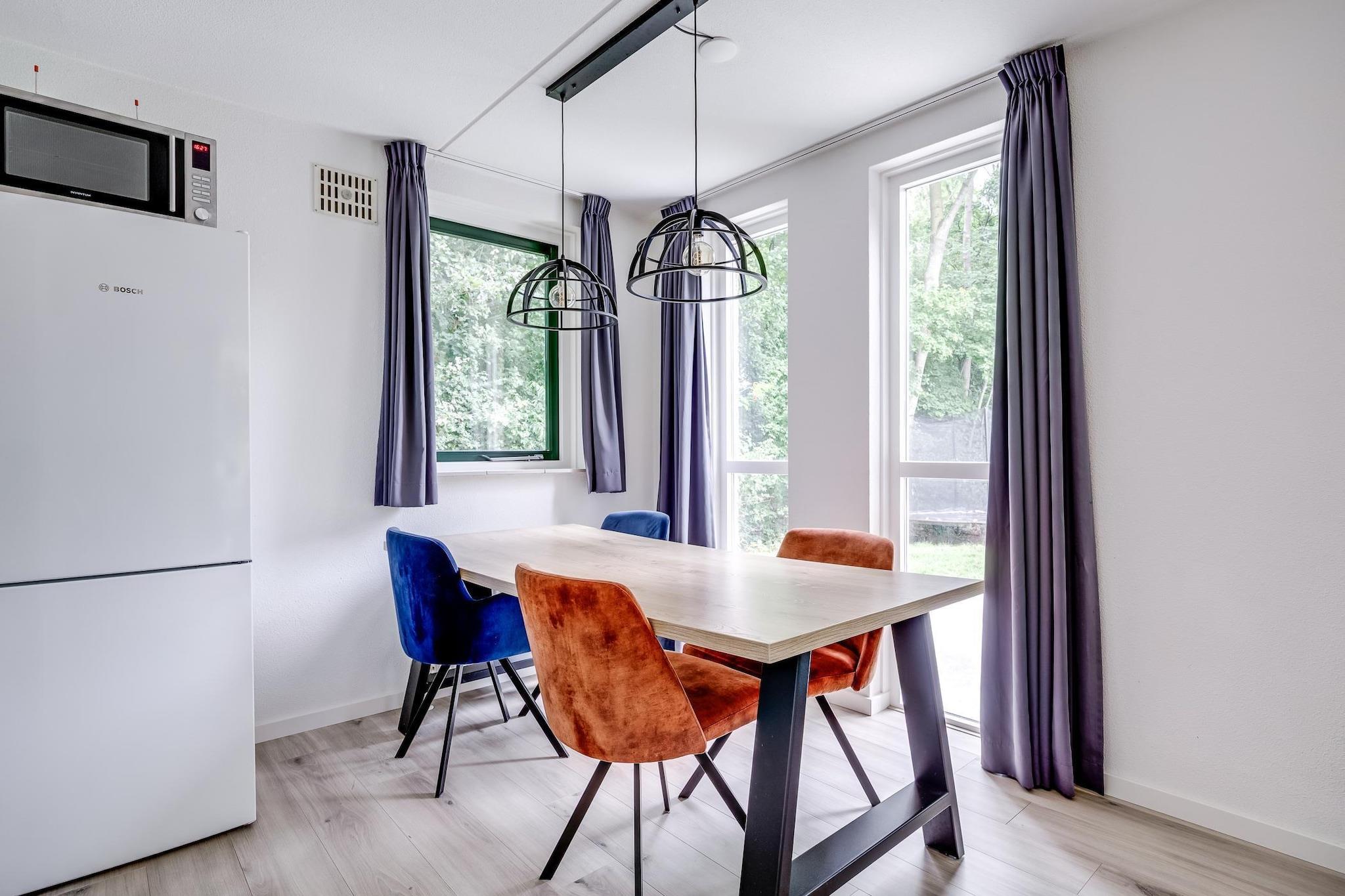 Denne frittliggende bungalowen er omgitt av høye trær og stille stier, og tilbyr en fredelig setting der naturen former oppholdet ditt. De skogkledde omgivelsene skaper en følelse av privatliv, noe som gjør det til et komfortabelt valg for par eller små familier som ønsker å slappe av i et rolig miljø. Innvendig har bungalowen tre soverom med plass til opptil fire gjester. Soveplassen inkluderer enkeltsenger fordelt på rommene, noe som gir en enkel og fleksibel planløsning. Stuen er lys og funksjonell, med sittegruppe og TV som skaper et komfortabelt sted å slappe av. Et fullt utstyrt kjøkken inkluderer hvitevarer som oppvaskmaskin, stekeovn, mikrobølgeovn og kaffemaskin, noe som gjør det enkelt å lage mat. Spisestuen gir mulighet for delte måltider. Eiendommen har også ett bad med dusj, samt praktiske fasiliteter som Wi-Fi og vaskemaskin. Gå ut til en privat hage med en møblert terrasse, som tilbyr et rolig sted å nyte frisk luft eller tilbringe tid utendørs. Det omkringliggende grøntområdet forsterker den rolige atmosfæren, mens parkering på stedet sikrer bekvemmelighet under hele oppholdet. På parken er det mye å gjøre, inkludert en svømmedam, klappedyrpark, en stor lekeplass og et innendørs svømmebasseng. Denne bungalowen ligger i Ewijk, med sykkelstier og byen Nijmegen i nærheten, og tilbyr en komfortabel base for både avslapning og utforsking.