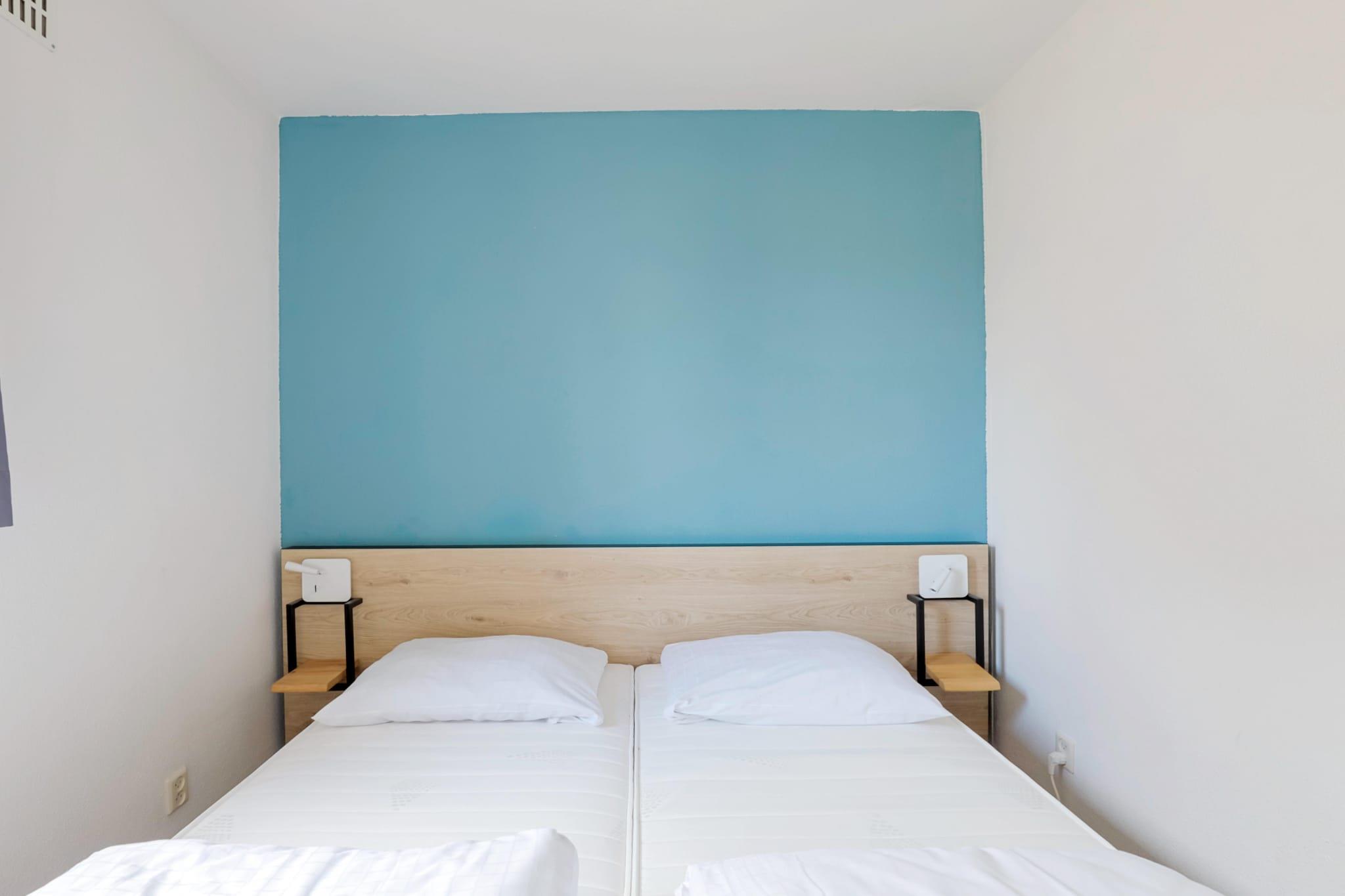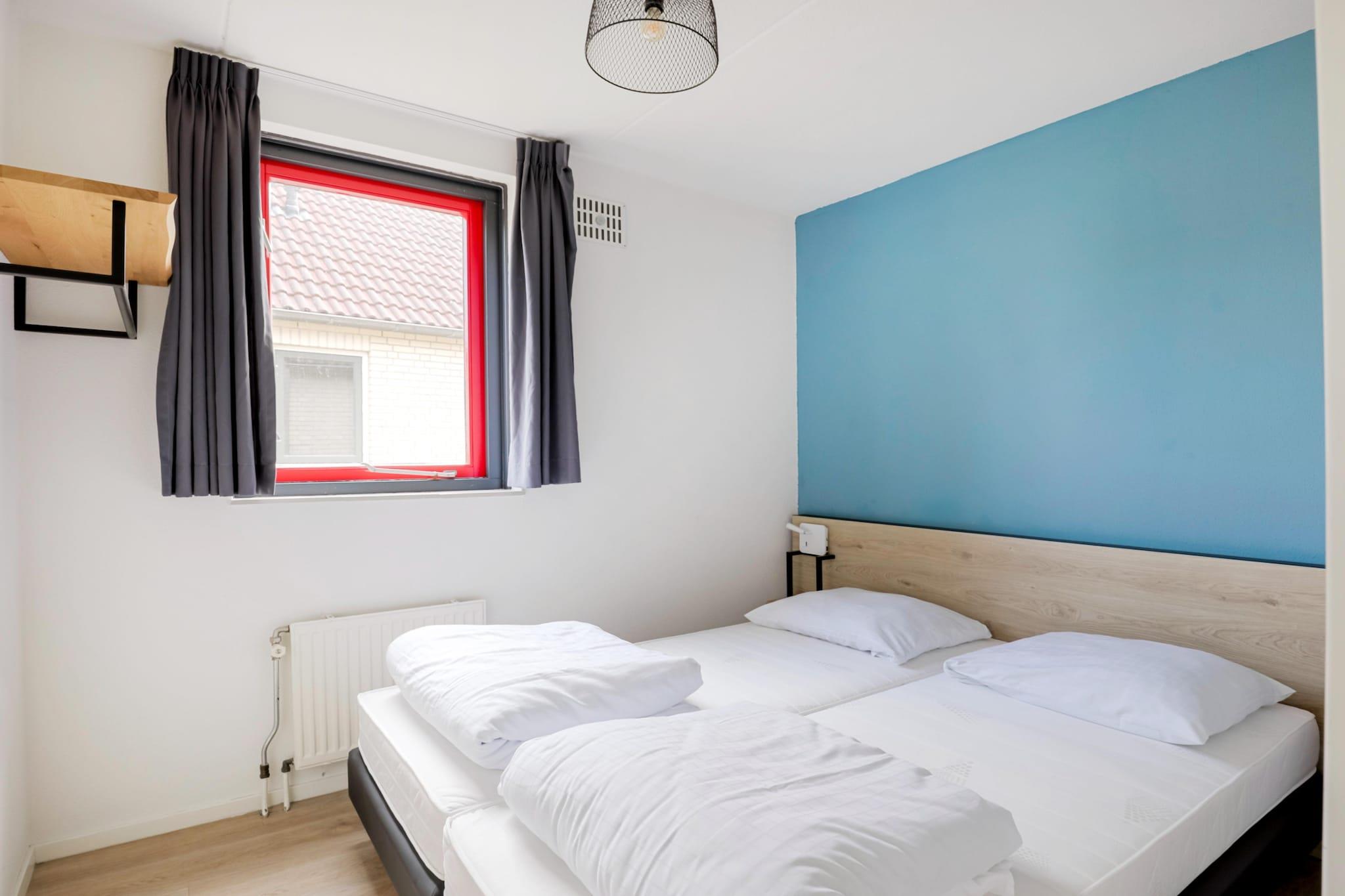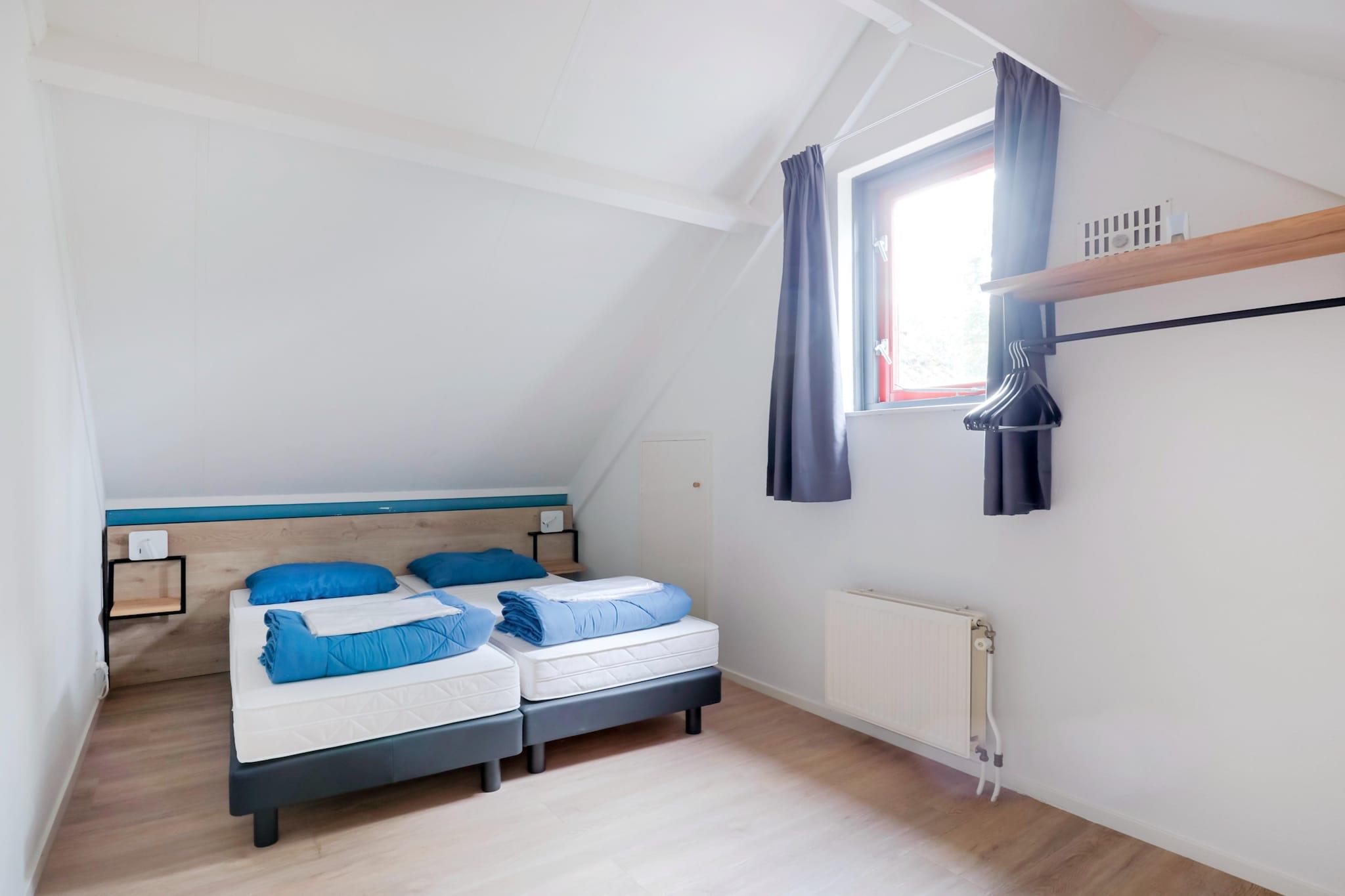 Denne frittliggende bungalowen ligger i et naturskjønt område ved en innsjø, og tilbyr et rolig tilfluktssted med vakker utsikt over vannet og grønne omgivelser. Eiendommen er ideell for familier eller vennegrupper, og tilbyr en fredelig beliggenhet i en velholdt park. Enten du er på jakt etter et utgangspunkt for å utforske den lokale naturen eller et rolig sted for en avslappende ferie, skaper nærheten til vannet en forfriskende atmosfære. Parkens naturlige landskap sikrer et rolig og privat opphold for alle gjester. Interiøret er i én etasje og har plass til seks gjester. Det er tre lyse soverom, hvert med to enkeltsenger. Den åpne stuen har en koselig sittegruppe med TV og et spisebord for felles måltider. Det moderne kjøkkenet er fullt utstyrt med ovn, mikrobølgeovn, oppvaskmaskin og kjøleskap, noe som gjør det enkelt og praktisk å lage mat selv. Eiendommen har også et funksjonelt bad med dusj og toalett, samt viktige fasiliteter som høyhastighets Wi-Fi og sentralvarme for komfort hele året. Bungalowen har en privat, møblert terrasse hvor du kan slappe av og nyte utsikten mot vannet. Hageområdet gir en følelse av tilbaketrukkethet og rom for å nyte friluftslivet. Privat parkering er tilgjengelig rett ved overnattingsstedet, noe som gir enkel tilgang til nærliggende attraksjoner. Utforsk de naturskjønne sykkel- og turstiene i Land van Maas en Waal, eller besøk den nærliggende byen Nijmegen for å oppleve det historiske sentrum, shoppingmuligheter og spisesteder.
