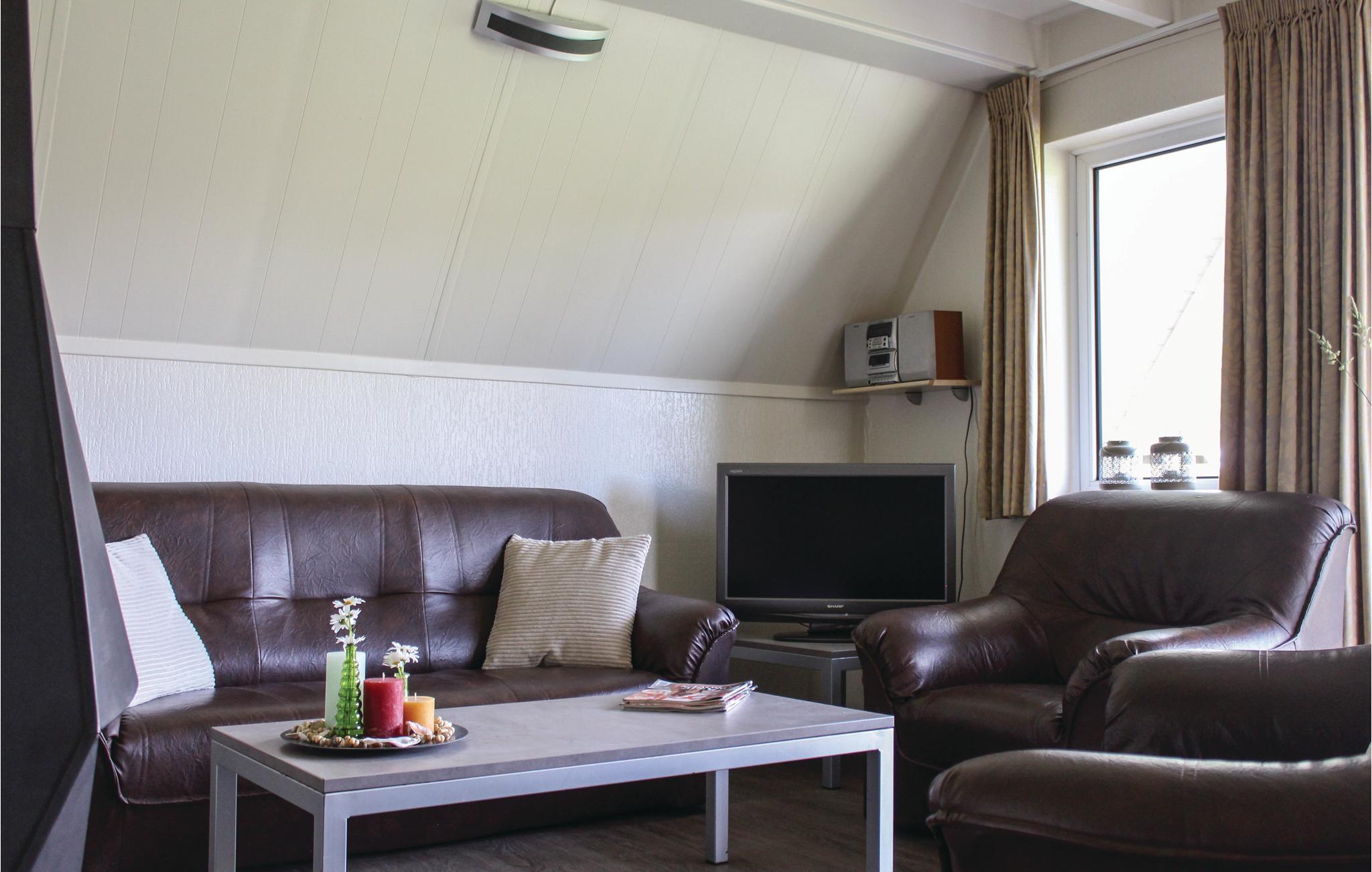 Dette vakkert beliggende feriehuset ligger ved vannet i en innbydende feriepark i Gramsbergen i provinsen Overijssel. I første etasje i dette velholdte feriehuset er det en stue med peis og spisebord, et vakkert åpent kjøkken med blant annet oppvaskmaskin og mikrobølgeovn med stekeovn, et bad med badekar og vask, et soverom og et separat toalett. De to andre soverommene og en balkong ligger i første etasje. Gjennom dørene i stuen kommer du til den delvis overbygde terrassen. Ferieparken i Overijssel et fint reisemål for hele familien og tilbyr mange fasiliteter. Slapp av i innendørsbassenget eller utendørsbassenget. Begge bassengene har et eget barnebasseng. Ferieparken har også en tennisbane, sandvolleyballbane, lekeplass og dyrehage. De selvlysende bowlingbanene og innendørs lekeplassen byr på moro for store og små. Hvis du ikke vil lage mat, kan du spise i restauranten eller snackbaren.