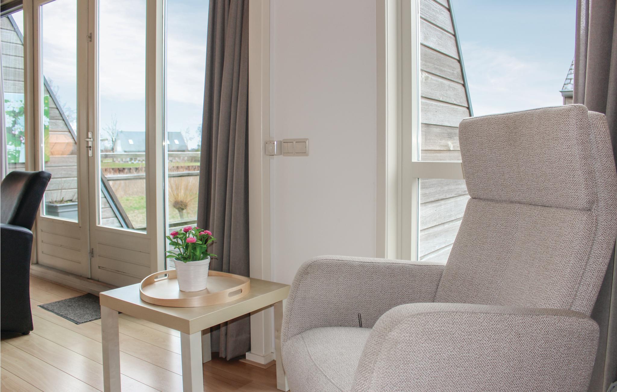 Dette vakre feriehuset i den frisiske Grou har en unik beliggenhet ved vannet. Her kan du oppleve fred og ro og naturens skjønnhet. Utsikten over øya De Burt er som et maleri. Den romslige stuen og det åpne kjøkkenet ligger i første etasje og er det sentrale samlingspunktet for familien. Nyt de stilfulle møblene og samles i stuen for å lage mat og leke sammen. Fra den store treterrassen i første etasje har du en helt spesiell panoramautsikt over Prinses Margriet Kanaal. Det er også en privat hage hvor du kan grille og leke med barna på plenen.