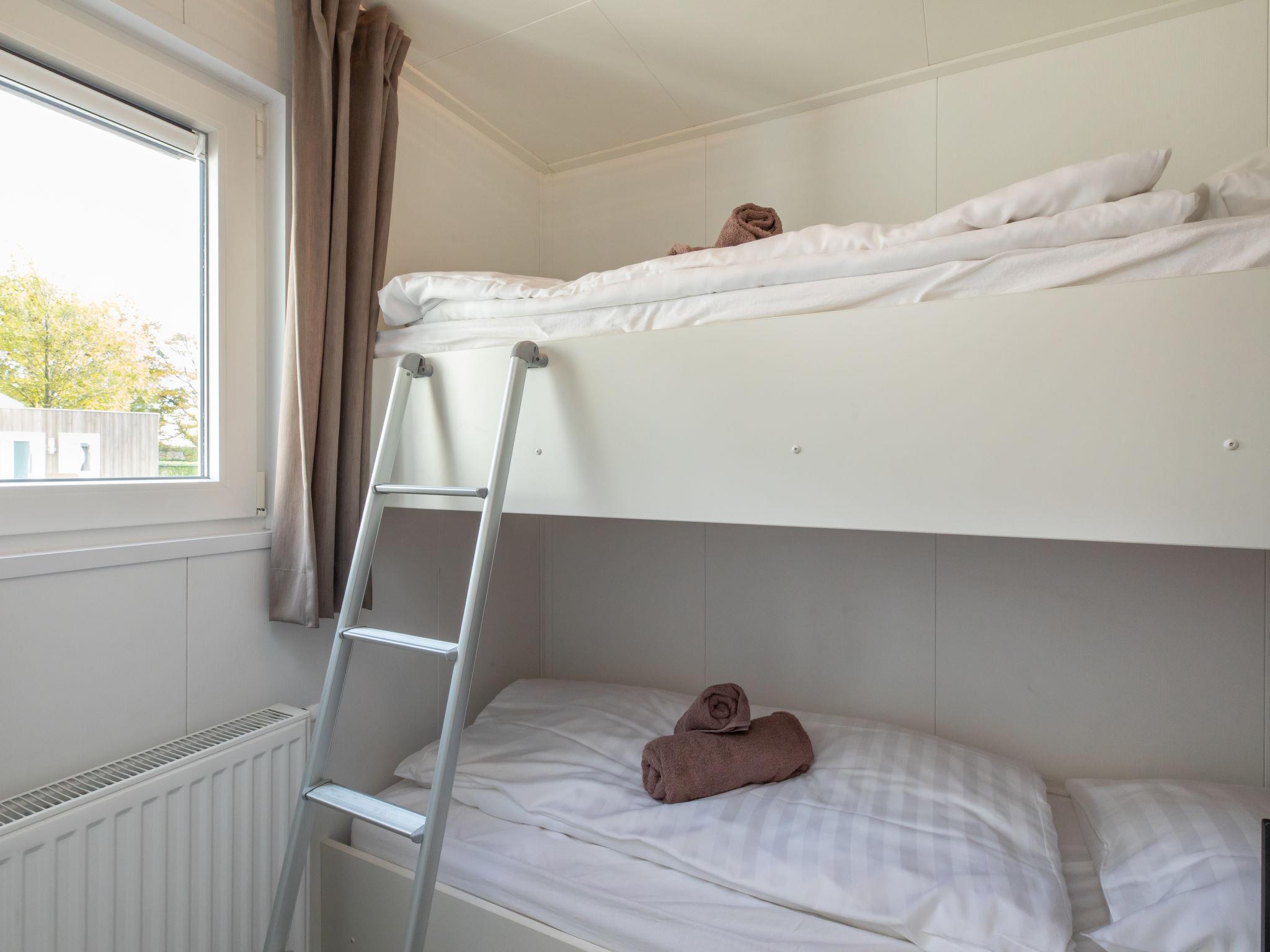 "Hart van Zeeland 1H", 4-room mobile home 53 m2, south facing position. Comfortable and modern furnishings: entrance hall. Living/dining room with sliding door. Exit to the terrace with digital TV and international TV channels. 1 double bedroom with 1 double bed (2 x 80 cm, length 200 cm). 1 room with 2 beds (80 cm, length 200 cm). 1 room with 1 x 2 bunk beds (70 cm, length 190 cm). Open kitchen (dishwasher, 4 gas rings, toaster, kettle, microwave, electric coffee machine). Exit to the terrace. Bathroom, shower/WC. Heating. Terrace furniture, deck chairs (2). View of the garden. Facilities: safe, children's high chair, baby cot, hair dryer. Internet (WiFi, free). Please note: non-smokers only, non-smoking house.