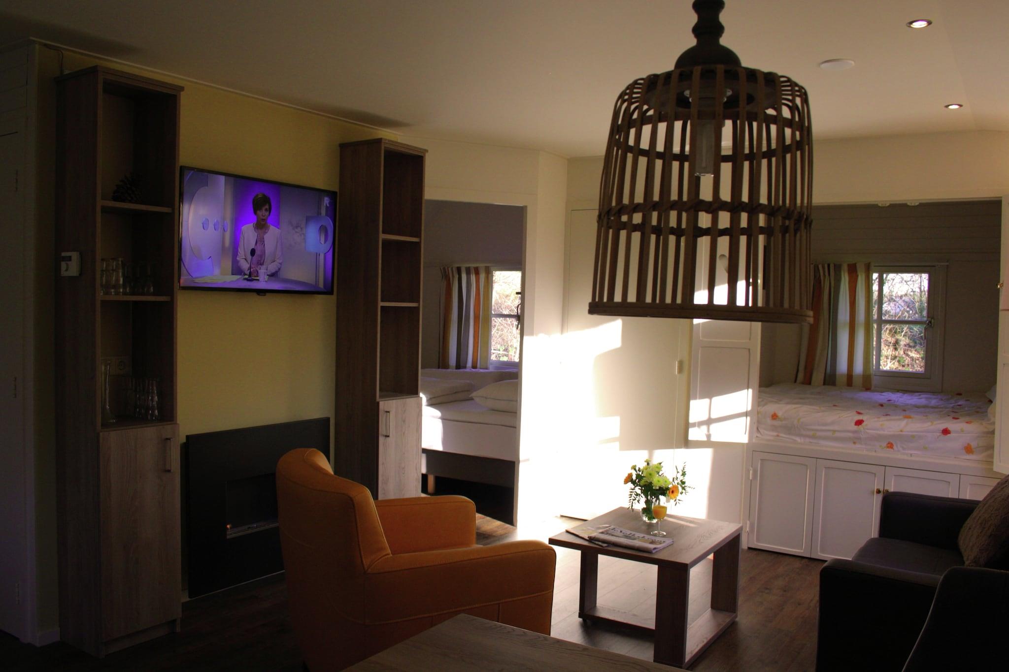 Denne fredelige feriebungalowen ligger bortgjemt i de frodige skogene i Herpen, og tilbyr et sjarmerende tilfluktssted med stråtak for par, familier eller små grupper. Den er gjennomtenkt designet med komfort og enkelhet i tankene, og har et velutstyrt kjøkken, koselig stue med en boksseng og en privat terrasse hvor du kan slappe av med utsikt over hagen. Enten du slapper av innendørs eller nyter en morgenkaffe utendørs, er dette det perfekte stedet å sette ned farten og koble til igjen. Hvert hjem ligger i den rolige Herperduin Holiday Park, og er omgitt av trær, noe som sikrer maksimal privatliv og ro. Enda bedre, kjæledyr er velkomne! Ta med deg de pelskledde vennene dine for lange turer gjennom nærliggende Herperduin-skogstier, la dem plaske ved vannet i de hundevennlige delene av Maashorst naturreservat, eller nyt en matbit på de lokale kaféterrassene som tilbyr vannskåler og hundegodbiter. Dette er en ferie hvor alle i familien, inkludert poter, føler seg hjemme. Bare noen minutter fra parken finner du koselige restauranter og lokale bakerier i Schaijk og Oss, som serverer alt fra nederlandske pannekaker til sesongens viltretter. Etter en dag med turer i naturen eller svømming i det felles bassenget på stedet, kan du dra inn til byen for et solid måltid eller ta det rolig med vin på terrassen din. Enten du er her for natur, rolig eller kulinarisk oppdagelse, tilbyr Herperduin den perfekte basen.
