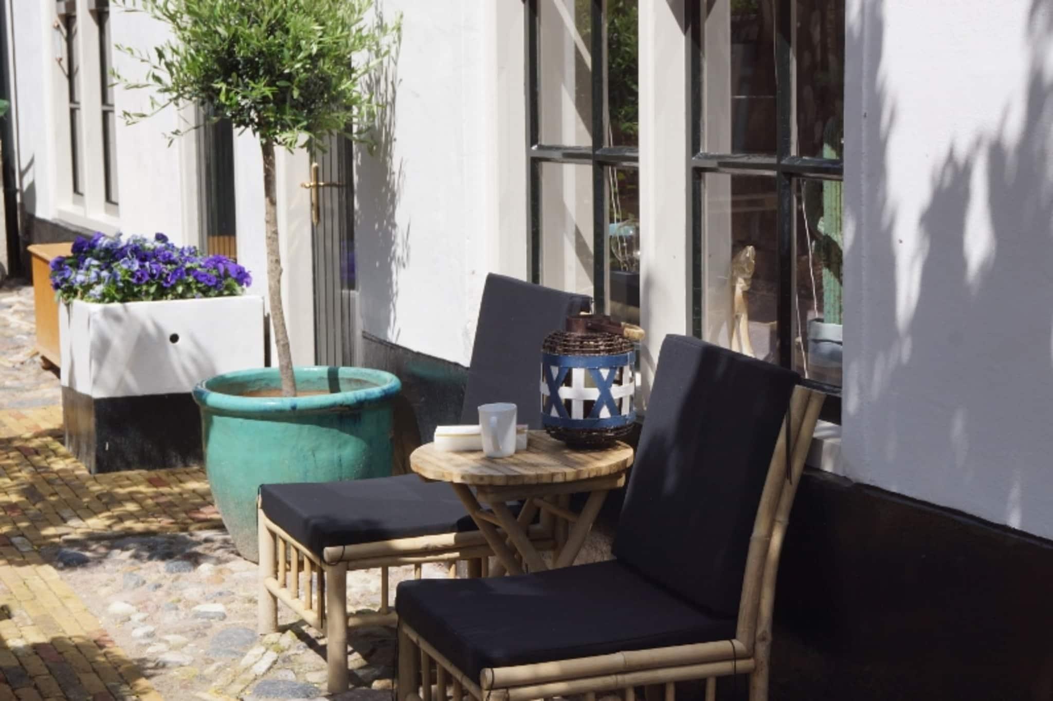 Dette feriehuset i Hindeloopen tilbyr et komfortabelt og rustikt tilfluktssted med moderne innslag. Første etasje har et åpent kjøkken, fullt utstyrt med vannkoker, gasskomfyr, stekeovn, oppvaskmaskin og kjøleskap med fryser. Den innbydende stuen/spisestuen har digital-TV med nederlandske og tyske kanaler, spisebord, en koselig vedovn og komfortable sitteplasser. Det er også et praktisk toalett på dette nivået. Ovenpå finner du to soverom og et bad med dusj, to servanter og toalett. Eiendommen har sentralvarme overalt. Utenfor fører hagedører til en privat, møblert hage med solstoler og grill, perfekt for avslapning utendørs. Sykler kan leies på forespørsel. Hindeloopen er kjent som en av Europas vakreste småbyer, med sjarmerende smale gater, pittoreske smug og naturskjønne broer - ideelt for spaserturer. Du kan ta en forfriskende dukkert i den nærliggende innsjøen, bare 100 meter unna. For friluftsentusiaster er sykling gjennom de fredelige frisiske engene en fantastisk måte å oppleve det lokale landskapet på.