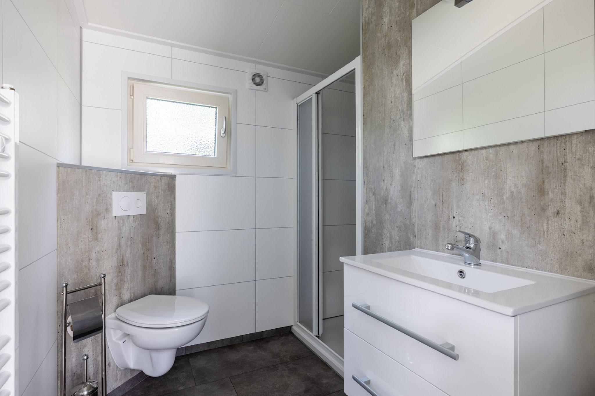 Moderne komfort i naturlige omgivelser Gjemt i en fredelig, skogkledd feriepark i hjertet av Veluwe, tilbyr denne moderne hytta den perfekte blandingen av stil og ro. Store vinduer oversvømmer plassen med naturlig lys og gir utsikt over det omkringliggende grøntområdet. Den moderne designen og smakfulle møblene skaper en varm og innbydende atmosfære for par eller familier som søker en avslappende ferie. Koselig interiør og utendørs lykke Stuen og spisestuen med åpen planløsning har et fullt utstyrt kjøkken, et komfortabelt sittehjørne og en TV for avslappede kvelder. To velutstyrte soverom gir avslappende søvn – velg mellom springfjærsenger eller en koselig køyeseng, avhengig av tilgjengelighet. Gå gjennom hagedørene og du vil finne en romslig terrasse med kvalitetshagemøbler, ideell for å spise under trærne eller nyte solskinnet i privatlivet. Sentralt for attraksjoner og lokal mat Denne hytta ligger bare noen skritt fra parkens hovedfasiliteter, inkludert et oppvarmet utendørsbasseng, og tilbyr enkel tilgang til alt du trenger. Utforsk naturskjønne sykkelstier, besøk den nærliggende De Hoge Veluwe nasjonalpark, eller nyt et måltid på sjarmerende spisesteder i Hoenderloo – lokale favoritter serverer alt fra nederlandske klassikere til håndverkspizza.