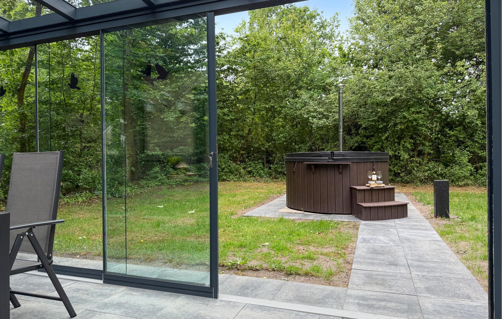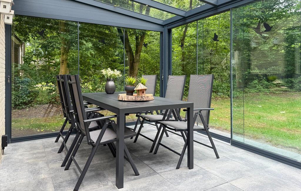 Gå gjennom den store glassdøren og inn i den helglassede vinterhagen, som er et koselig tilfluktssted omgitt av grøntområder når som helst på året. Utnytt den lune atmosfæren til lange måltider eller en kveld med spill. Et boblebad venter på deg på den romslige eiendommen, ideelt for avslappende timer i friluft.