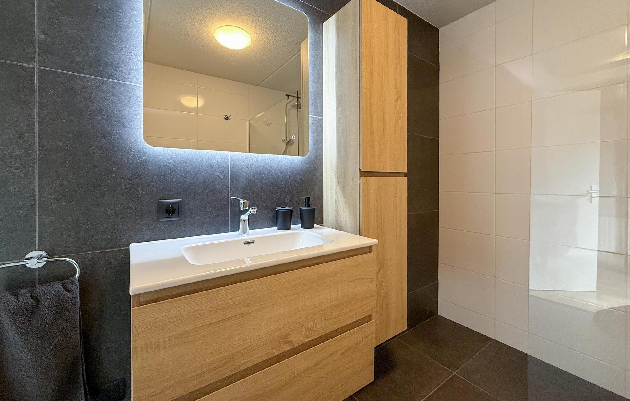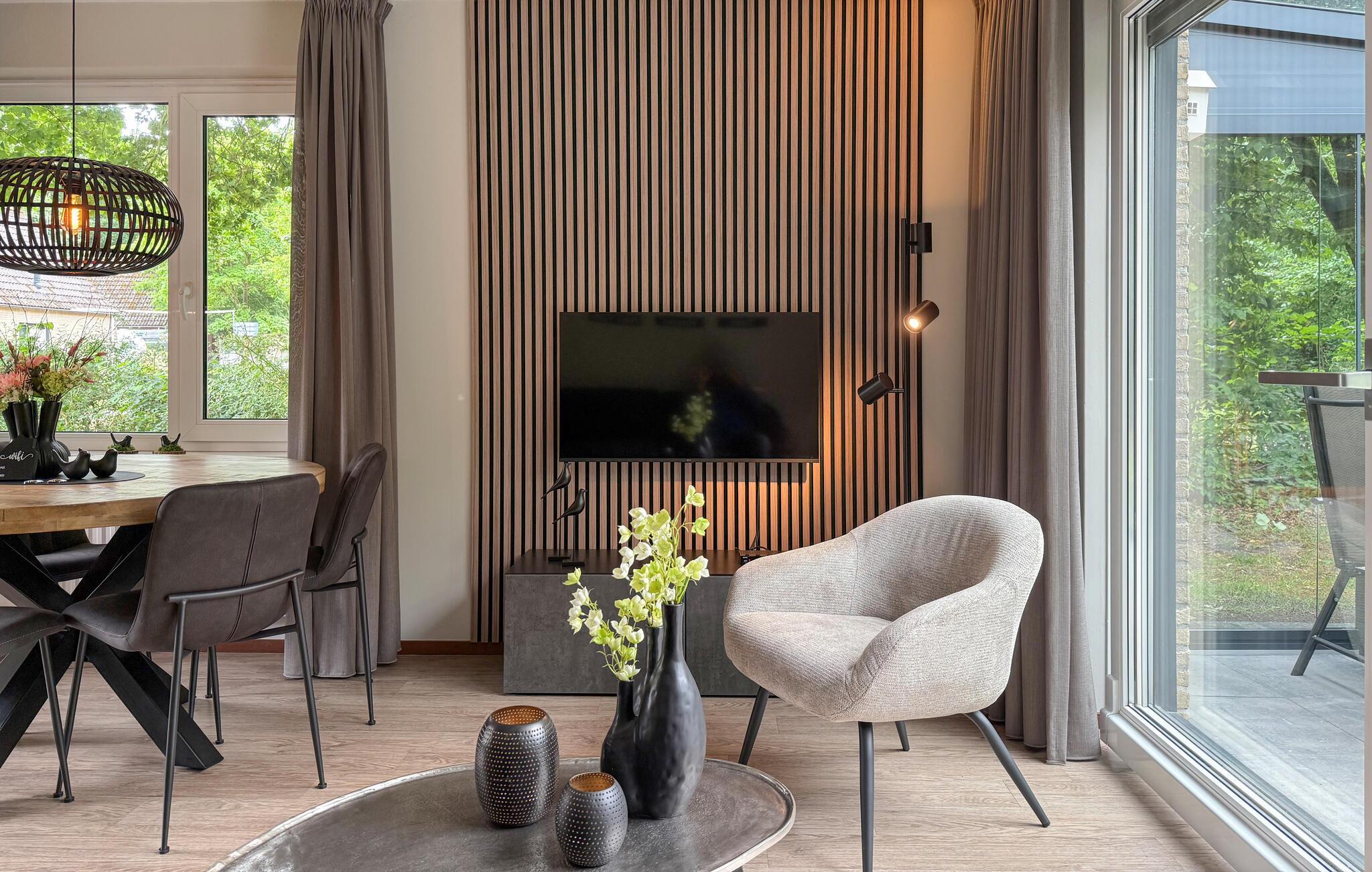 Opplev et avslappende opphold i dette stilfullt innredede feriehuset, som kombinerer komfort og natur på en harmonisk måte. Med sin rolige beliggenhet byr det på de beste forutsetninger for en ferie med hele familien. Føl deg som hjemme i den koselige stuen, som imponerer med sine varme farger og smakfulle detaljer. Nyt måltidene sammen ved spisebordet, eller avslutt dagen med en film i den komfortable sofaen. Det moderne kjøkkenet gjør at du kan lage mat til deg selv fra frokost til middag.