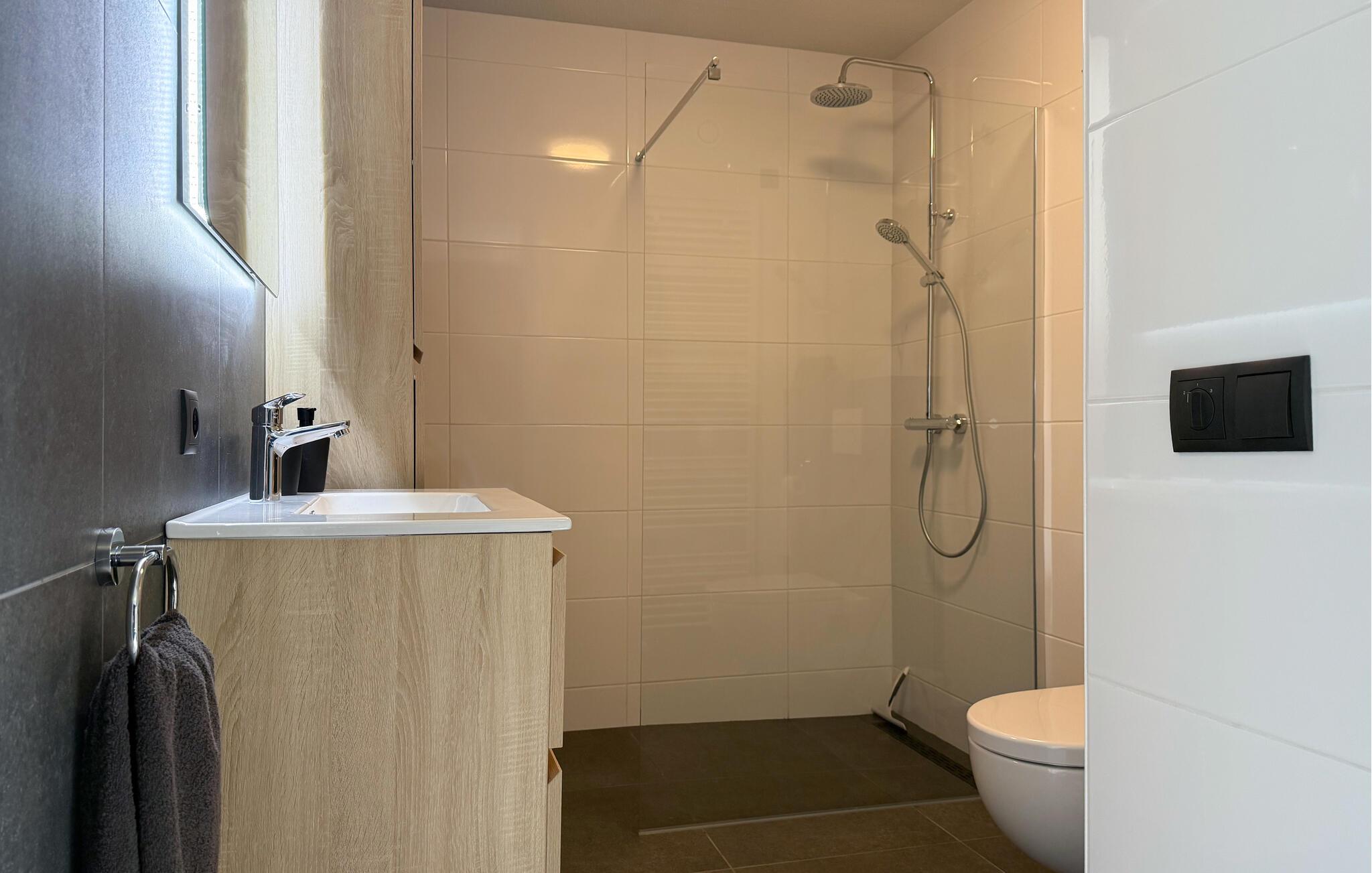 - WC med varmt og kaldt vann, Dusj