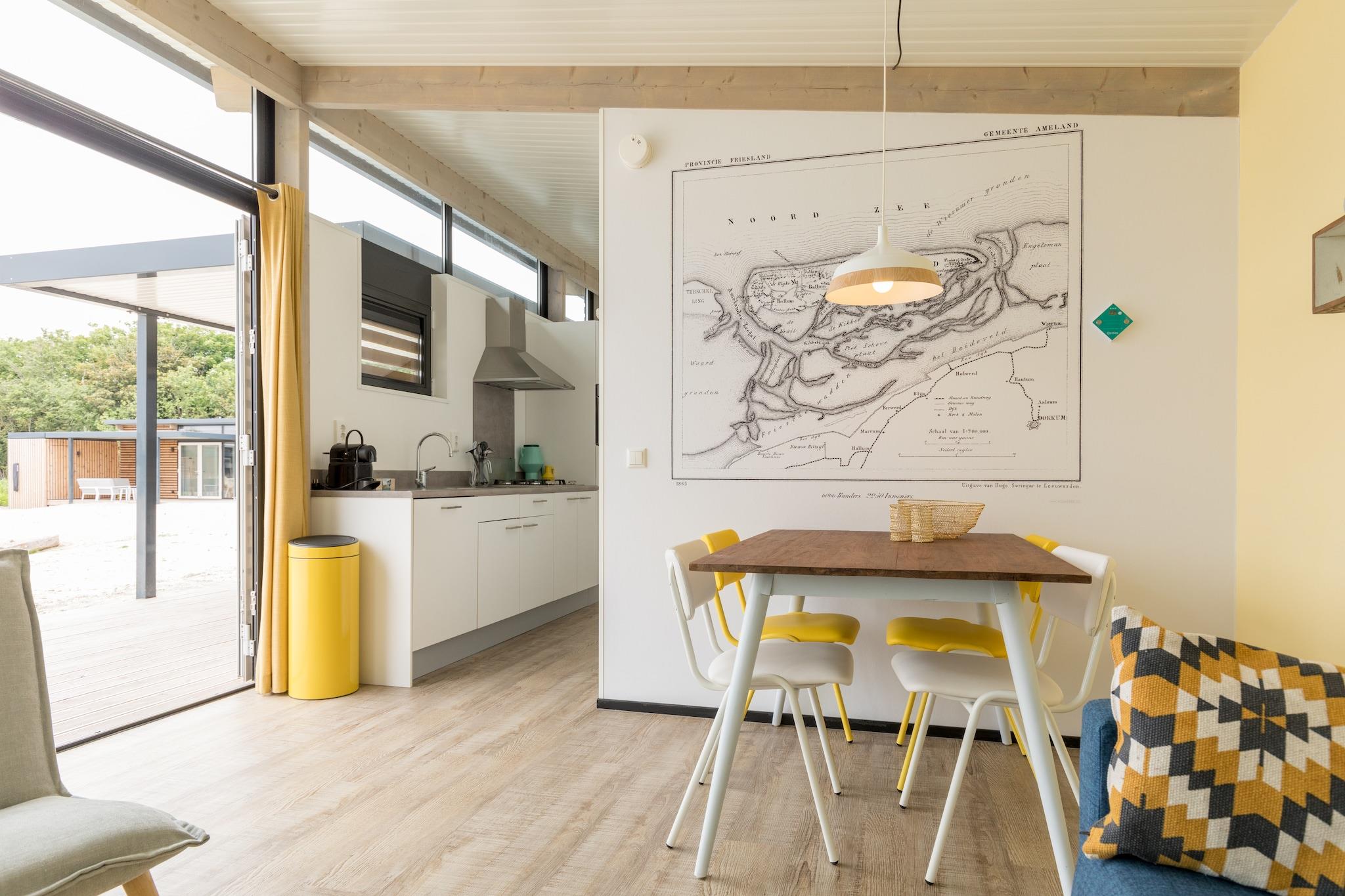Stilig Sea Lodge Escape i naturskjønne Ameland Velkommen til ditt moderne øyferiested! Denne elegante Sea Lodge kombinerer moderne arkitektur med kystens sjarm, og tilbyr et koselig og solfylt interiør med høye vinduer og gulvvarme overalt. Med to rolige soverom, et fullt utstyrt kjøkken og en privat veranda med hengekøye og salongmøbler, er dette det perfekte stedet å slappe av etter en strandtur eller sykkeltur. Sengene er redd opp ved ankomst, og hver lodge har Smart-TV, oppvaskmaskin og Nespresso-maskin – komfort møter bekvemmelighet! Dyrevennlig paradis ved sanddynene Ta med din firbeinte venn – hunder er hjertelig velkomne (maks. 1 per lodge)! I nærheten kan du nyte naturskjønne strandturer, båndfrie soner ved Ballumerbocht eller utforske Hollumerbos skog med dyrevennlige stier og lekeområder. Mange lokale kafeer på Ameland ønsker også hunder velkommen på uteserveringene, noe som gjør det enkelt å spise ute sammen etter en dag med utforsking av naturens skjønnhet. Ideell beliggenhet nær Hollum og lokale spisesteder Ligger i fredelige Hollum, bare en kort spasertur fra stranden og det sjarmerende sentrum. Oppdag koselige spisesteder som Pannenkoekhuis Onder de Vuurtoren eller sjømatdelikatesser på Cantina Dolores. Enten det er en romantisk ferie eller en familieutflukt, tilbyr denne hytta alt for en minneverdig øyferie.