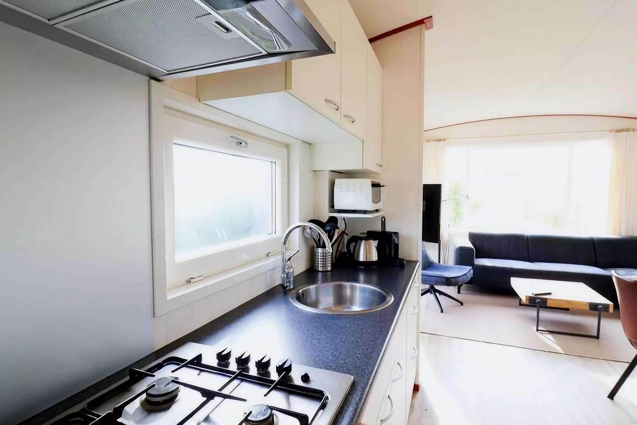 Med familien kan du komfortabelt nyte en uforglemmelig ferie i denne sanddynehytta. Den har en fin beliggenhet mellom golfbanen, sanddyneområdet og havet, og det er også kort vei til lekeplassen. Hollum er en landsby på øya Ameland; et populært turistmål kjent for sitt pittoreske landskap, brede sandstrender (gangavstand fra huset) og sjarmerende atmosfære. Du kan nyte gåturer, sykle (leie i parken) og bade i det nærliggende havet. En av hovedattraksjonene i landsbyen er fyret. Dette er det eldste fyret i landet som fortsatt er i bruk. Øya er også kjent for sitt brede utvalg av fuglearter, noe som gjør den også populær blant fuglekikkere.Den koselige oppholdsrommet byr på en lys sittegruppe, en hagedør til terrassen og en spiseplass med et velutstyrt åpent kjøkken. På et av soverommene er det en ekstra feltseng (ta med eget sengetøy) som kan flyttes ved behov. Alle soveplasser er utstyrt med en enkelt dyne og pute. På badet finner du dusj, toalett og servant.