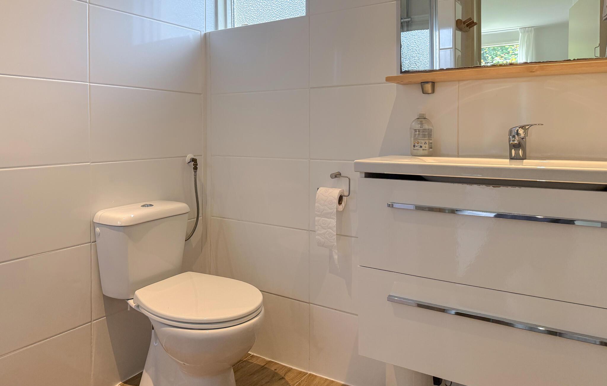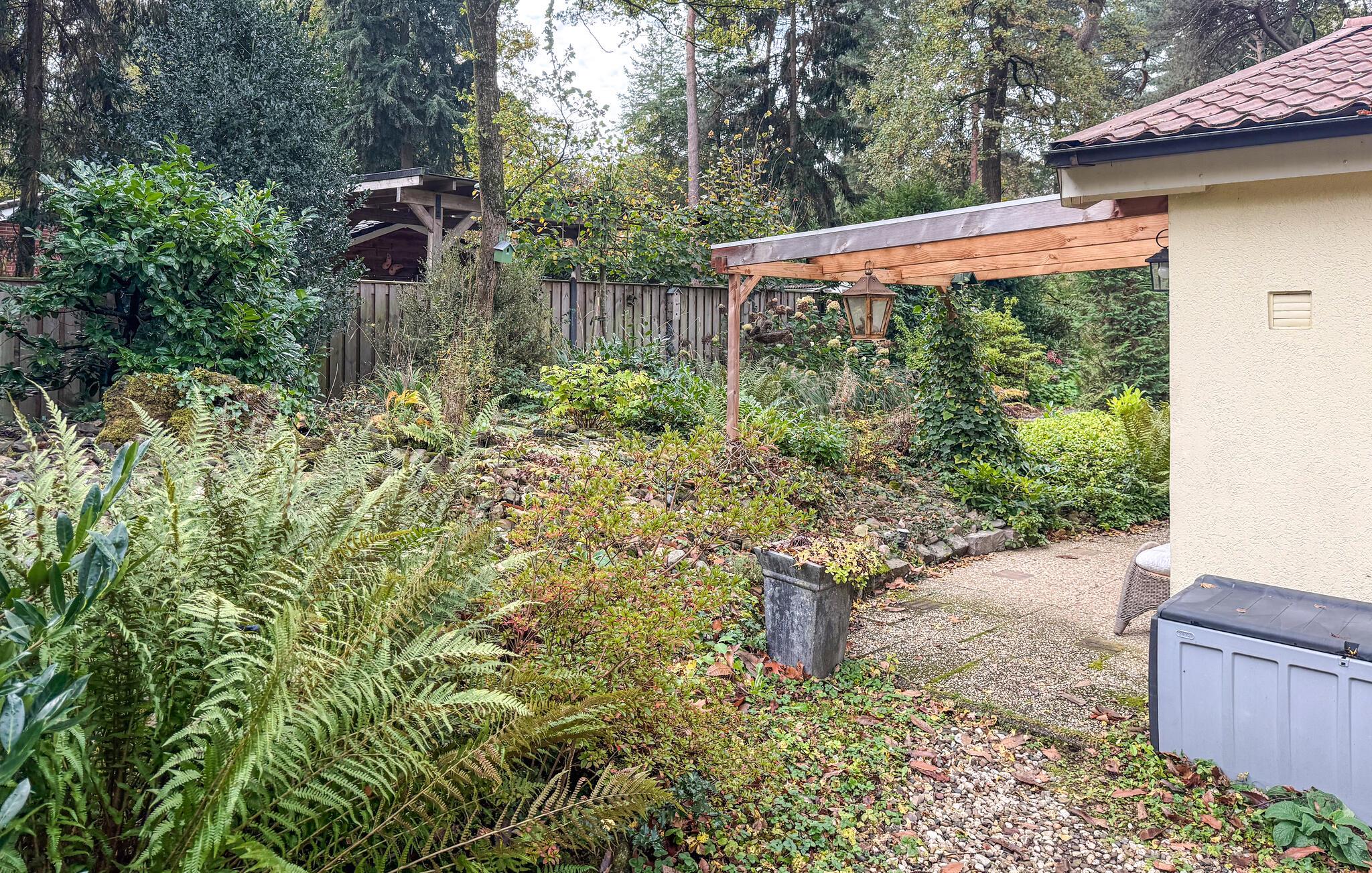 Tilbring avslappende dager i dette kjærlig innredede feriehuset. Det ligger i en grønn hage omgitt av trær, og er det ideelle tilfluktsstedet for par eller små vennegjenger som setter pris på fred og natur. Innvendig skaper dempede farger, naturlige materialer og vakre detaljer en harmonisk og innbydende atmosfære. Den lyse stuen med store vinduer gir en vakker utsikt over de grønne omgivelsene. Slapp av i den komfortable sofaen, les en bok eller bare nyt freden og roen. Det moderne, åpne kjøkkenet innbyr til å lage mat sammen og runde av dagen med et godt måltid.